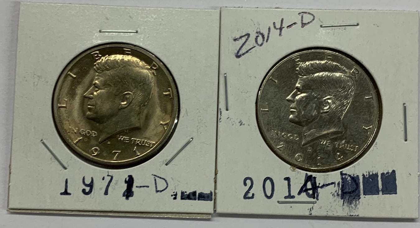 59 2 Kennedy Half Dollars, 1971-D, 2014-D