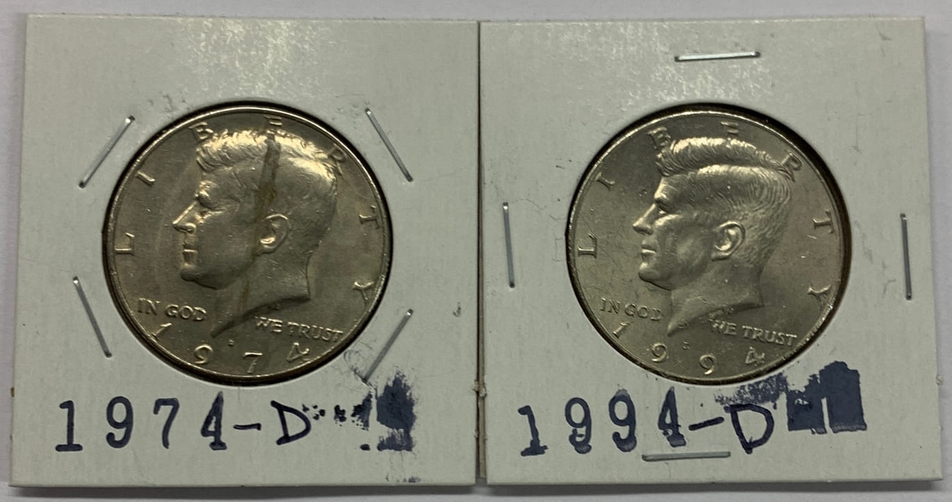 67 2 Kennedy Half Dollars, 1974-D, 1994-D