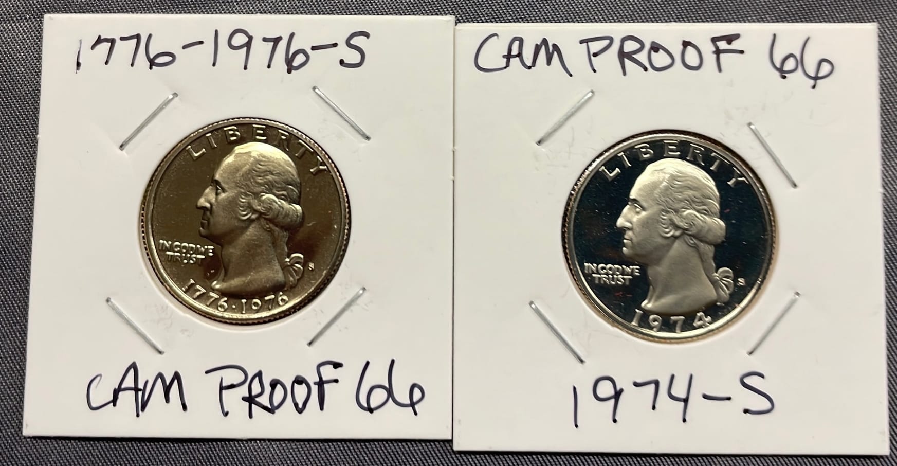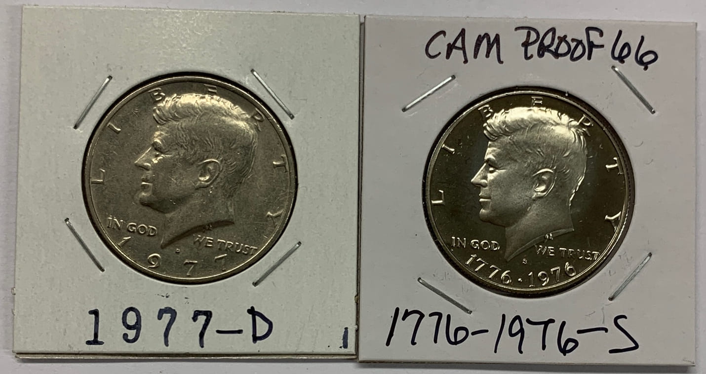 69 2 Kennedy Half Dollars, 1977-D, 1976-S CAM 66