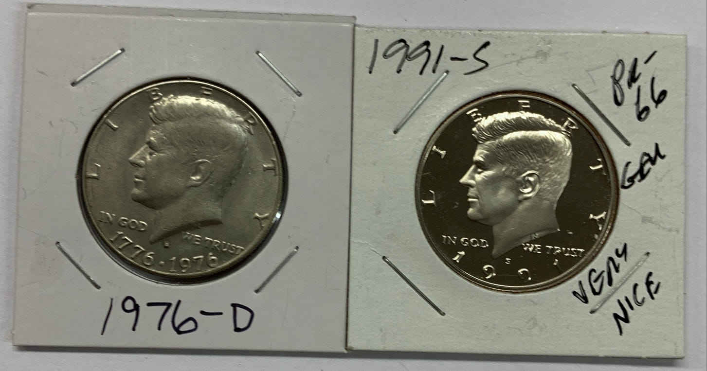 66 2 Kennedy Half Dollars, 1976-D, 1993-P