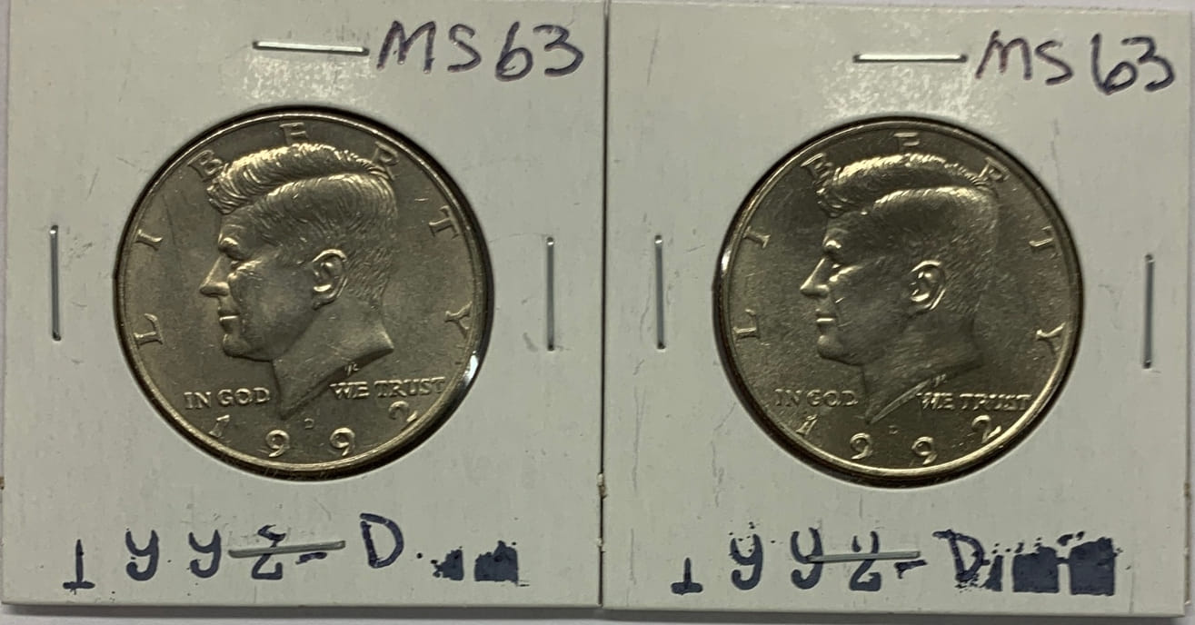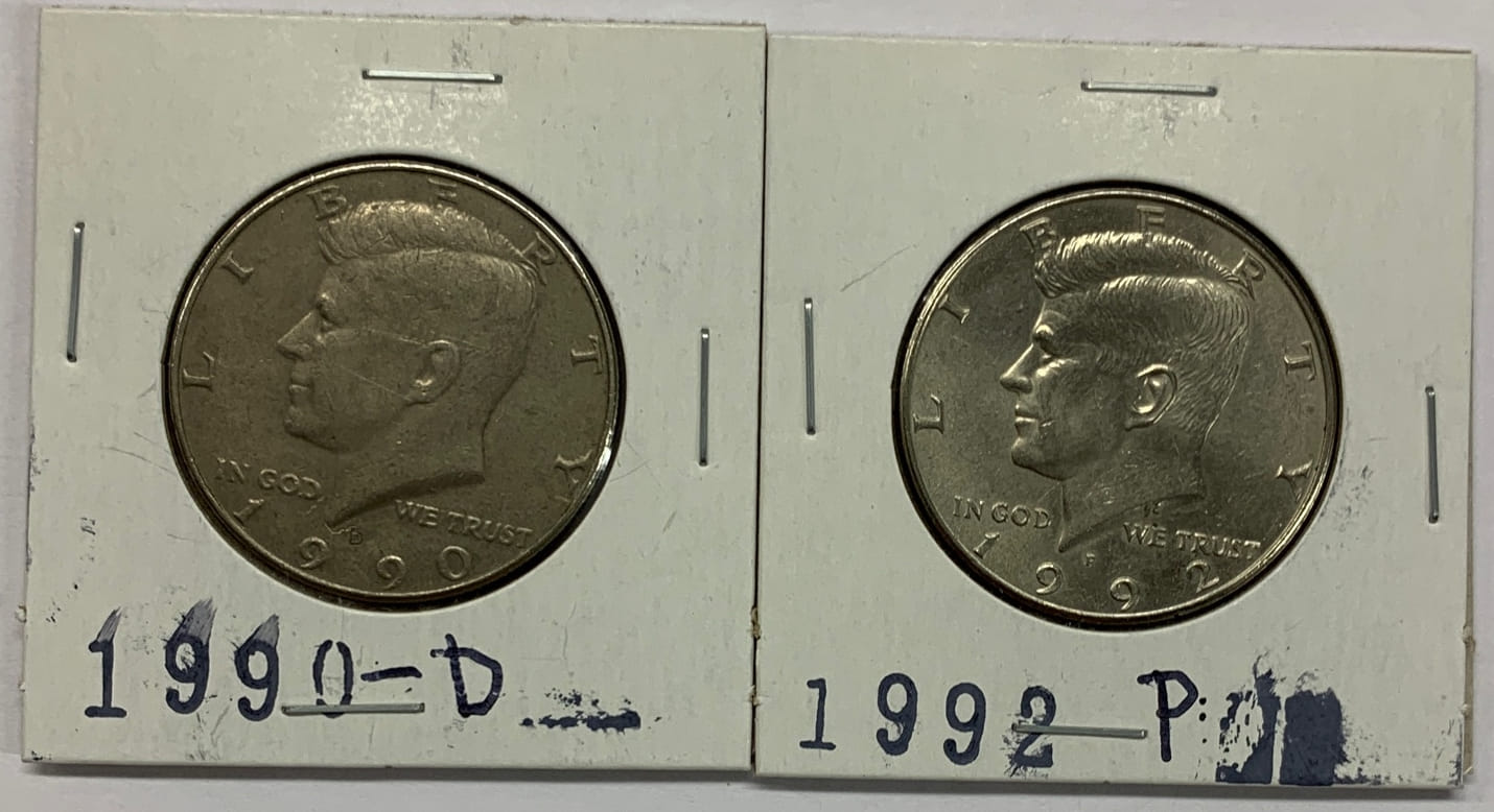 86 2 Kennedy Half Dollars, 1992-P, 1990-D