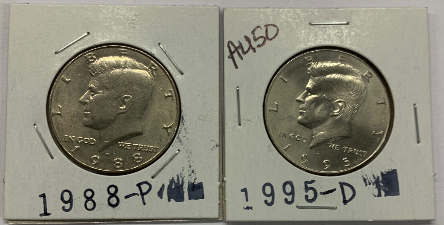 98 2 Kennedy Half Dollars, 1988-P, 1995-D AU-50