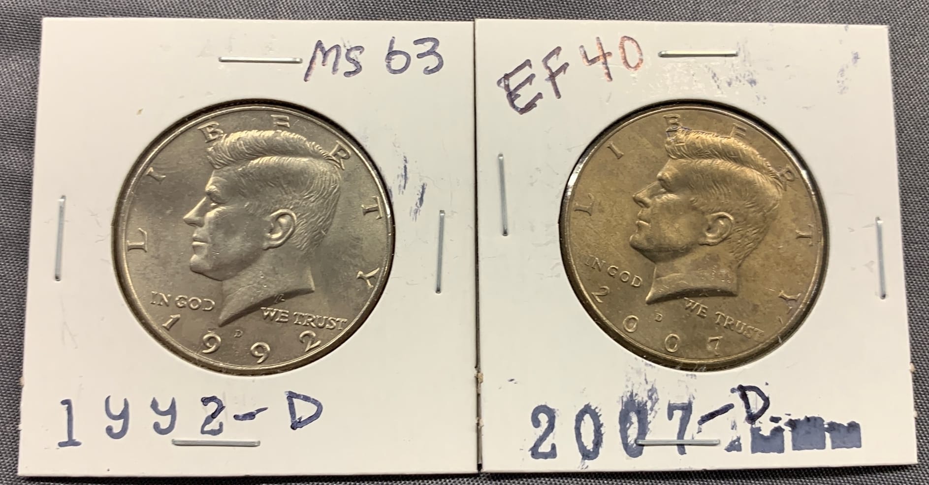 113 2 Kennedy Half Dollars (1992-D MS63, 2007-D EF40)