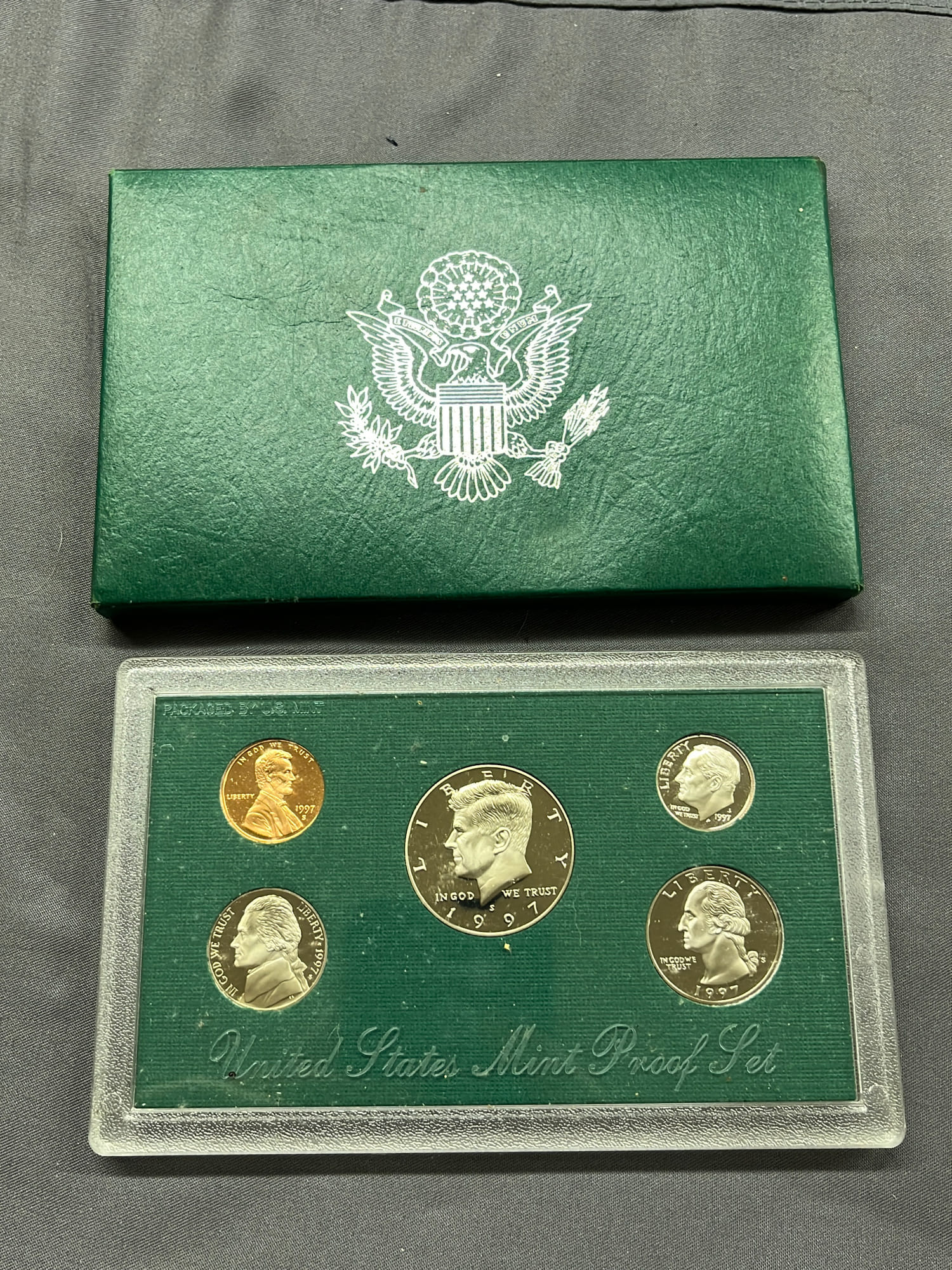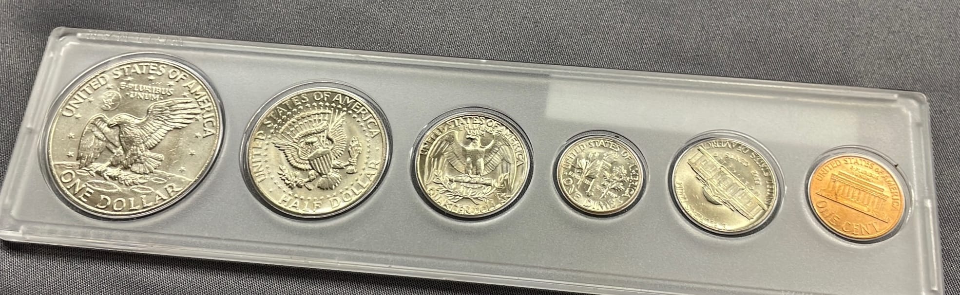 PROOF SETS - EISENHOWER DOLLARS - KENNEDY HALF DOLLARS - "V" NICKELS - INDIAN, WHEAT & STEEL CENTS - FOREIGN COINS - LIGHTERS - JEWELRY - BELT BUCKLES - MARBLES - FISHING LURES & MORE!