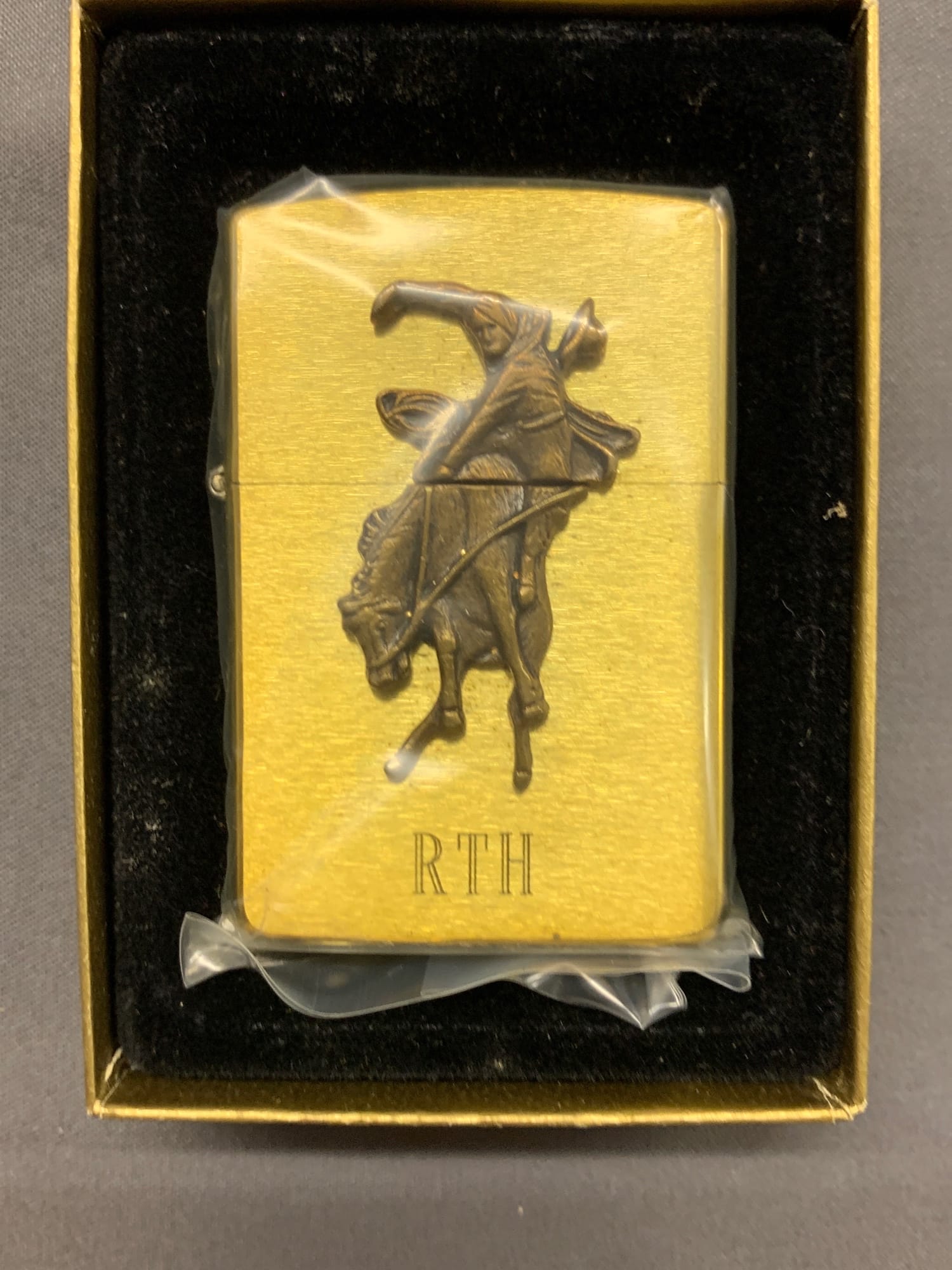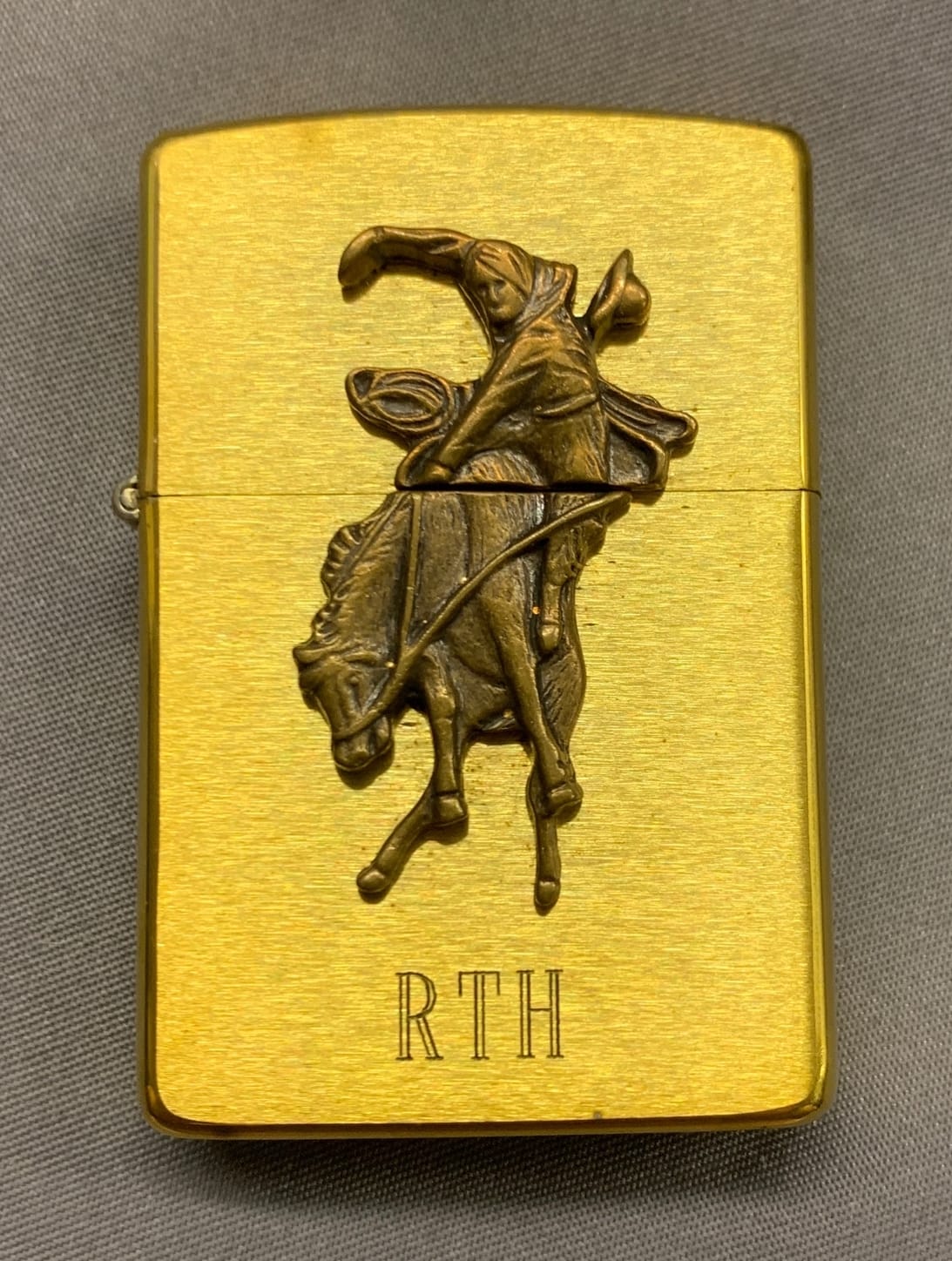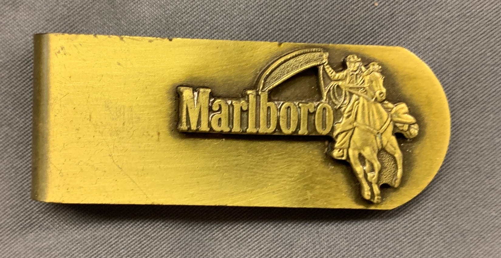 406 Marlboro Wild West Windproof Lighter soild brass, Marlboro clip
