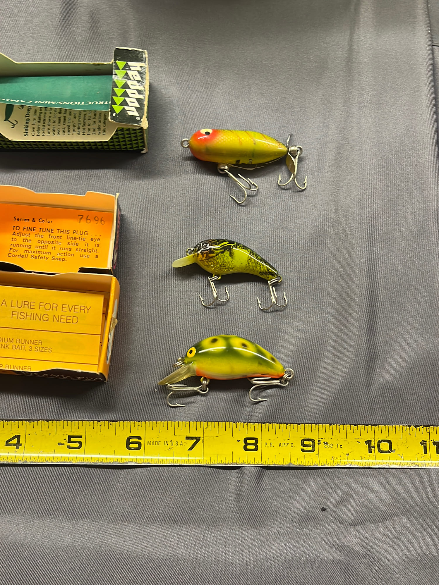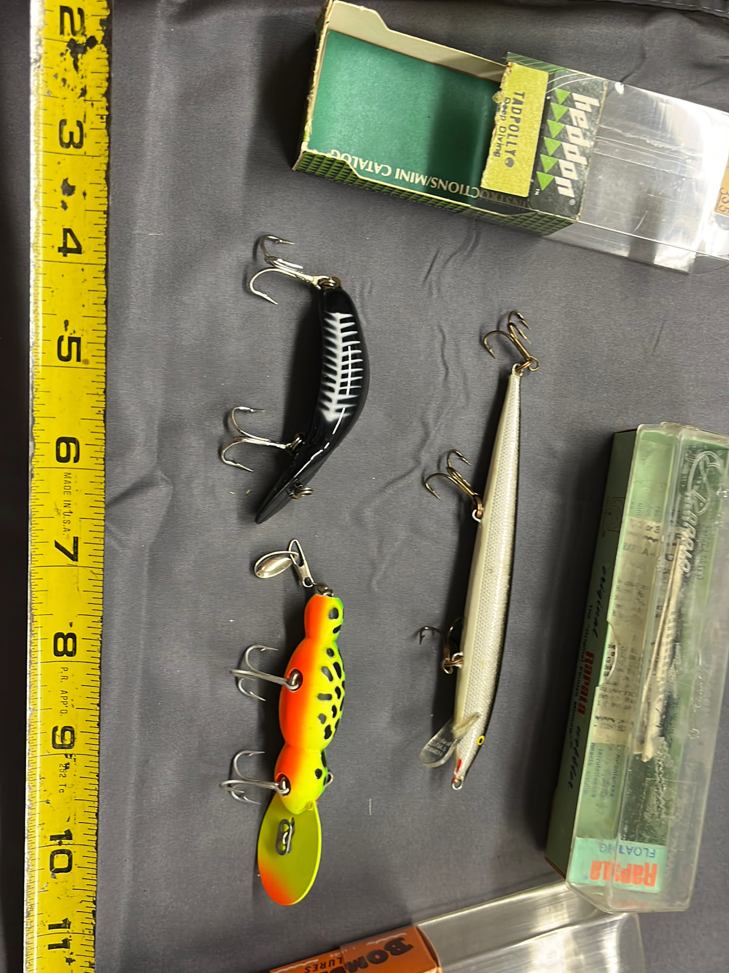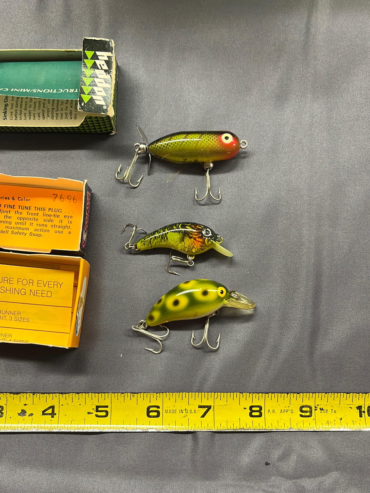 446 3 Fishing Lures - Bomber Lure, Rapala Floating, Heddon Tadpolly