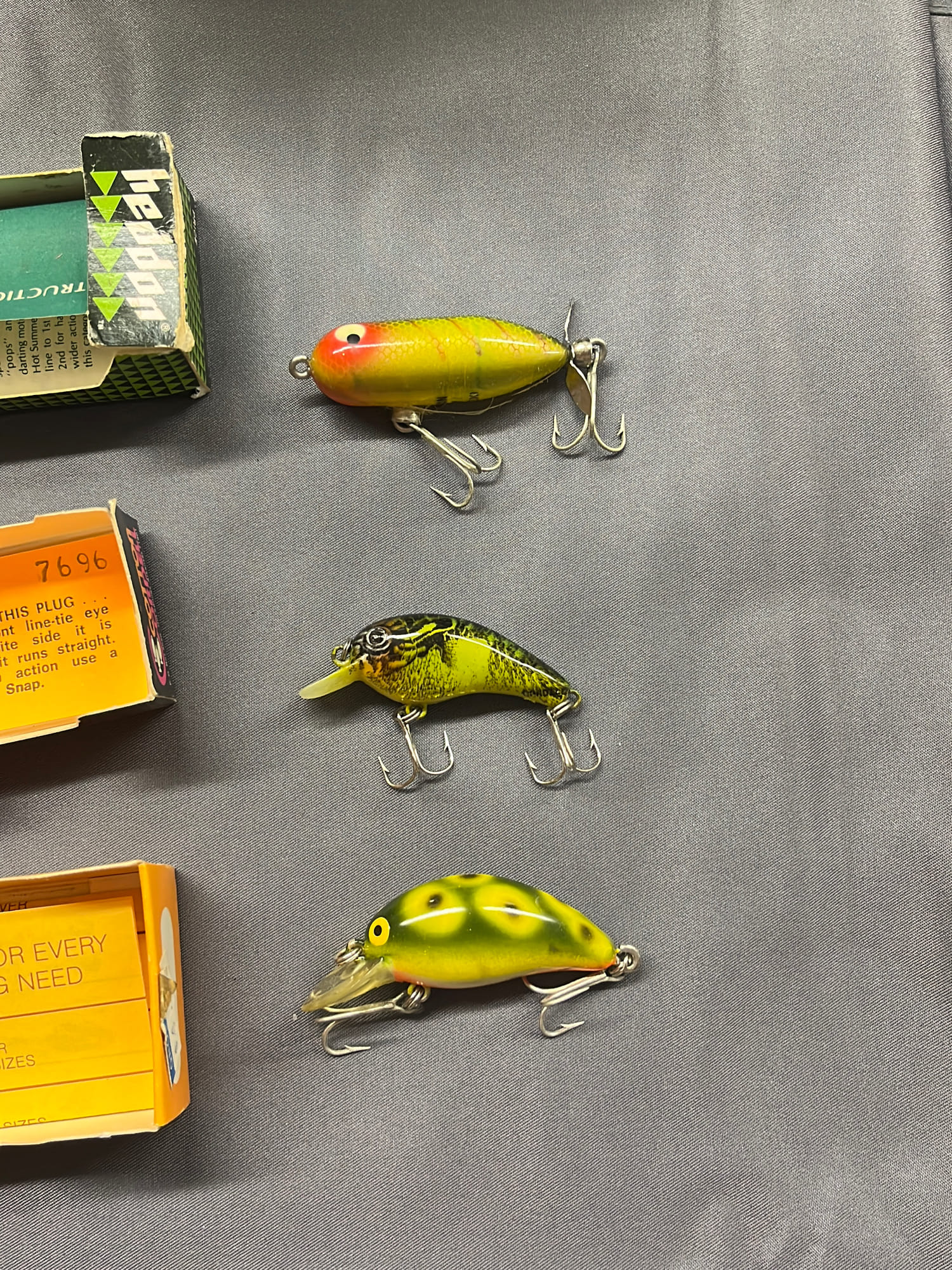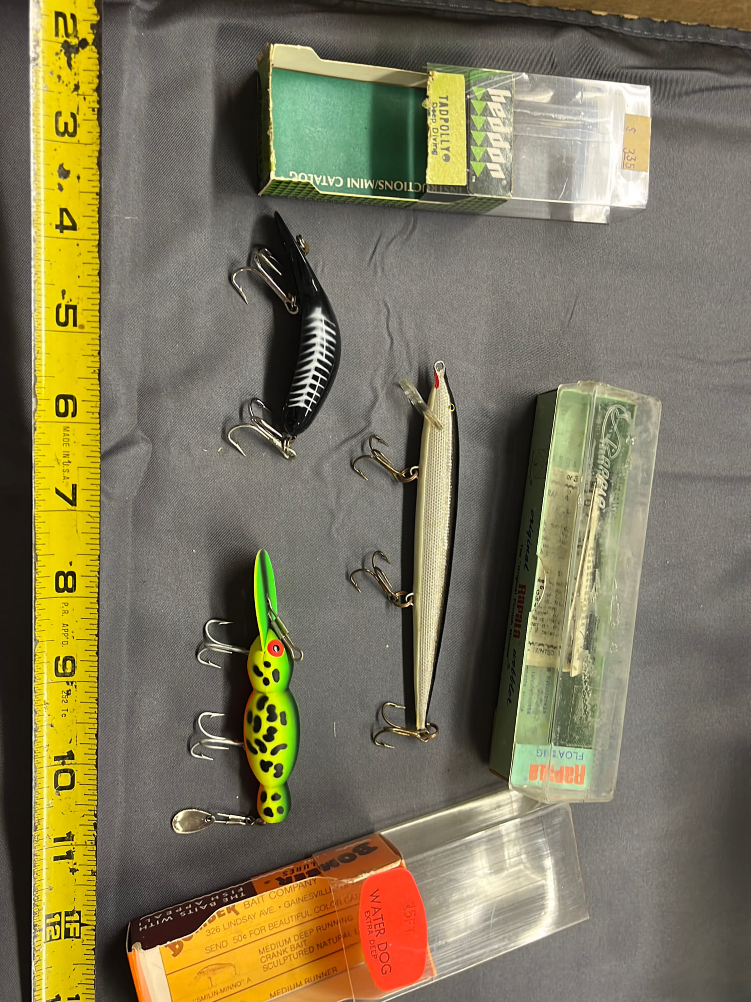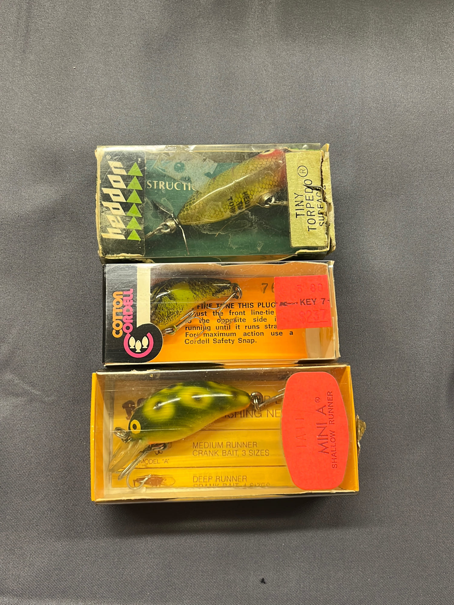 446 3 Fishing Lures - Bomber Lure, Rapala Floating, Heddon Tadpolly