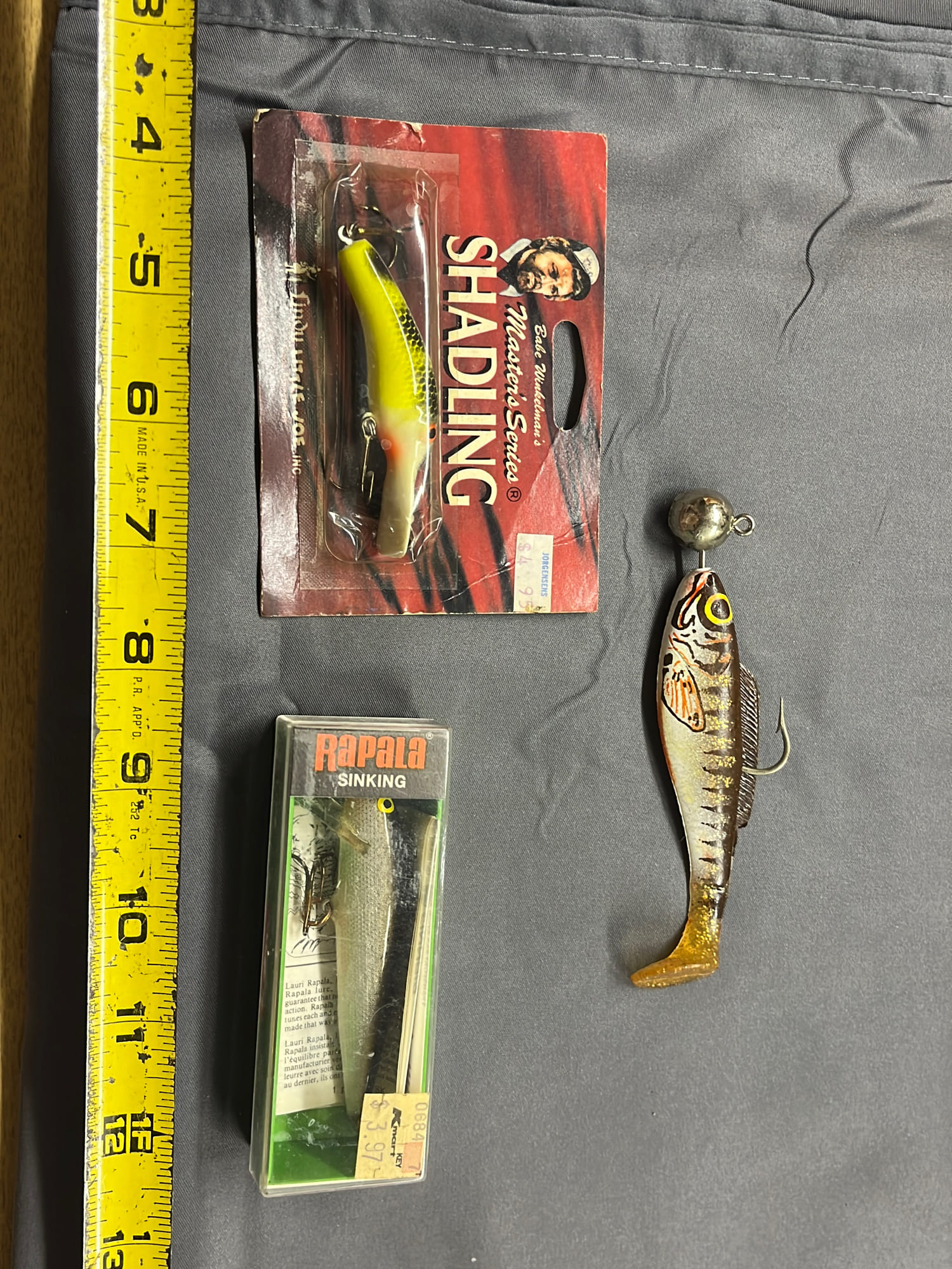443 3 Fishing Lures - Master's Series Shadling, Rapala Sinking, Unknown