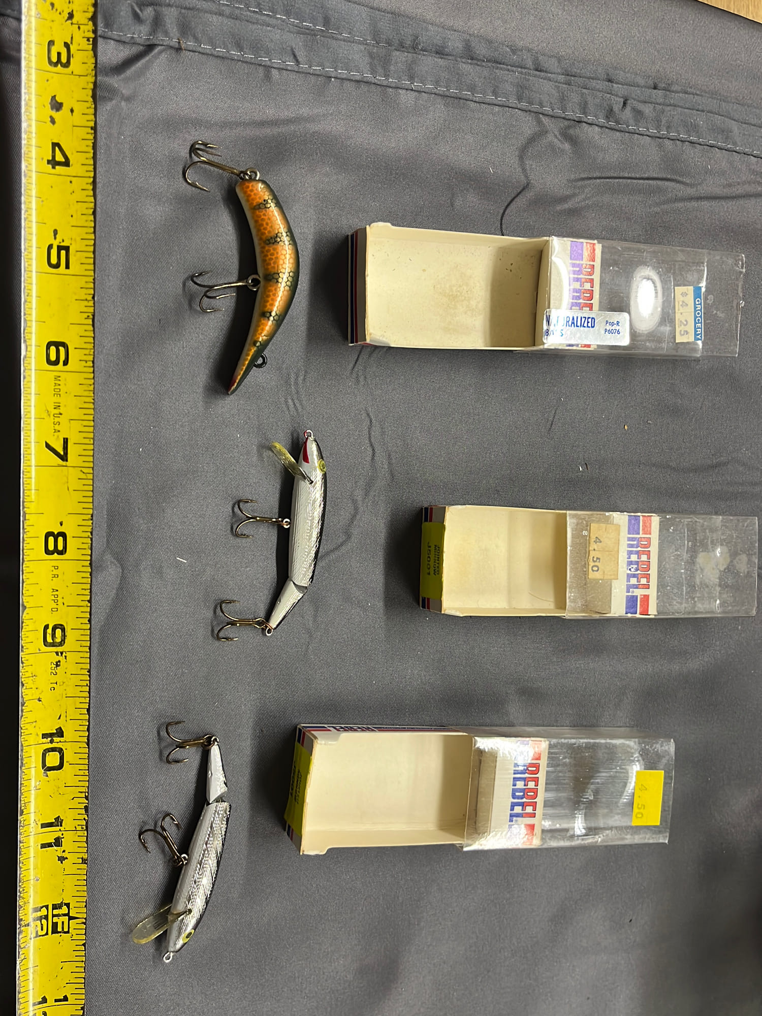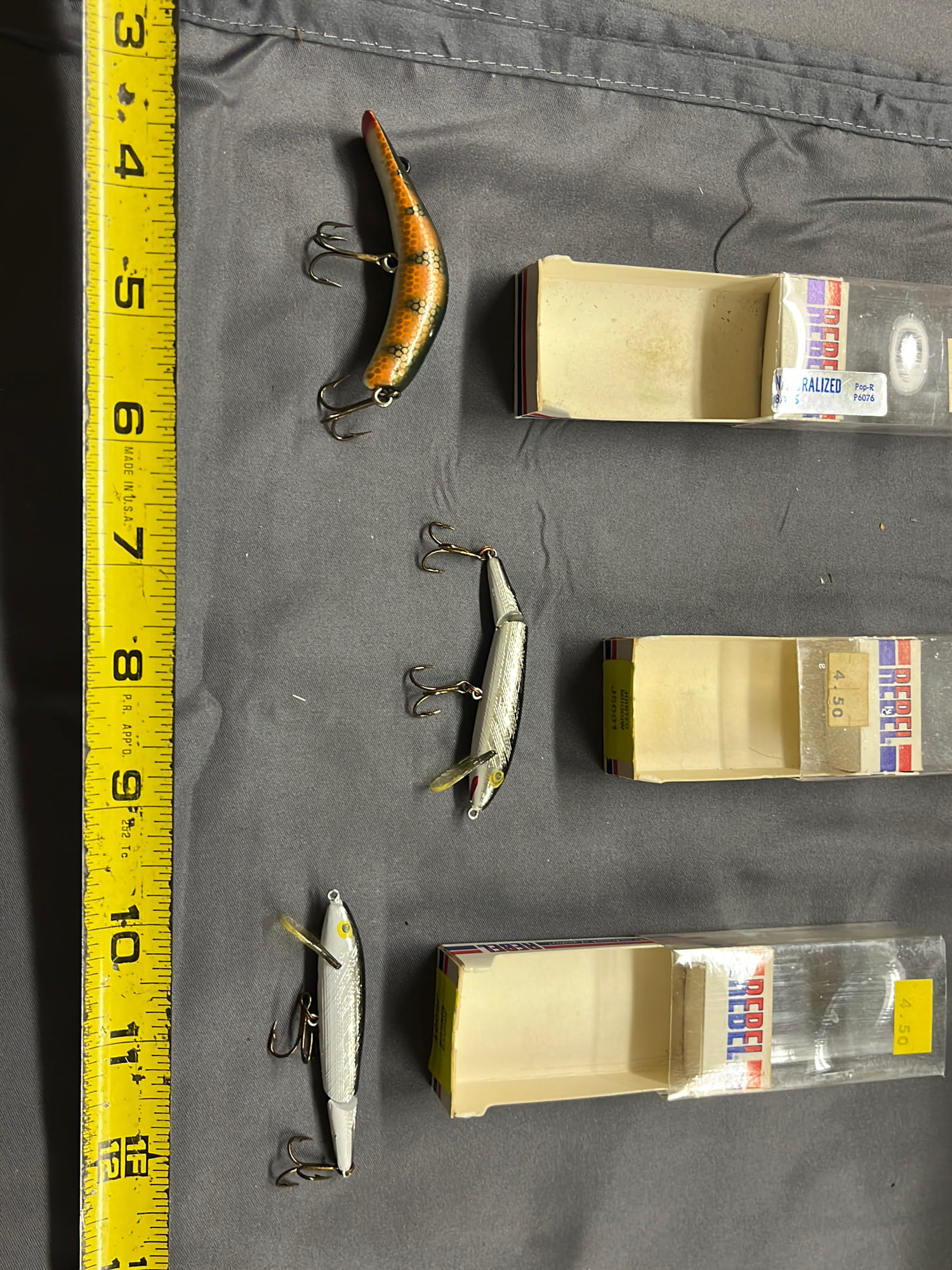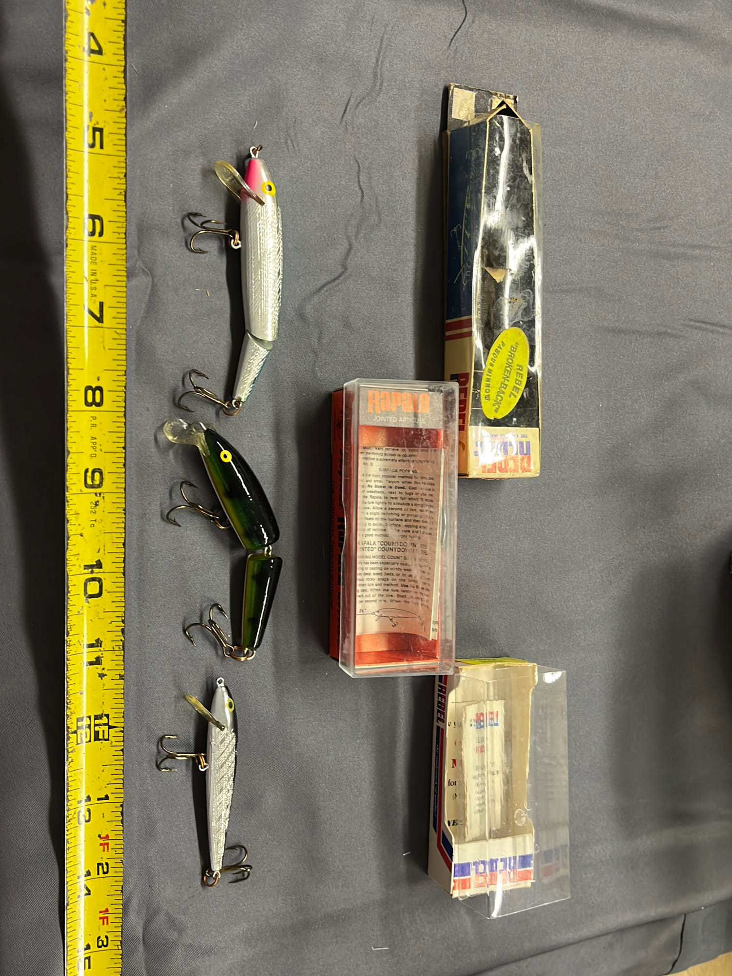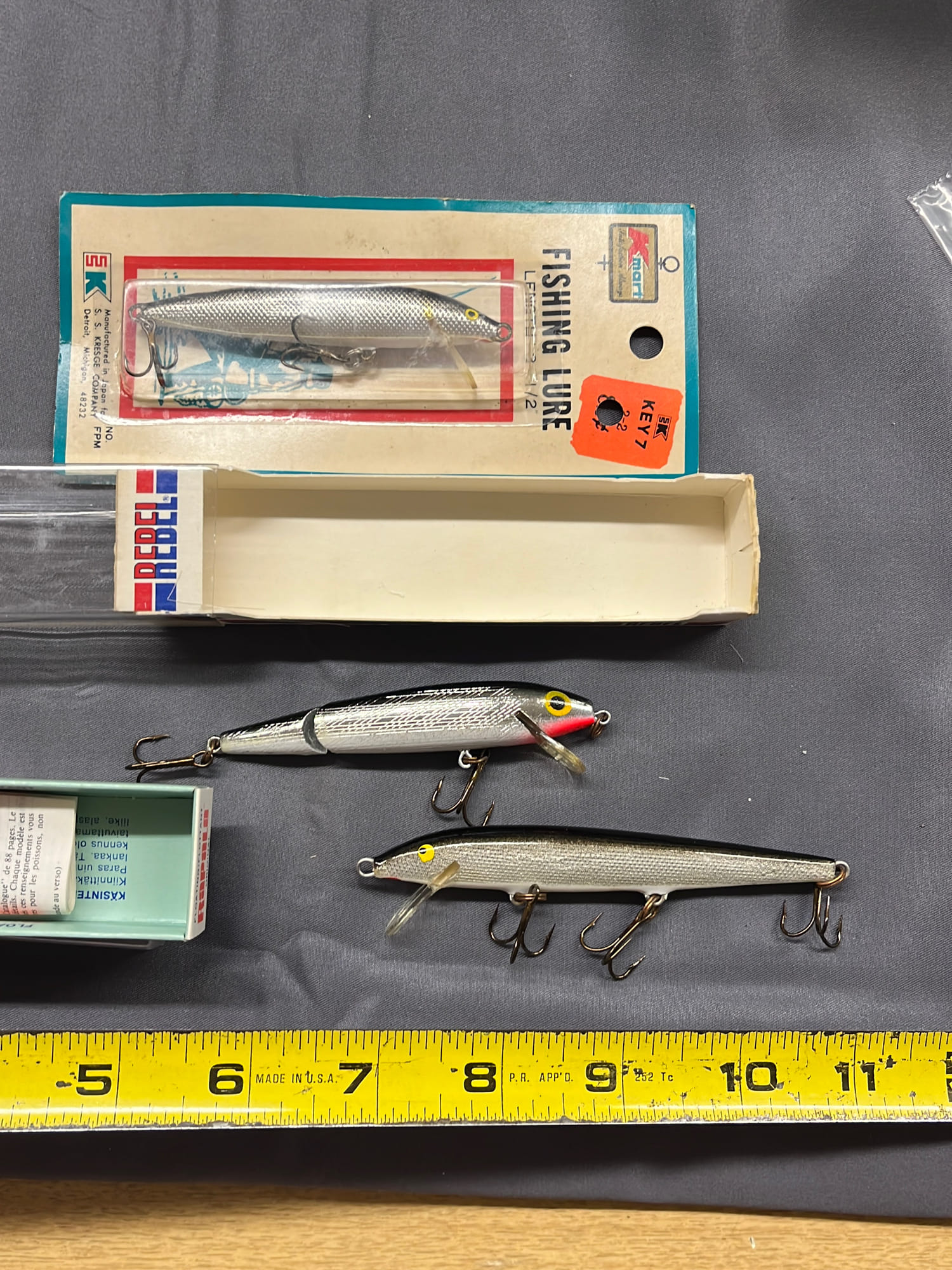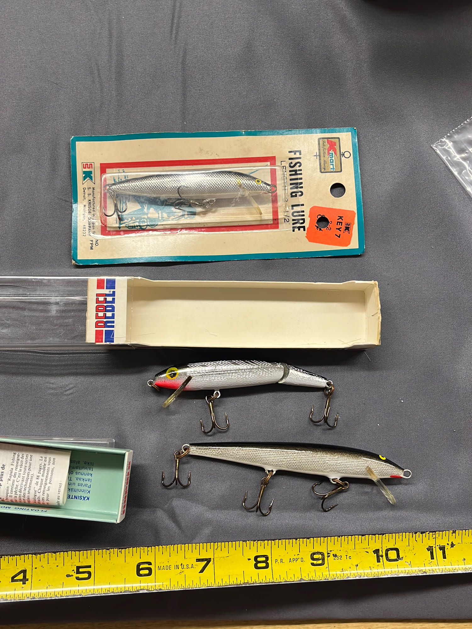 445 3 Fishing Lures - Rapala Floating, Rebel Joknted Minnow, Kmart