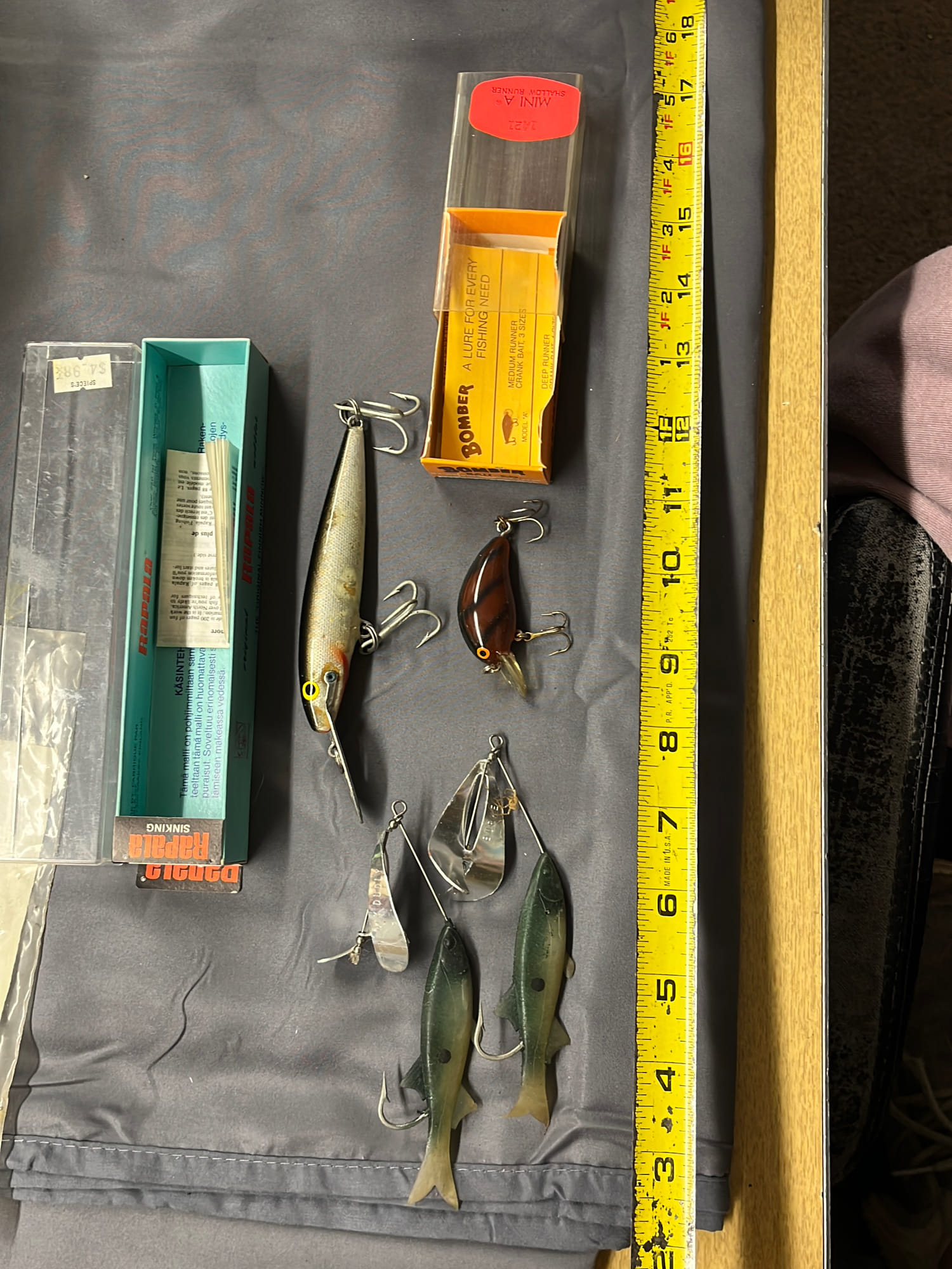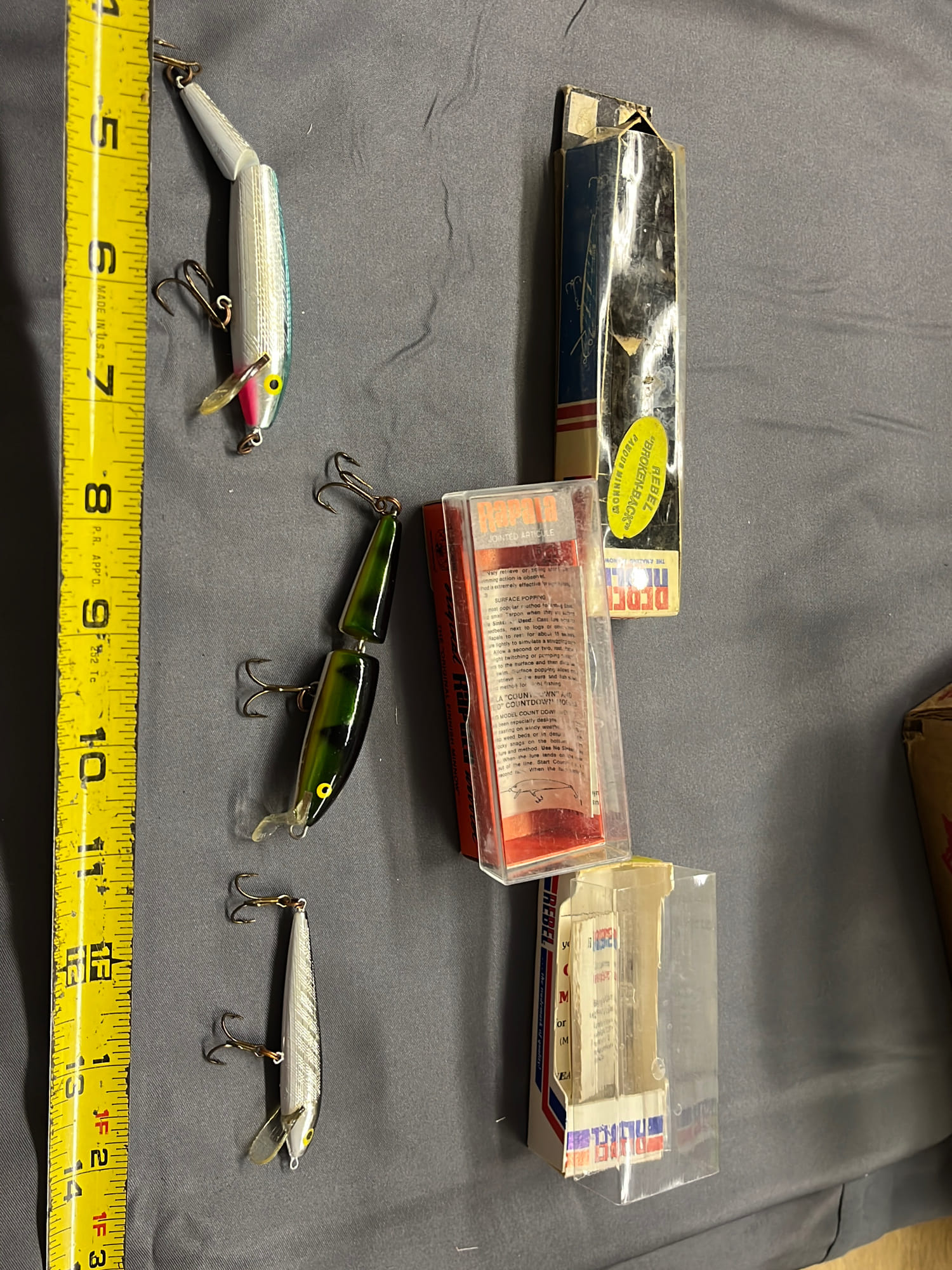 448 3 Fishing Lures - Bomber Lure, Rapala Sinking, Dedly Dudly