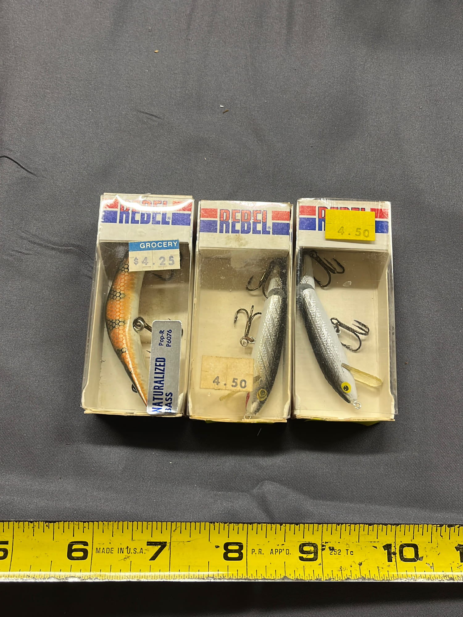 450 3 Fishing Lures - Rebel Jointed Minnow, Rebel Naturalized Bass