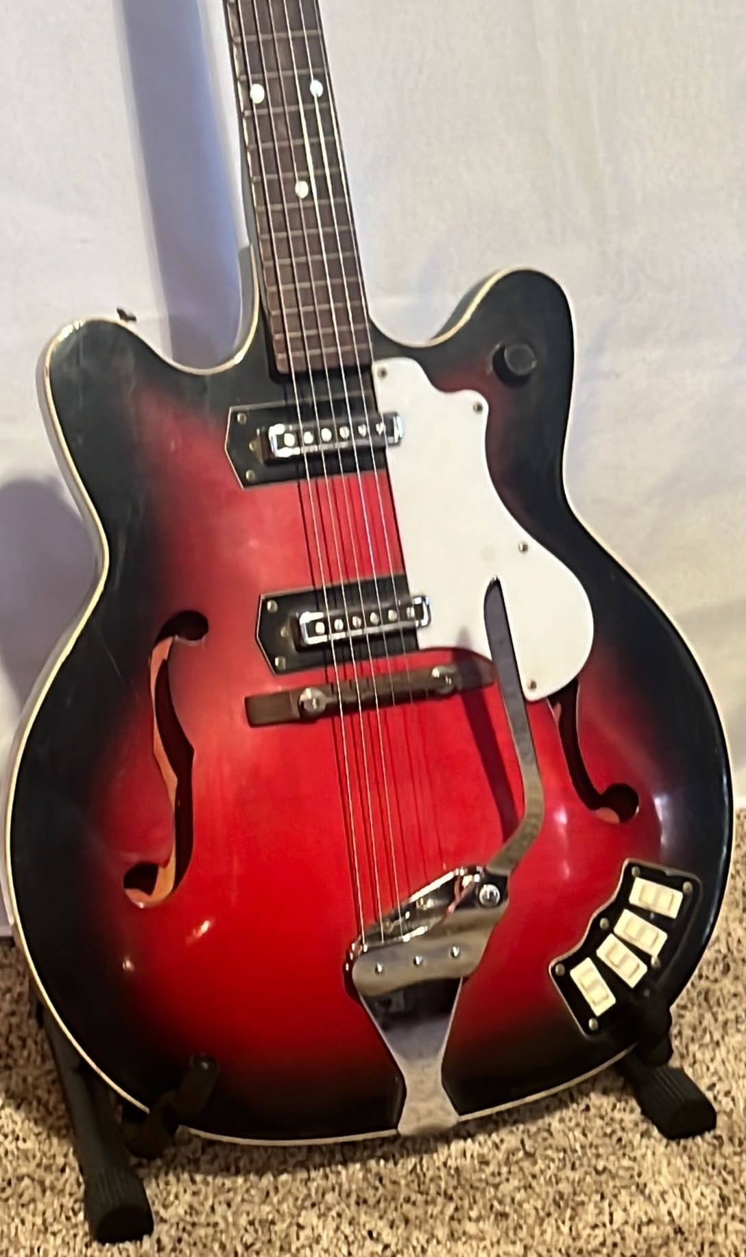 2 Rare 1966 Teisco Hollowbody Electric ES-335 Copy in Sunburst color