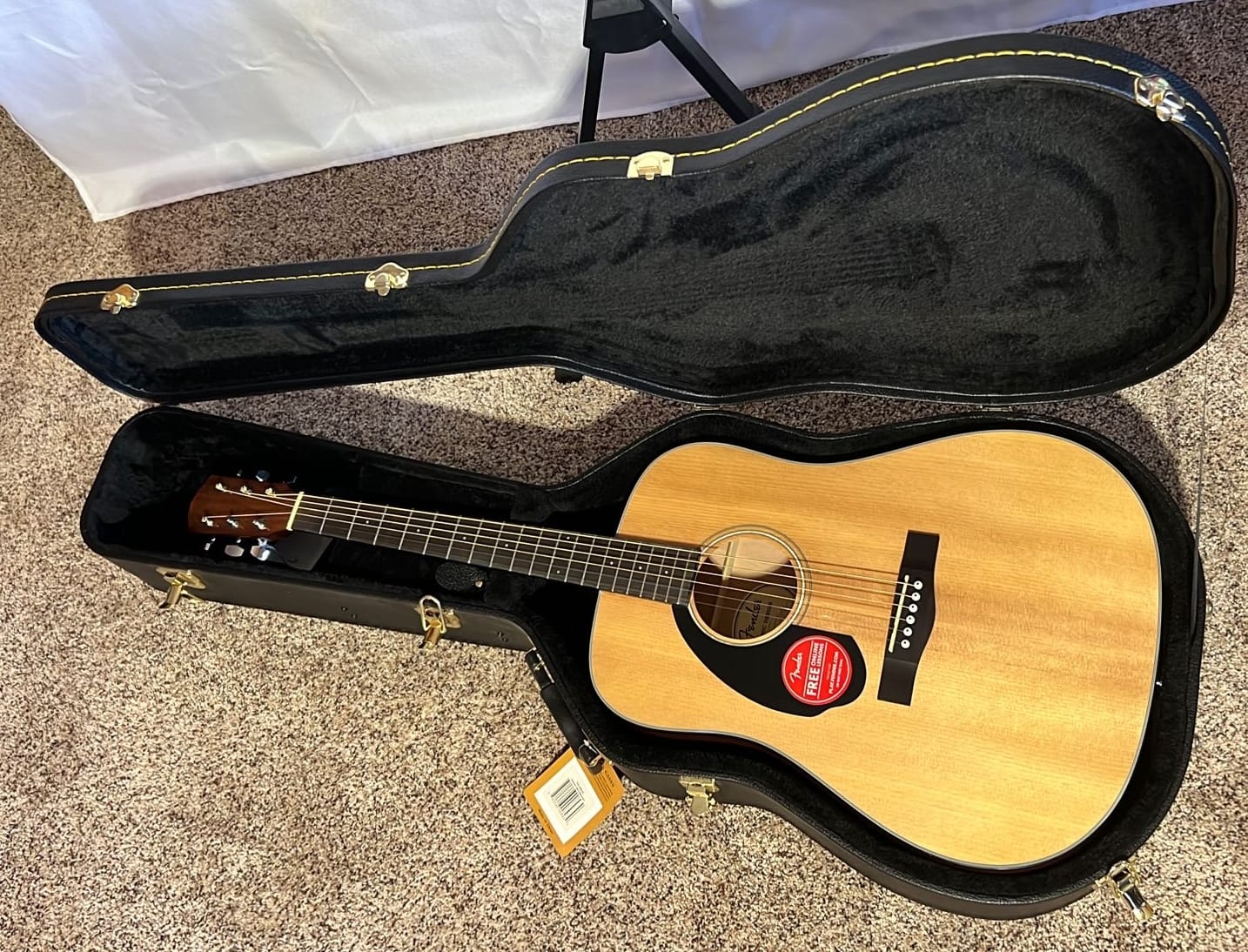 10 New Fender Acoustic Guitar Model CD60S with New Hard Shell Case - currently left handed but easily converted to right handed reversing the bridge and nut.