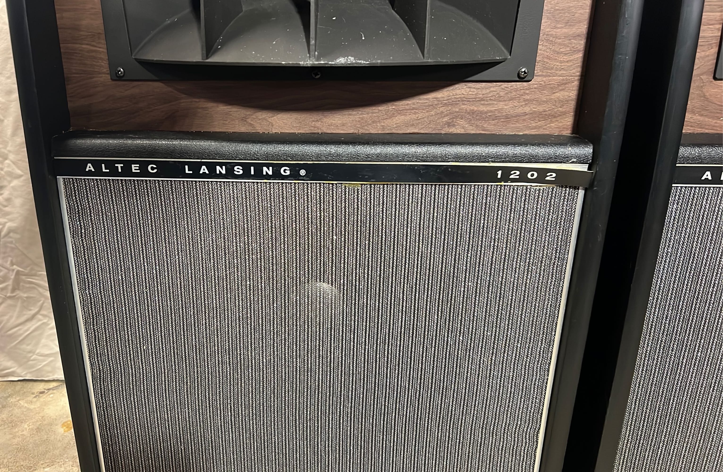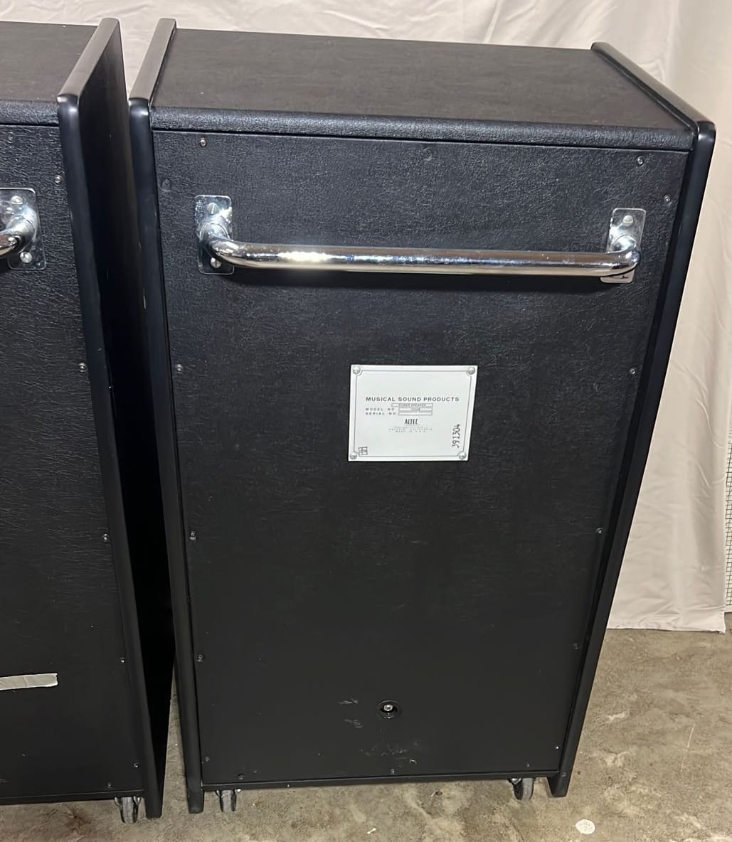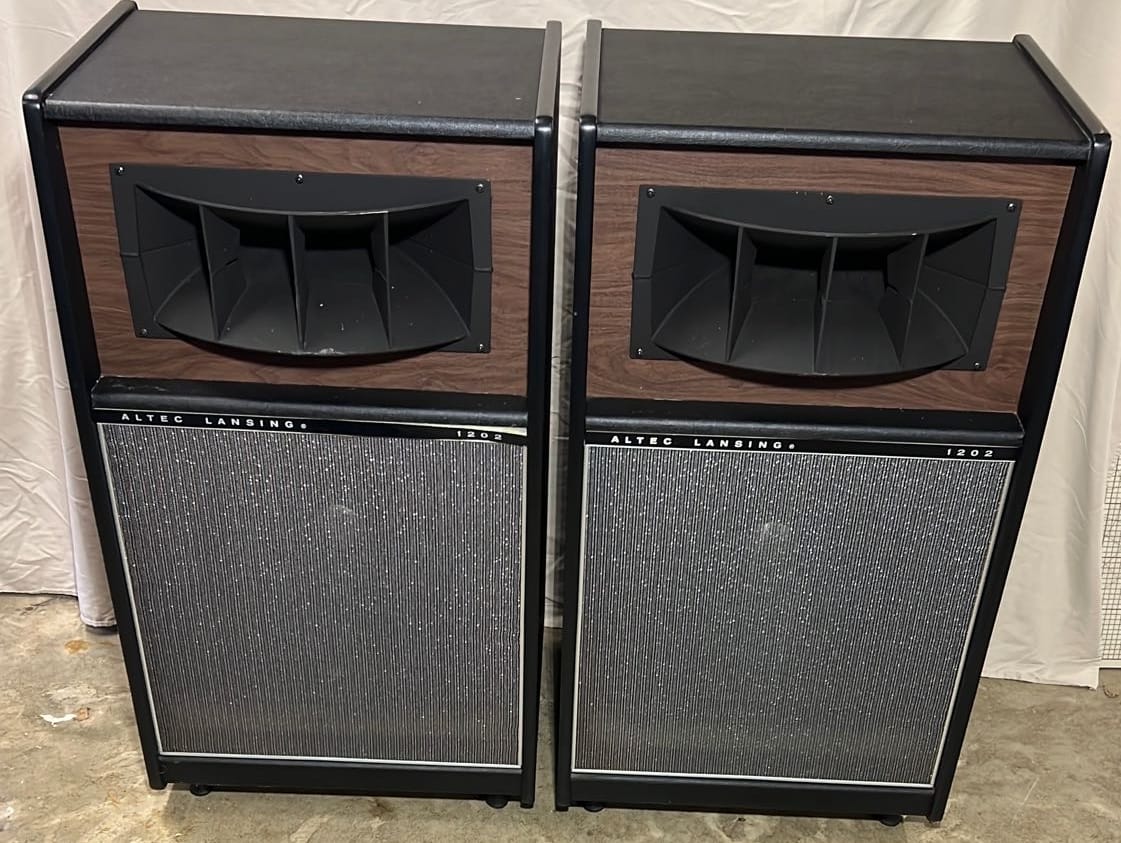27 Very Rare Pair Altec Lansing Floor Speakers Model 1202 with Handles and Rollers 43”h x 24”w x 21”d