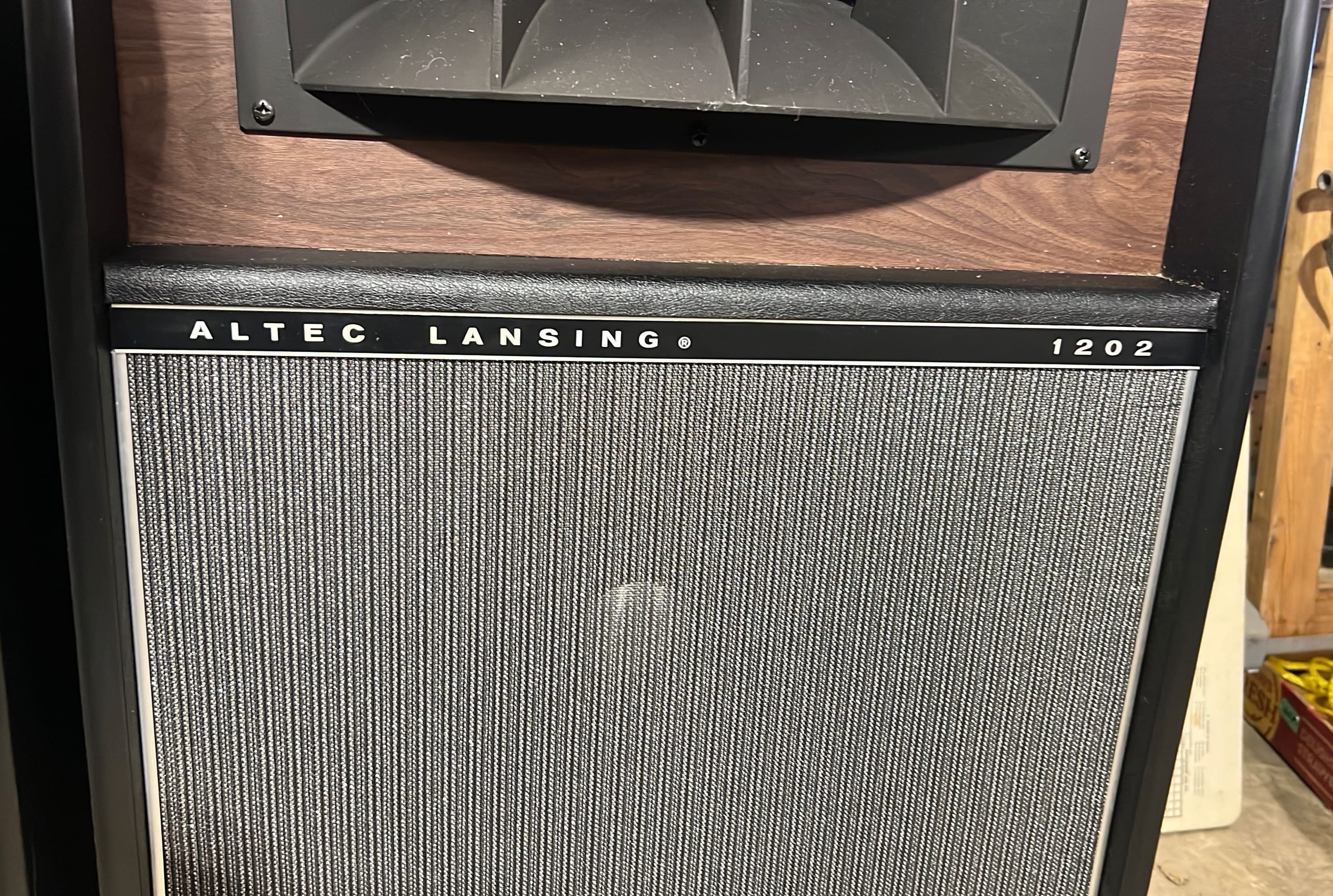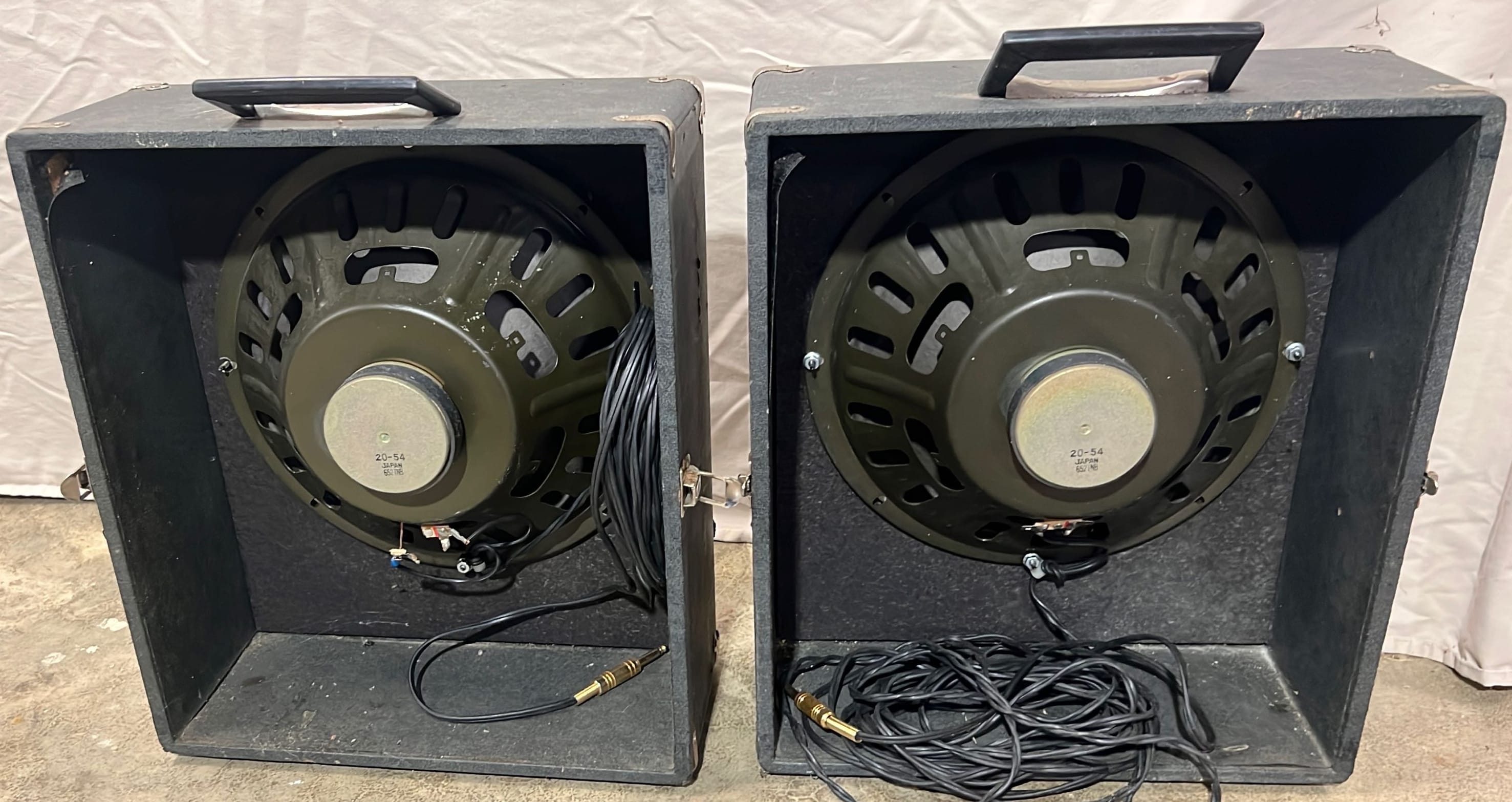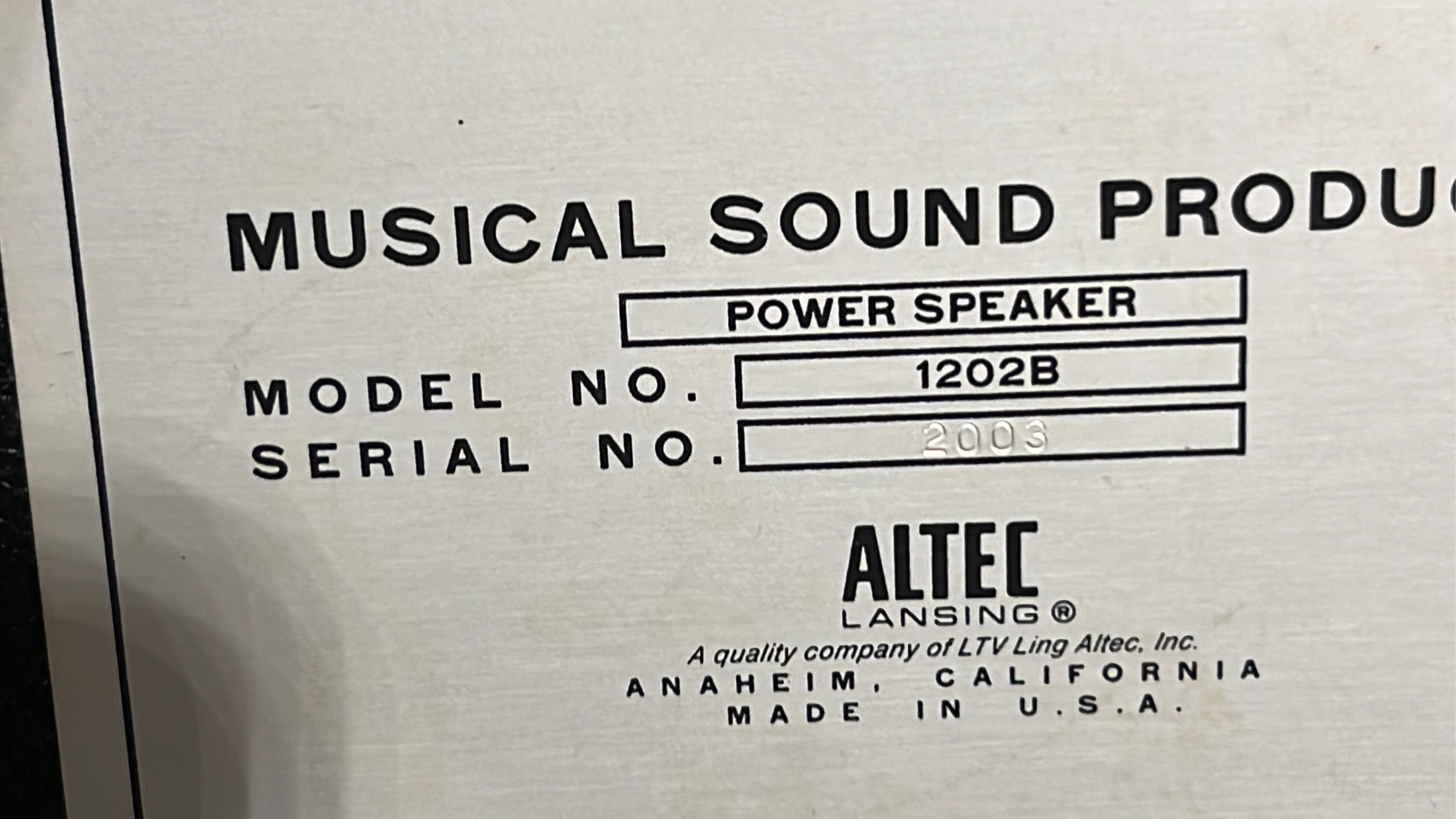 27 Very Rare Pair Altec Lansing Floor Speakers Model 1202 with Handles and Rollers 43”h x 24”w x 21”d