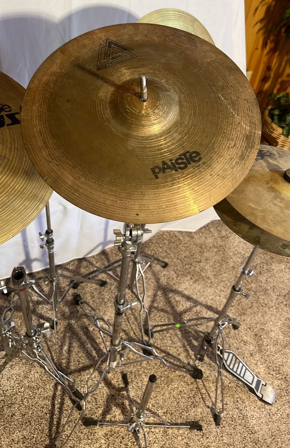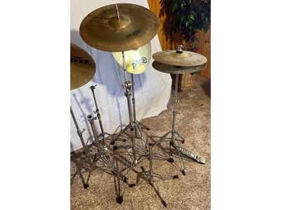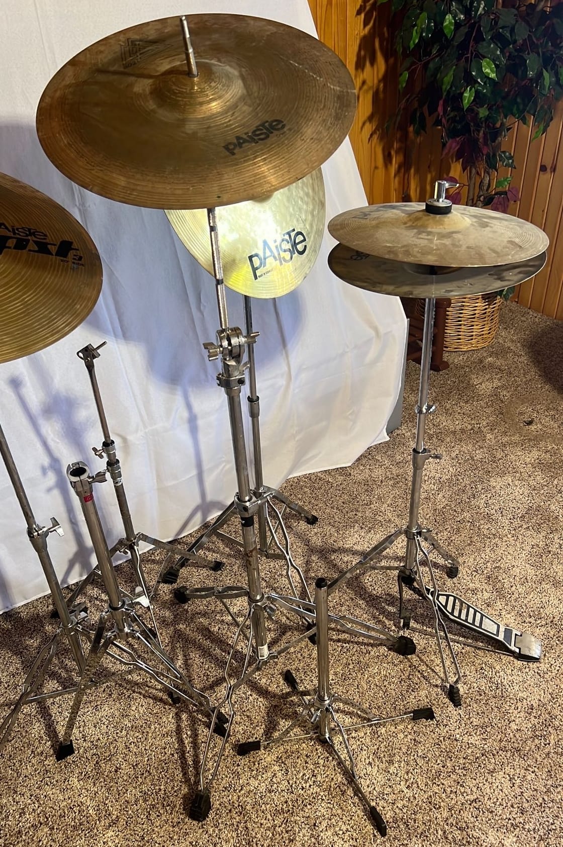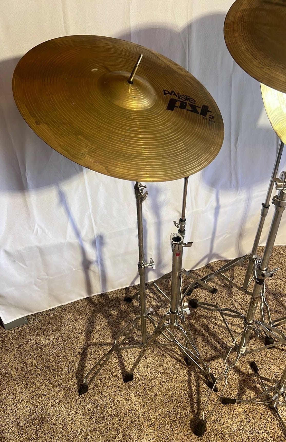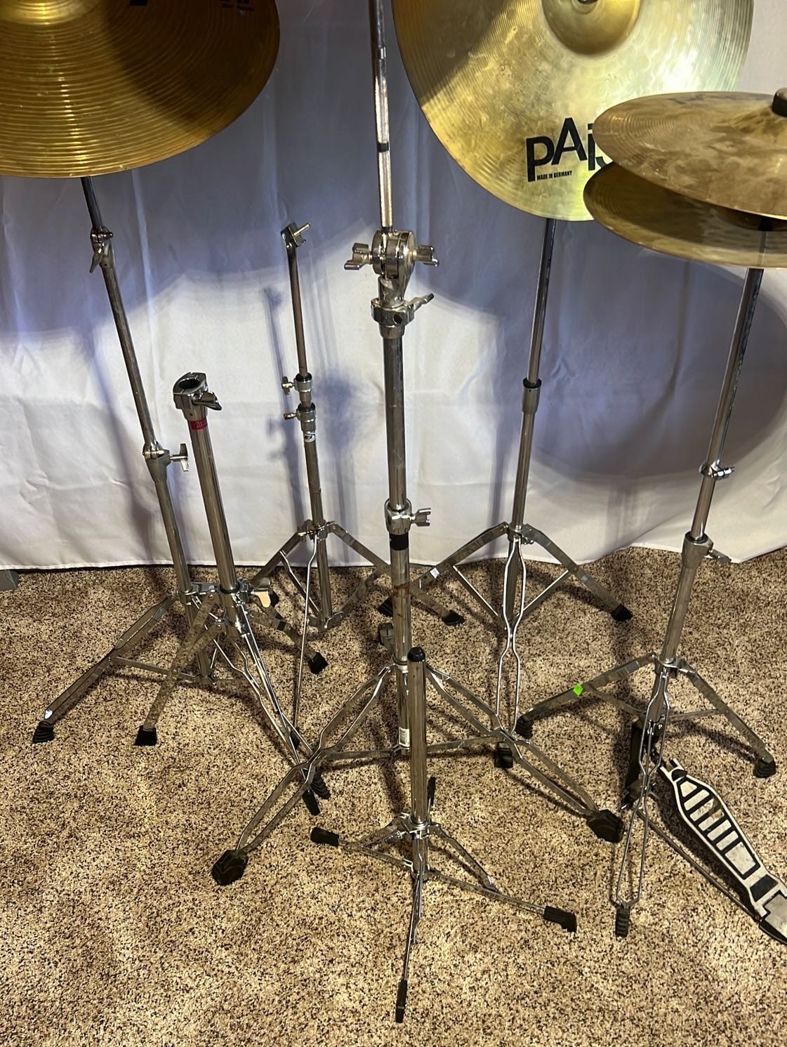 33 Large of assortment of Cymbal Stands and Quality Paiste Cymbals