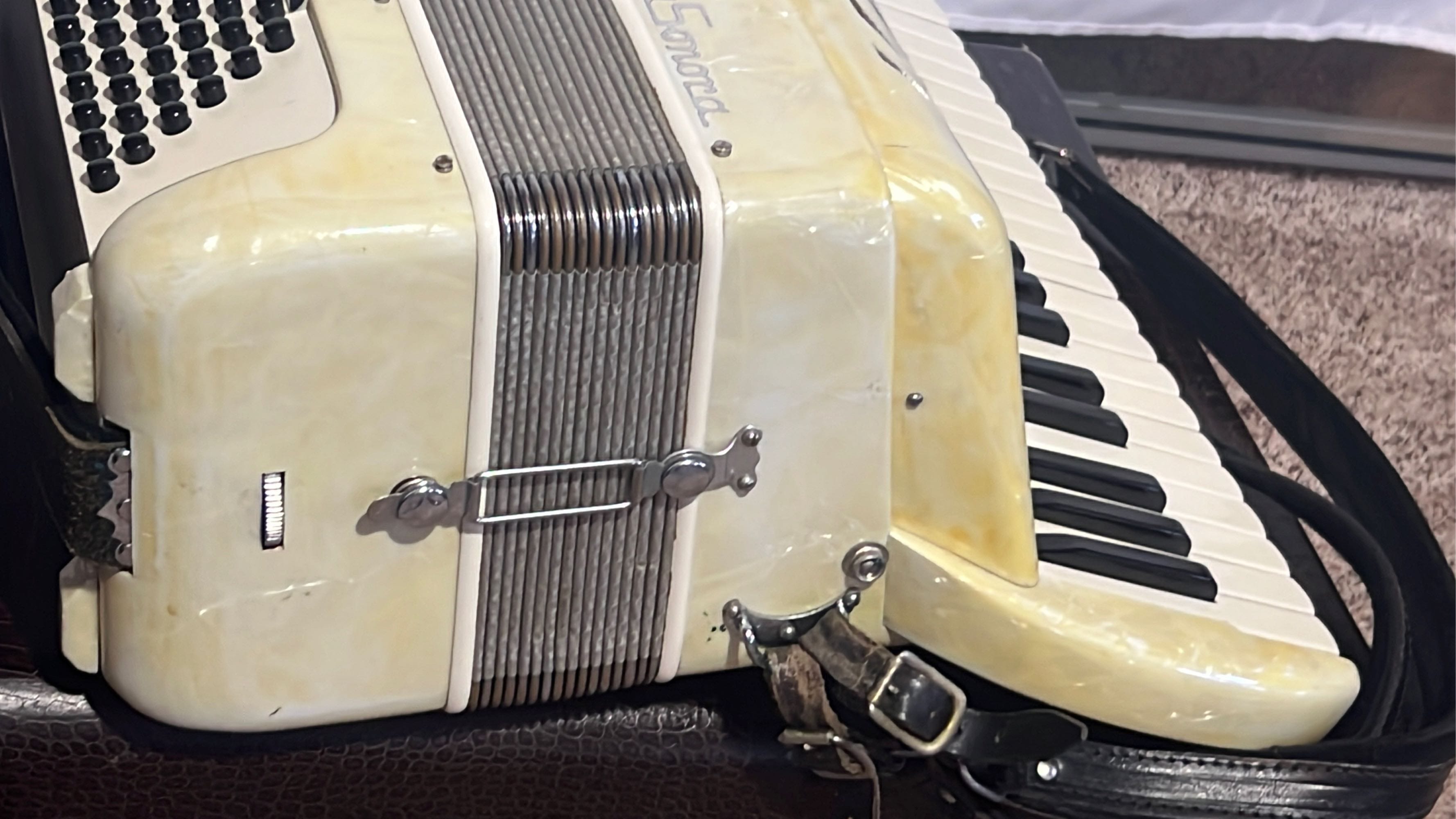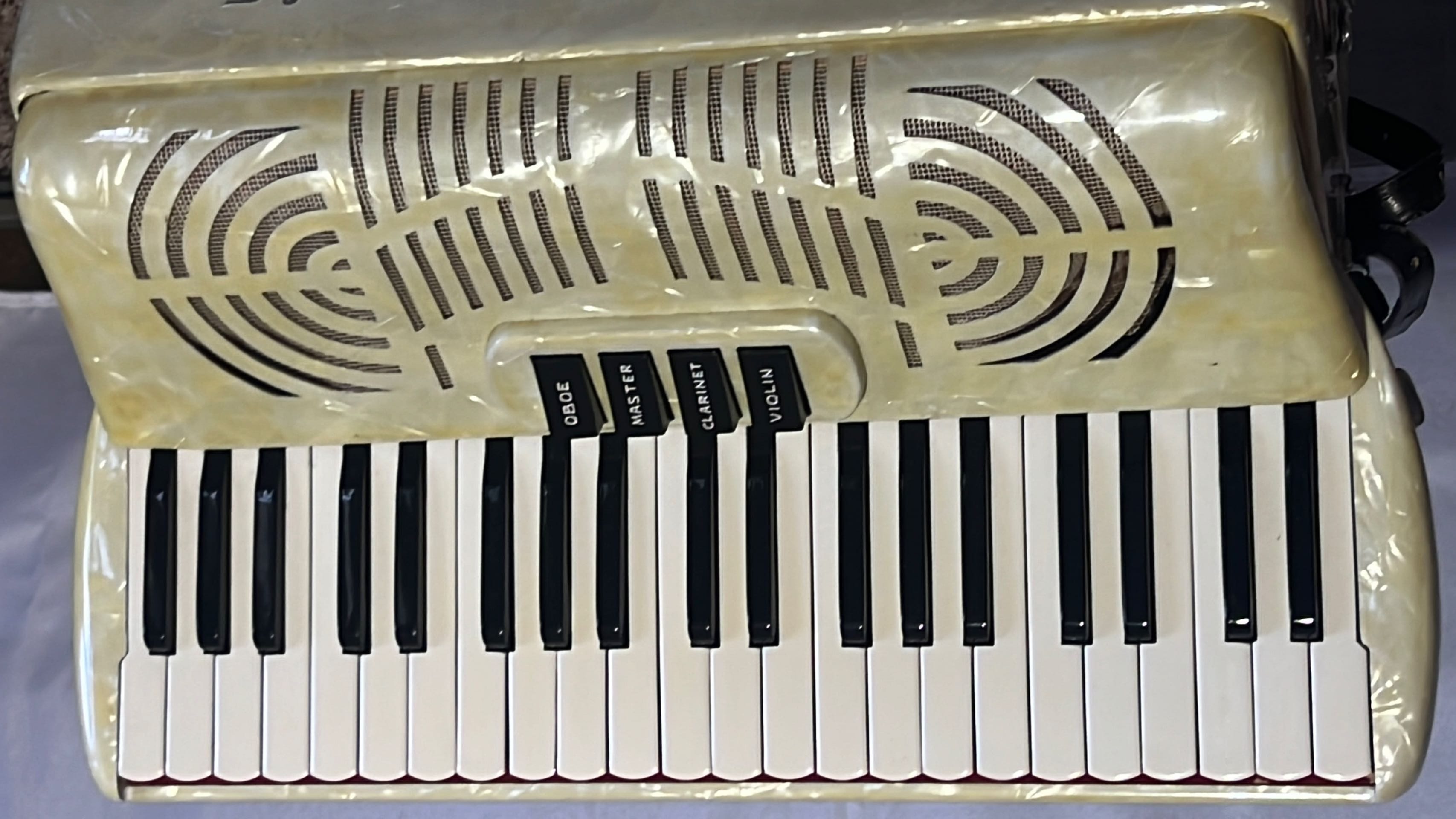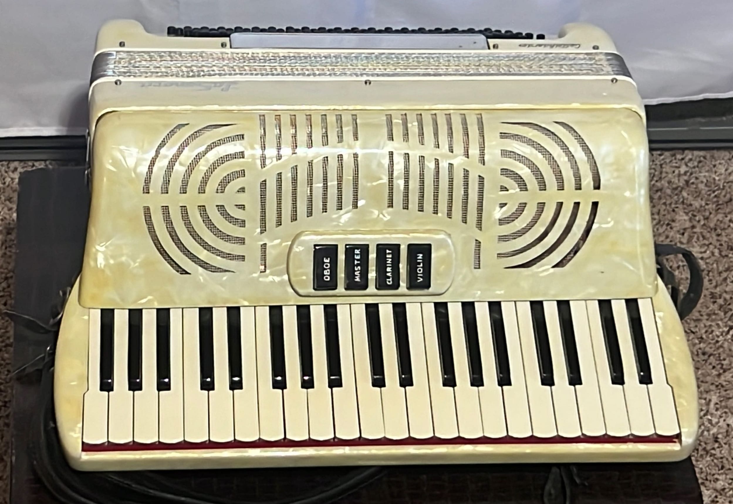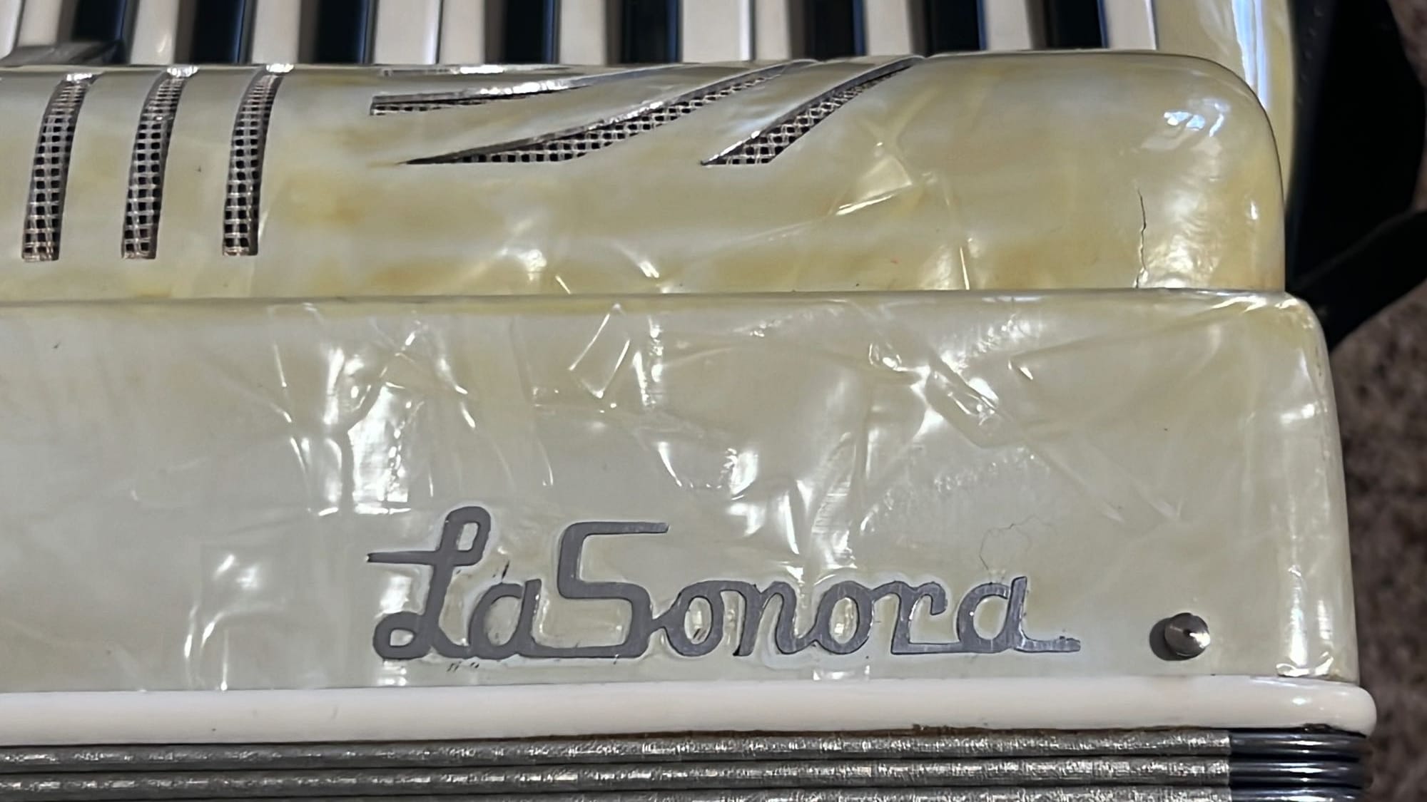 46 Rare & Vintage LaSonara Pearl Accordian in Hard Case