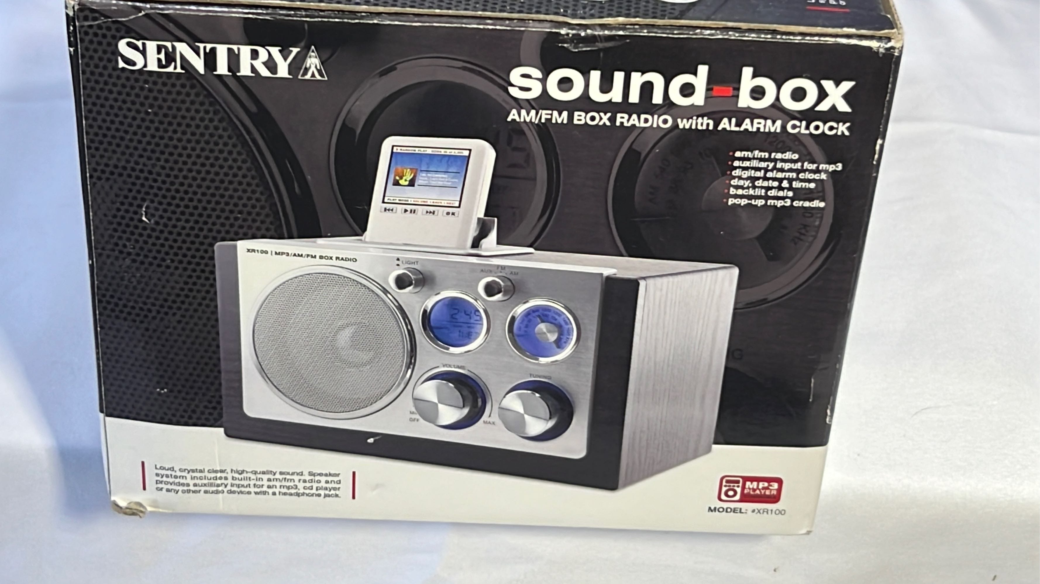 69 Sentry Sound-Box AM/FM Box Radio with Alarm Clock NIB