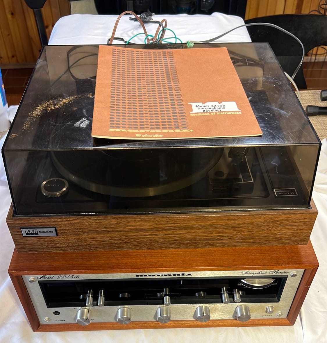 71 1970s Marantz Model 2215B Stereophonic Receiver (works) & BSR Turntable
