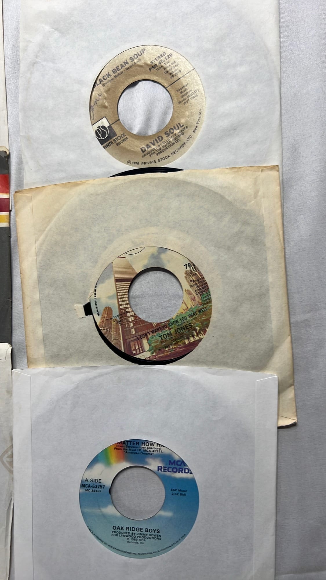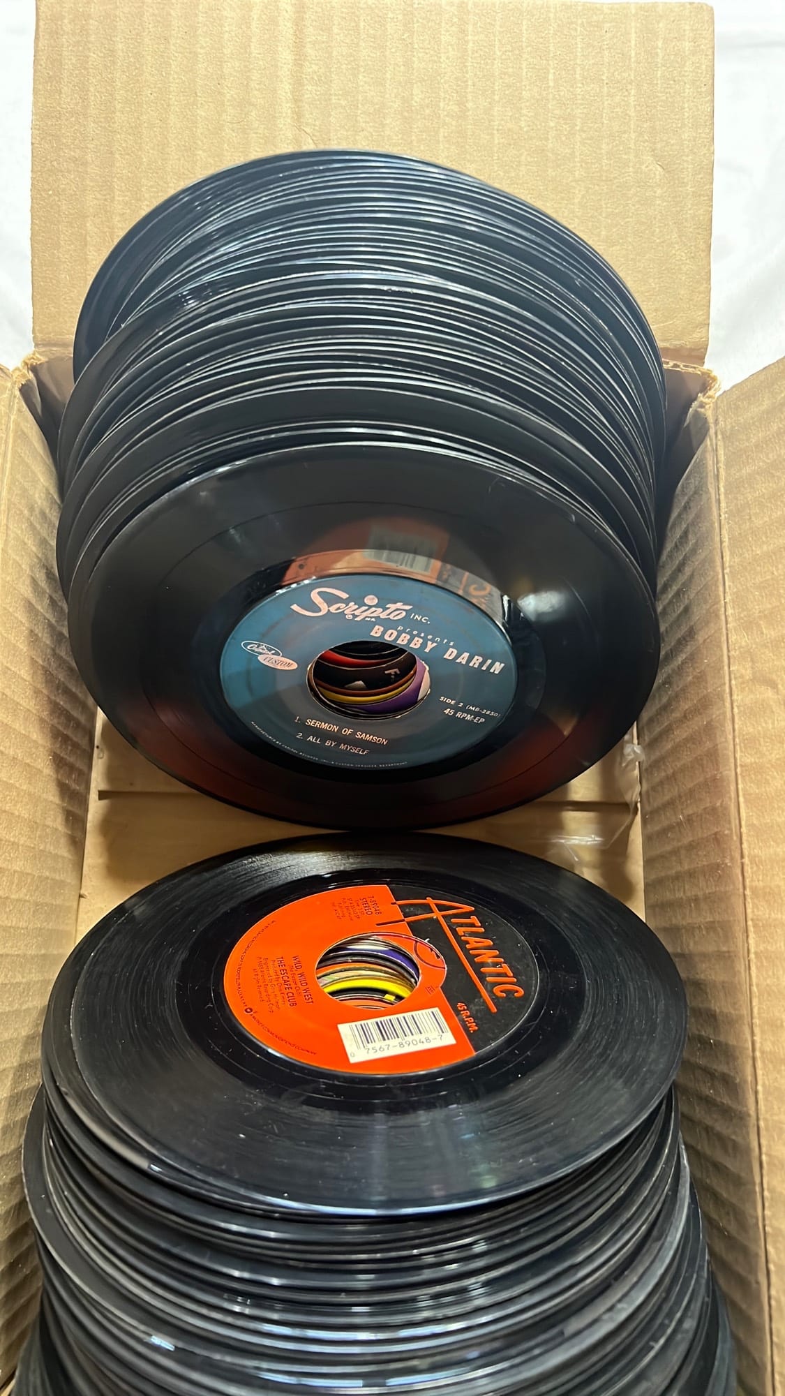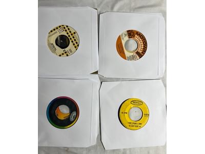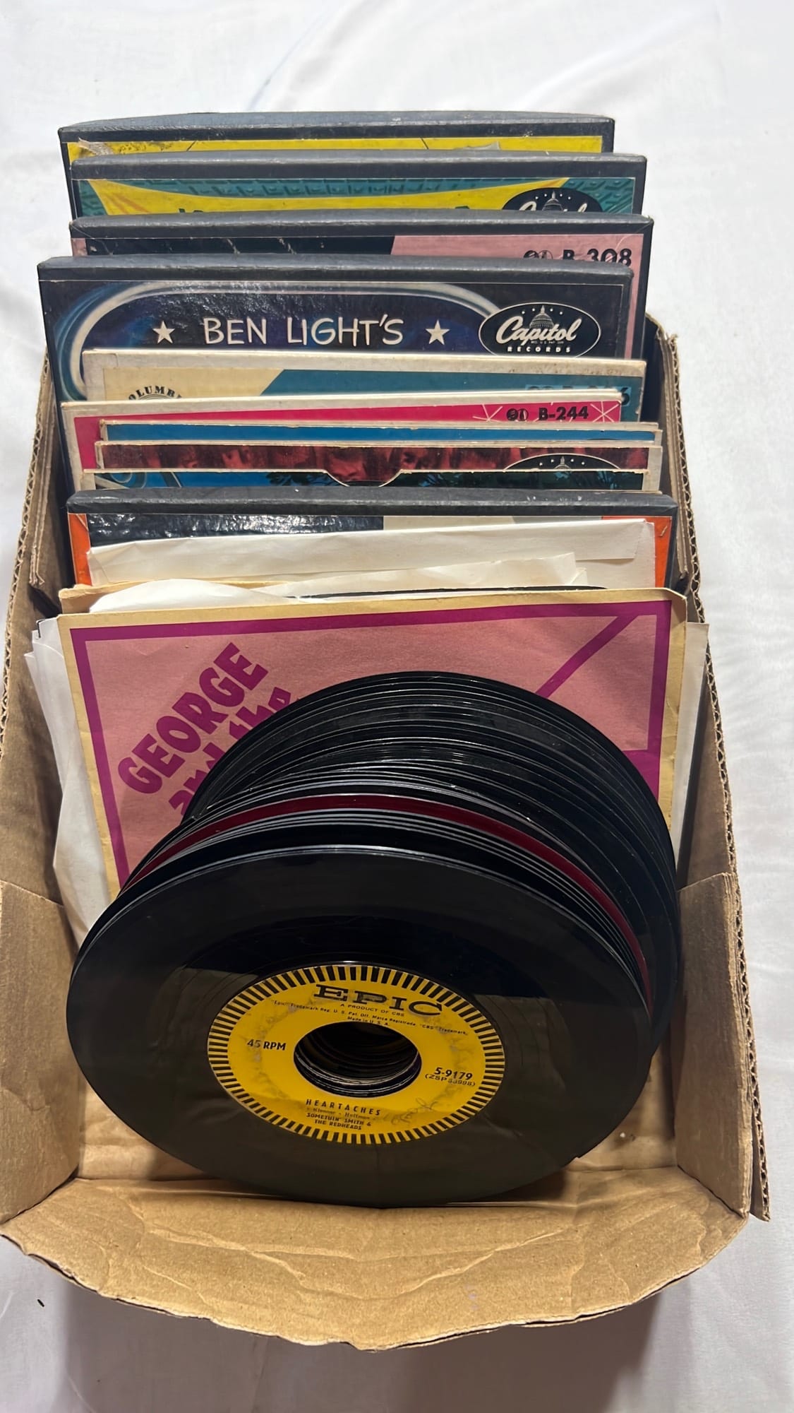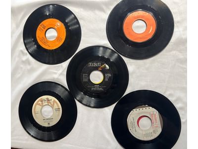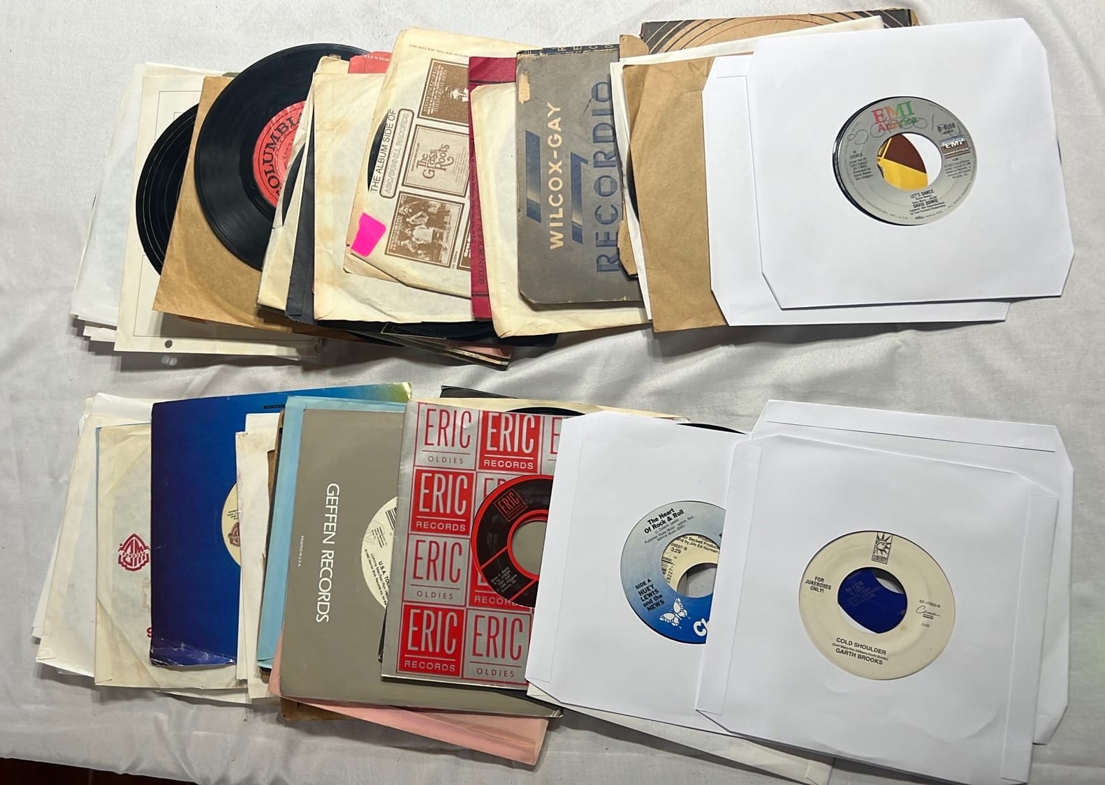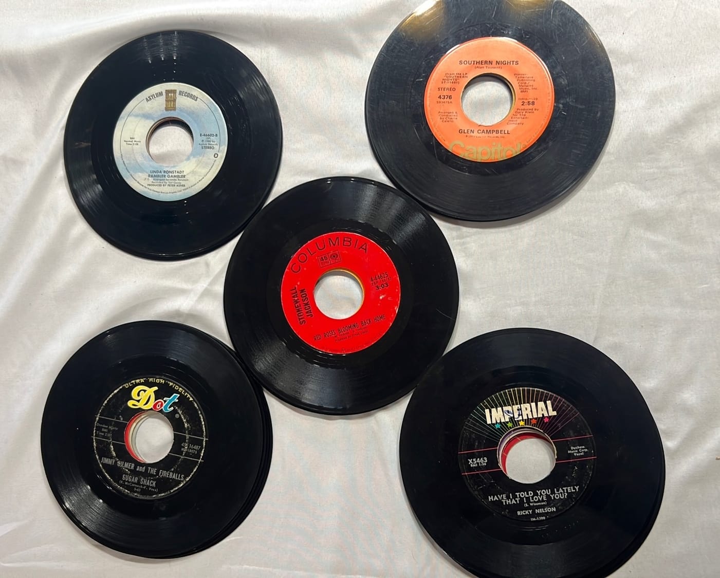 367 Fifty Misc. Rock & Country 45 rpm Juke Box Records - Many with Original Jackets and Iconic Labels