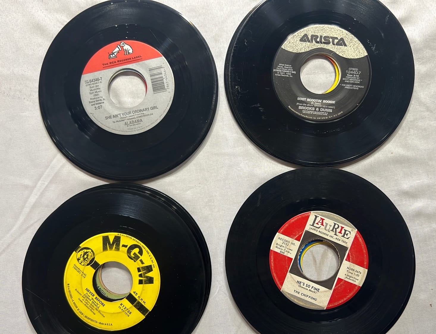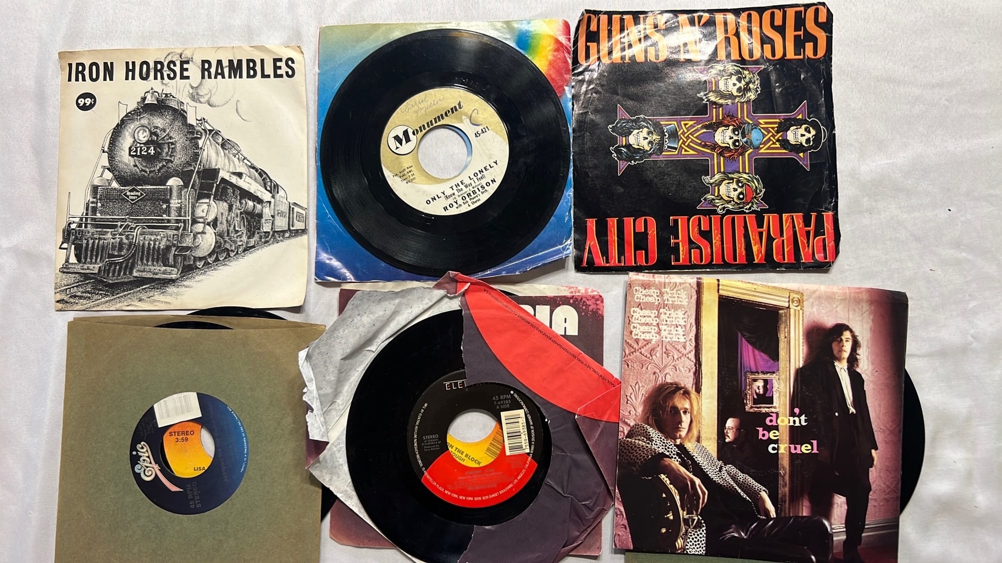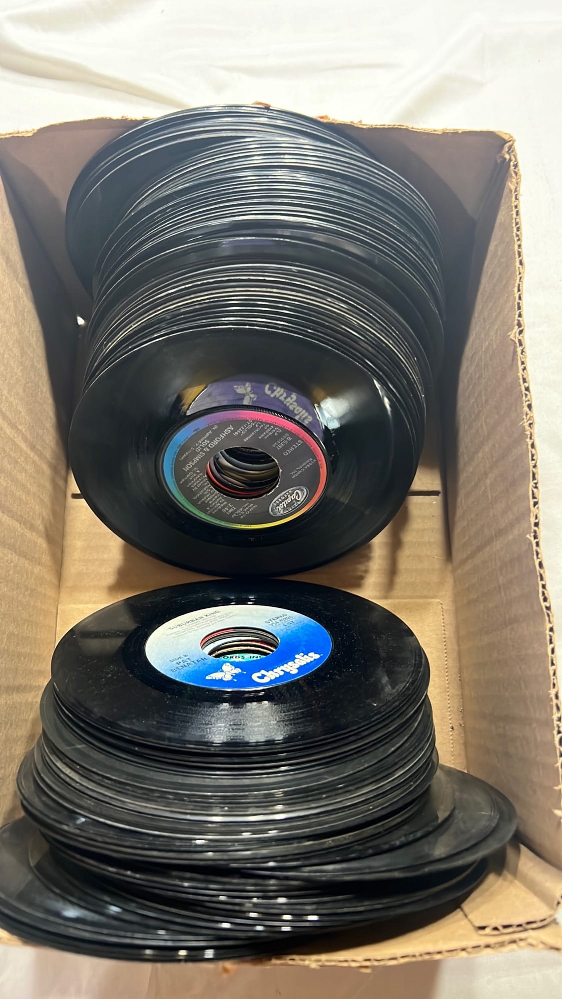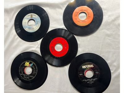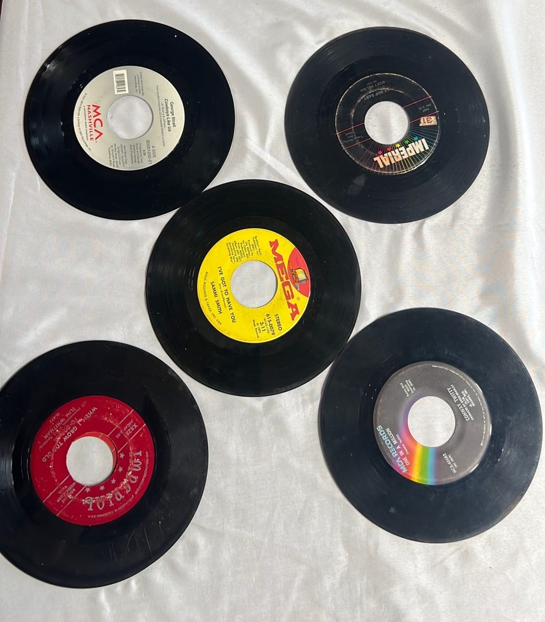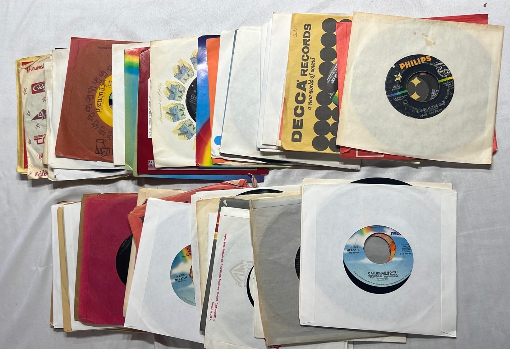 367 Fifty Misc. Rock & Country 45 rpm Juke Box Records - Many with Original Jackets and Iconic Labels