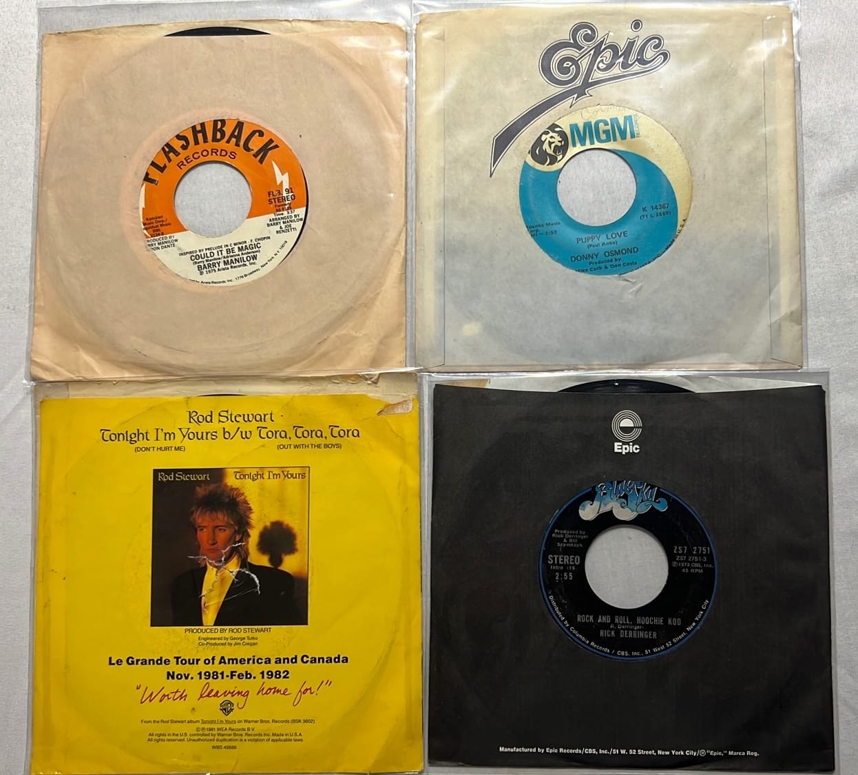 390 Four - 45 rpm Records including - Rod Stewart • Barry Manilow • Donny Osmond • Rick Derringer