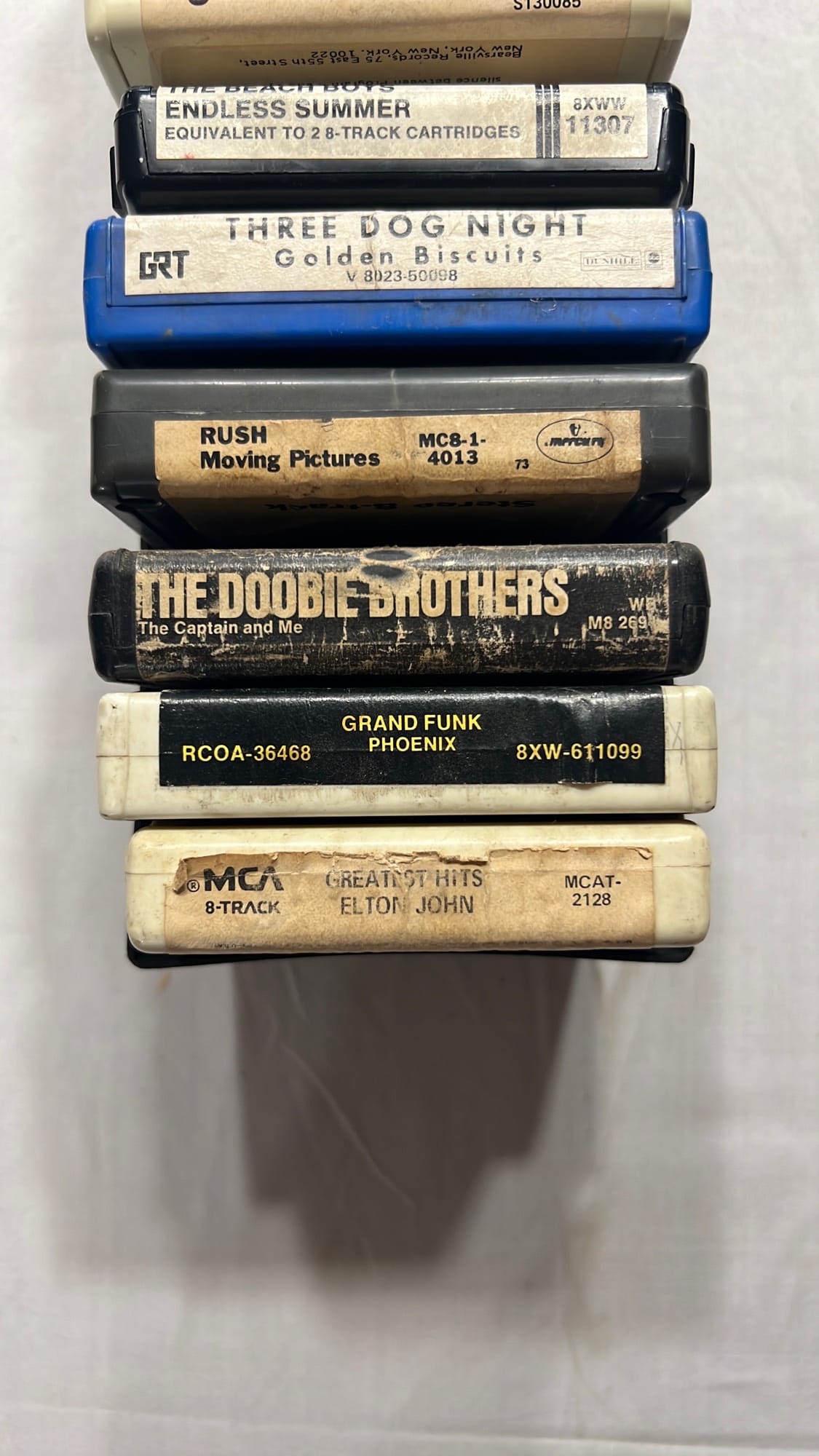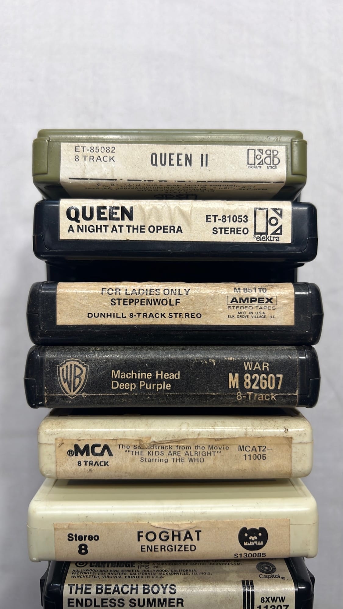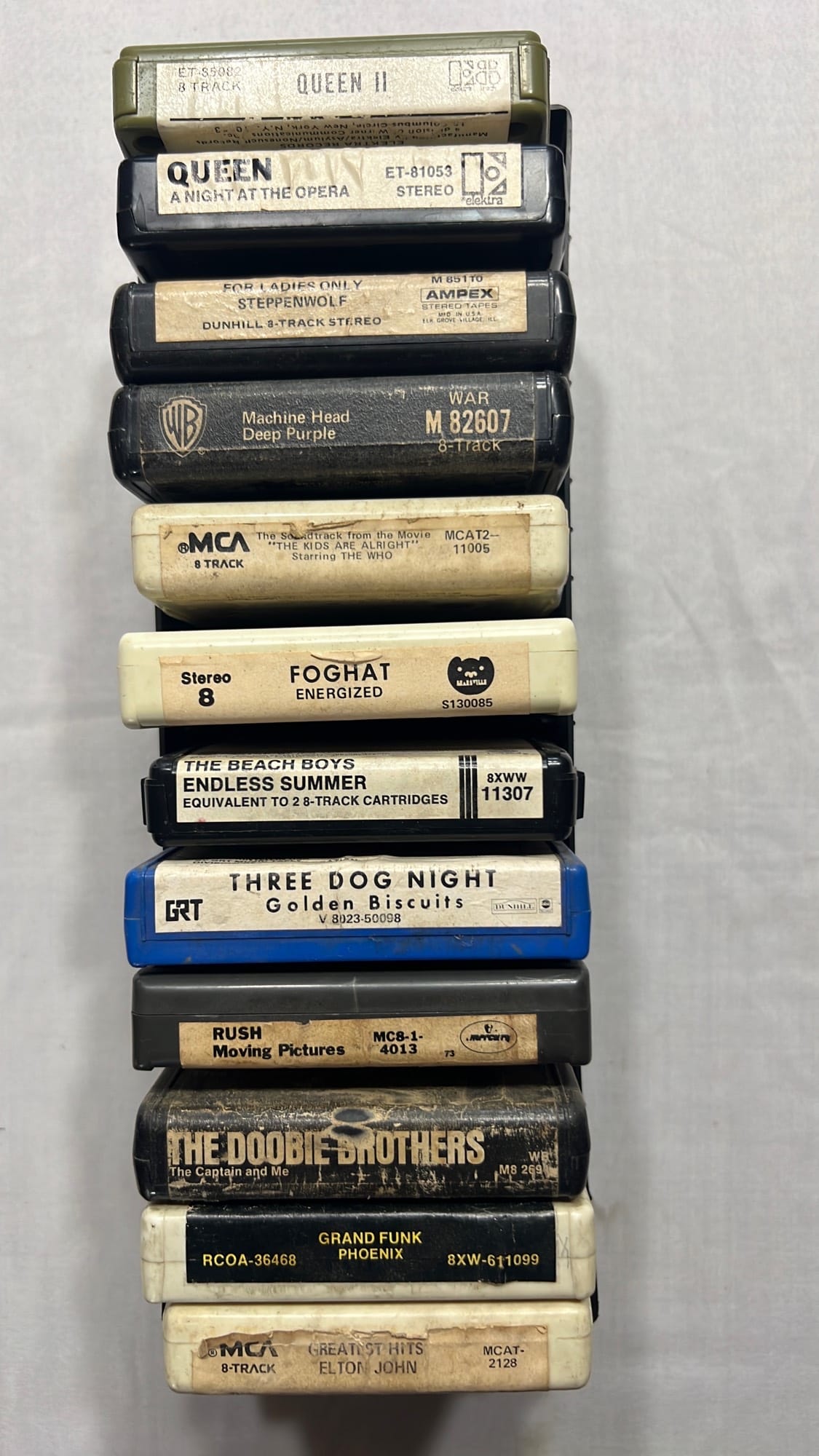 399 Twelve - Major Rock Groups 8 Track Tapes including - Queen • Steppenwolf • Deep Purple • The Who • Foghat • The Beach Boys • Three Dog Night • Rush • The Doobie Brothers • Grand Funk • Elton John