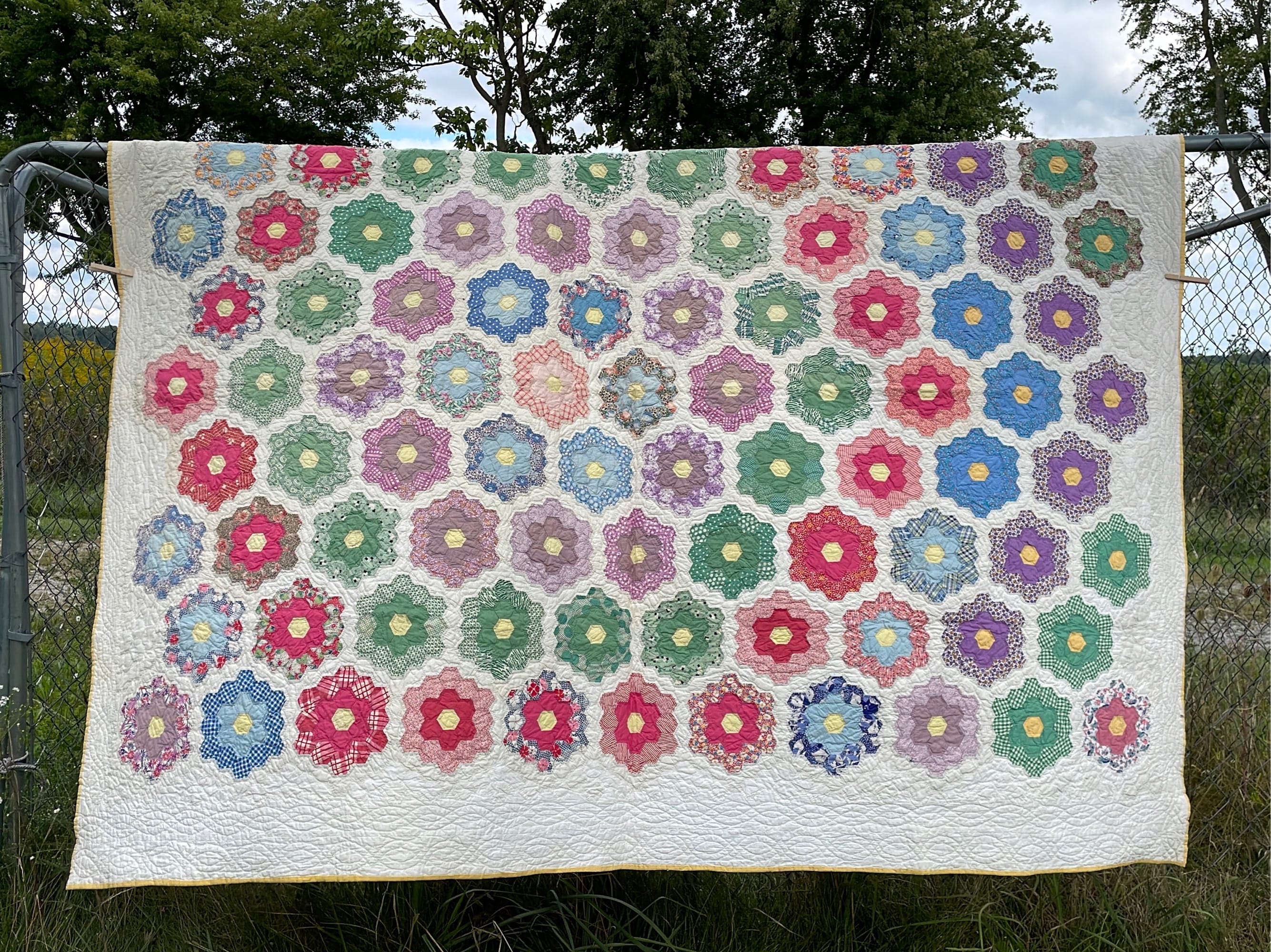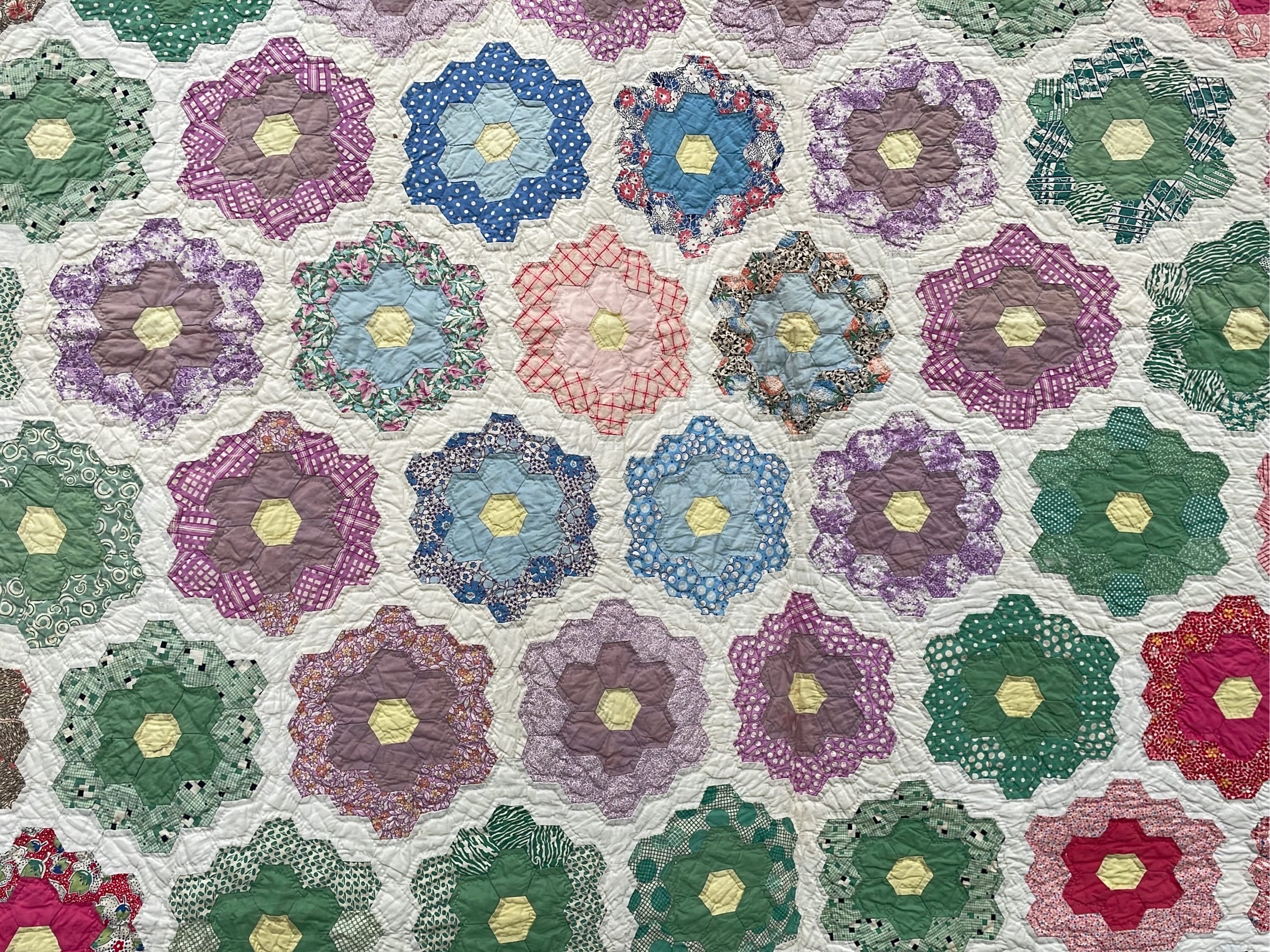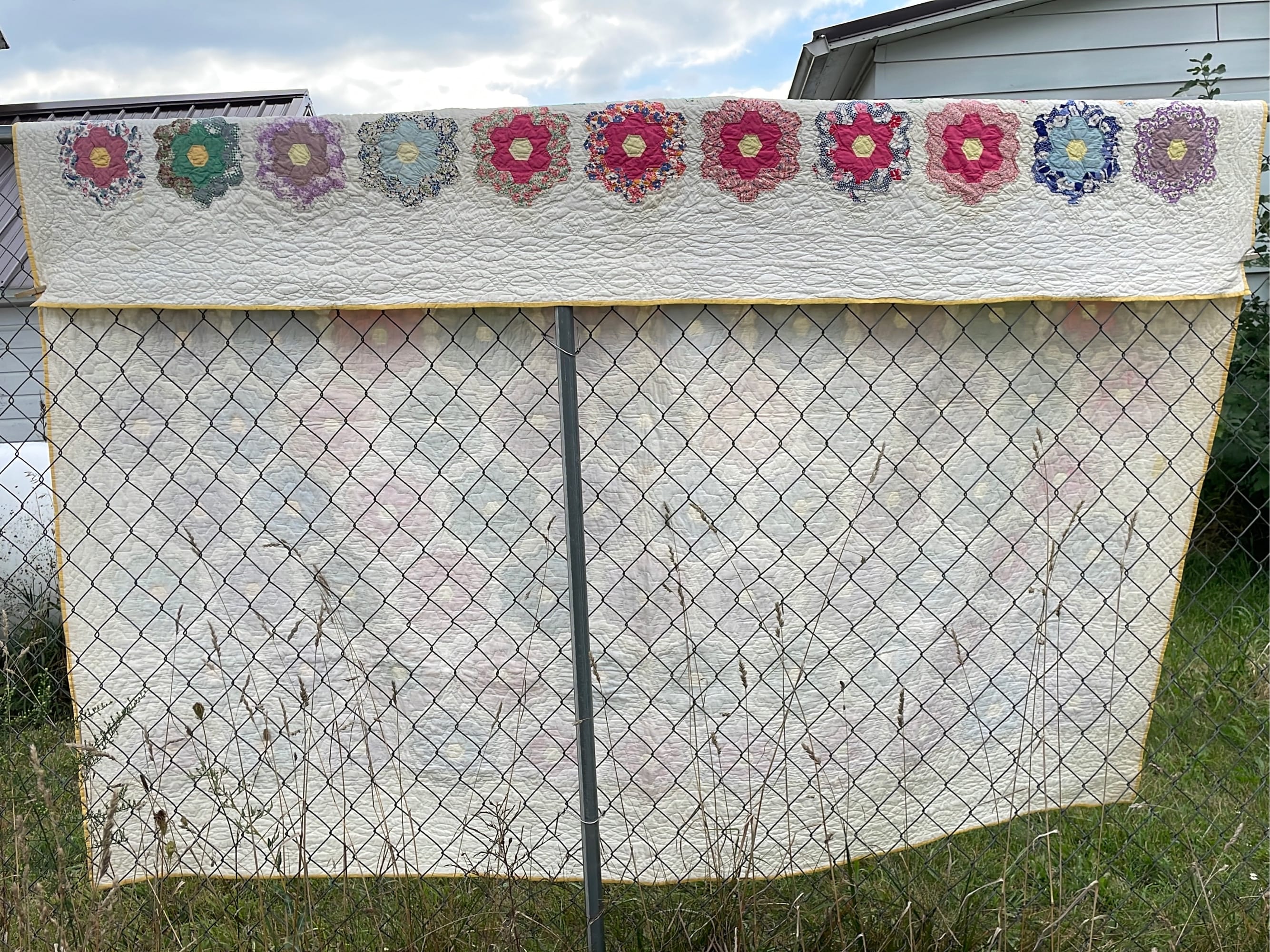 1 Quilt - probably at least 50 years old with a bit of discoloration (not much)- Approx. 87” x 6’