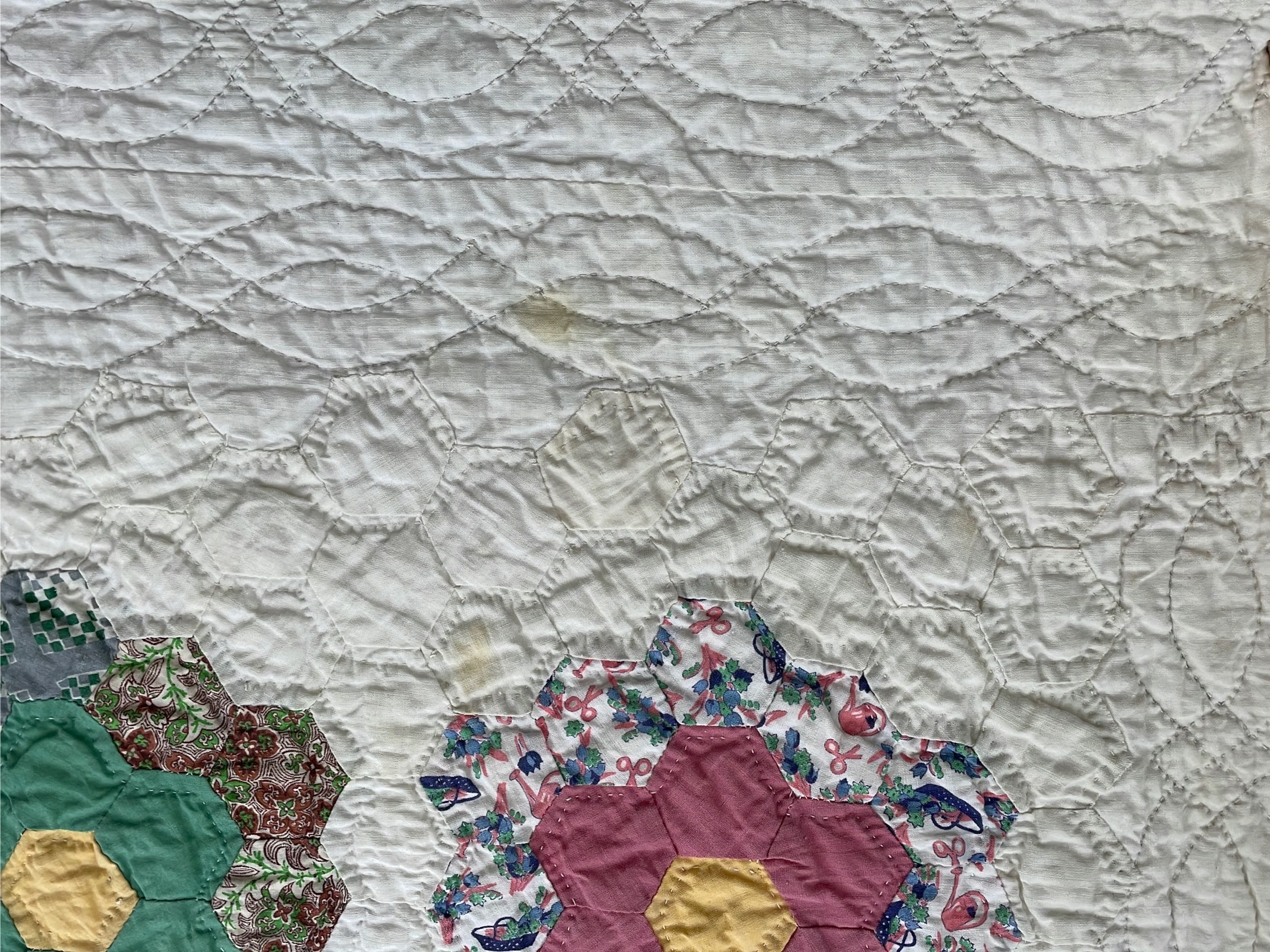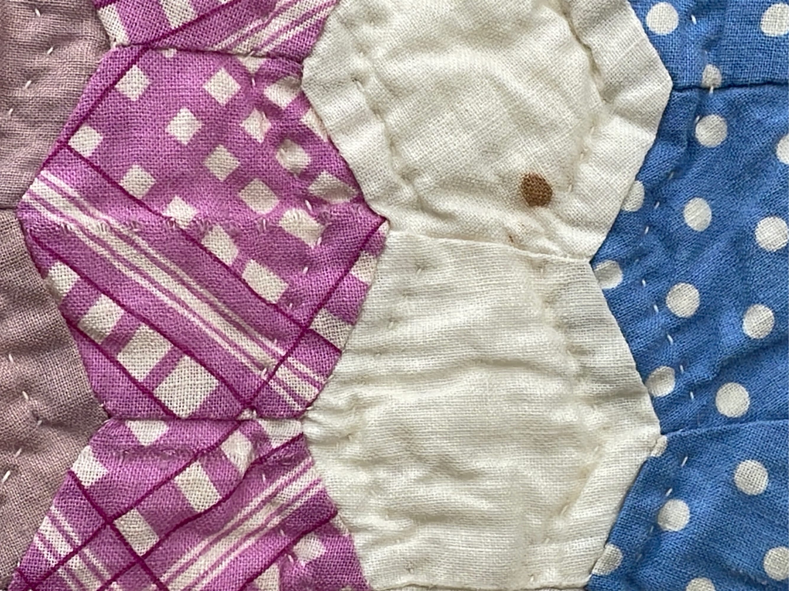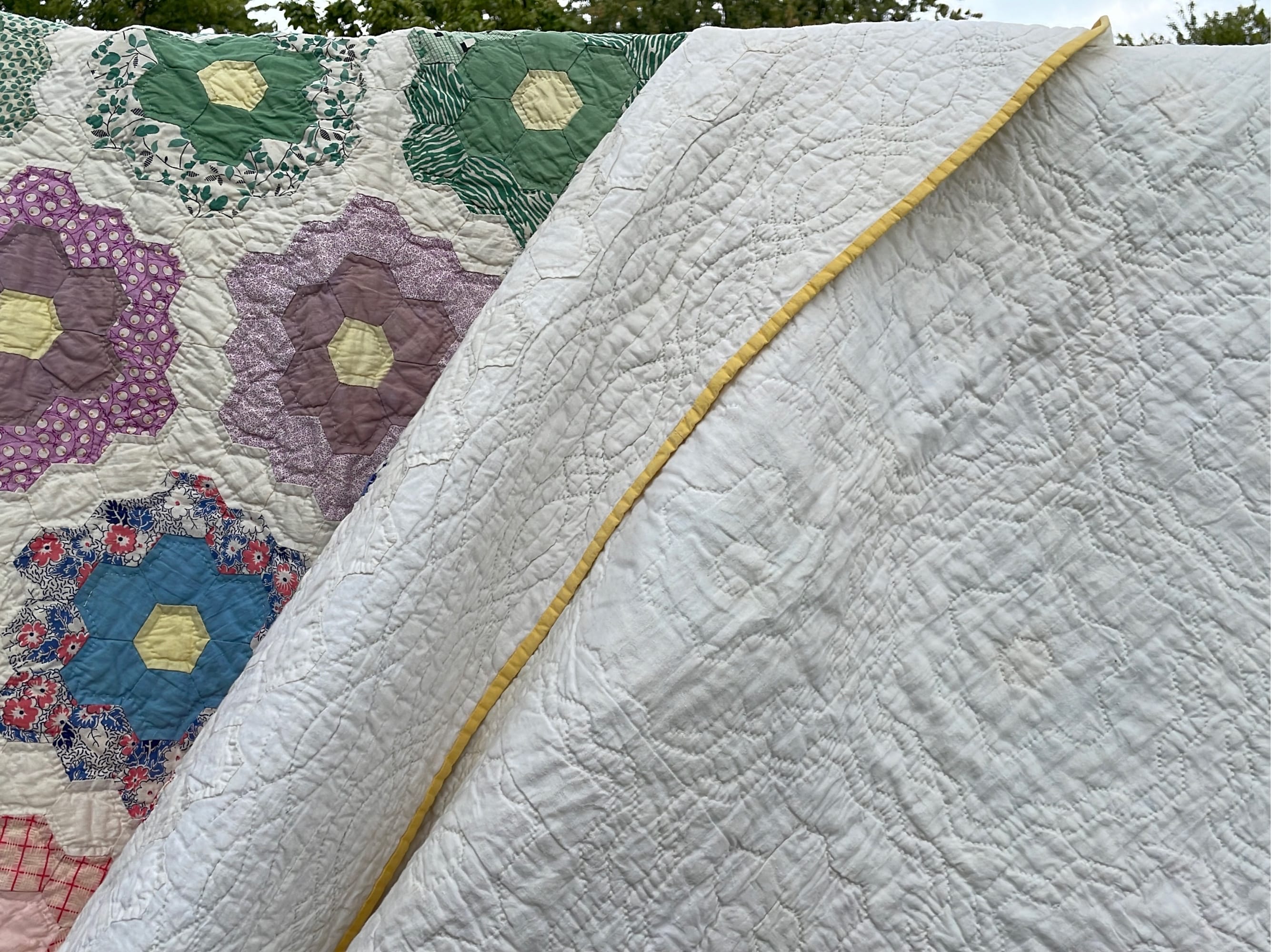 1A Quilt - Hand stitched - probably at least 65 years old 43” x 36” - the back is white - very nice condition