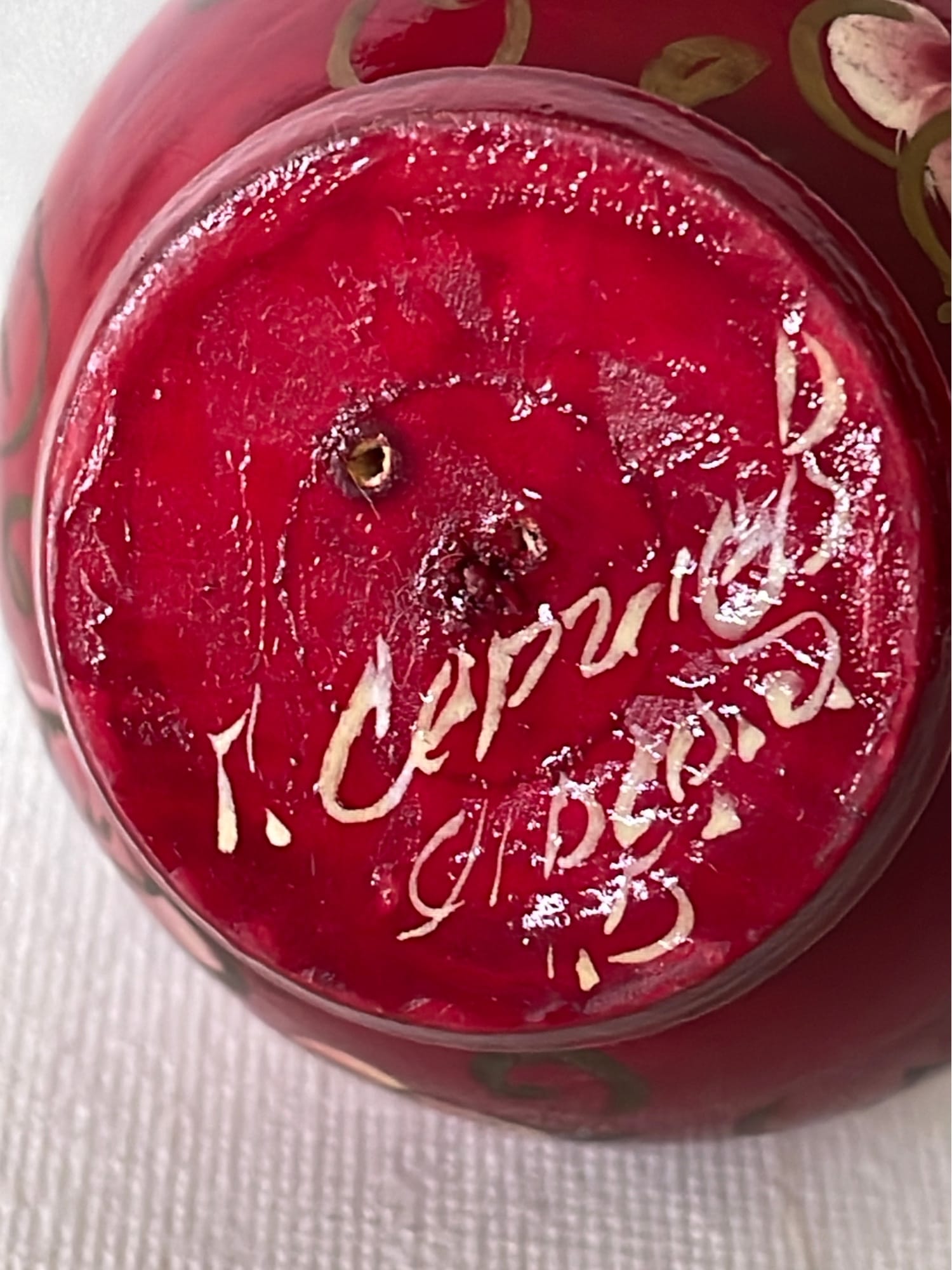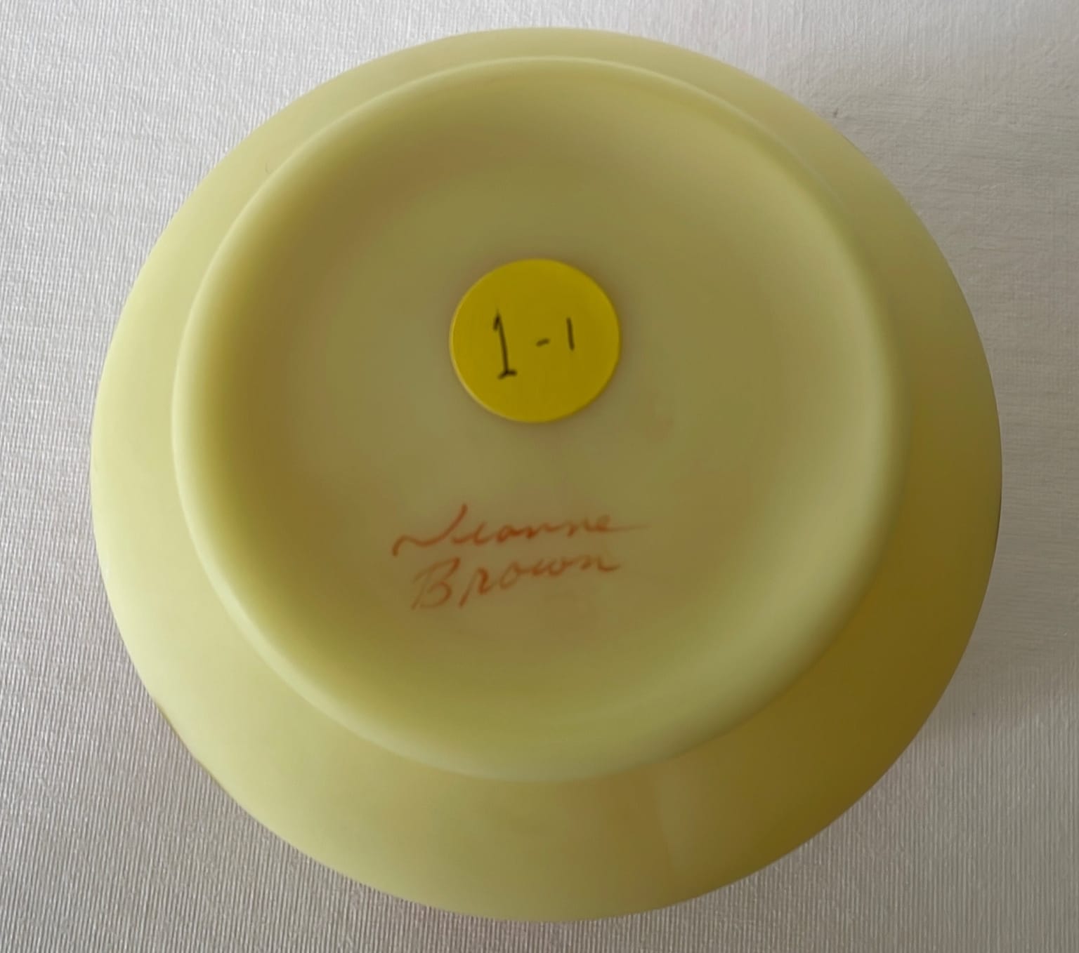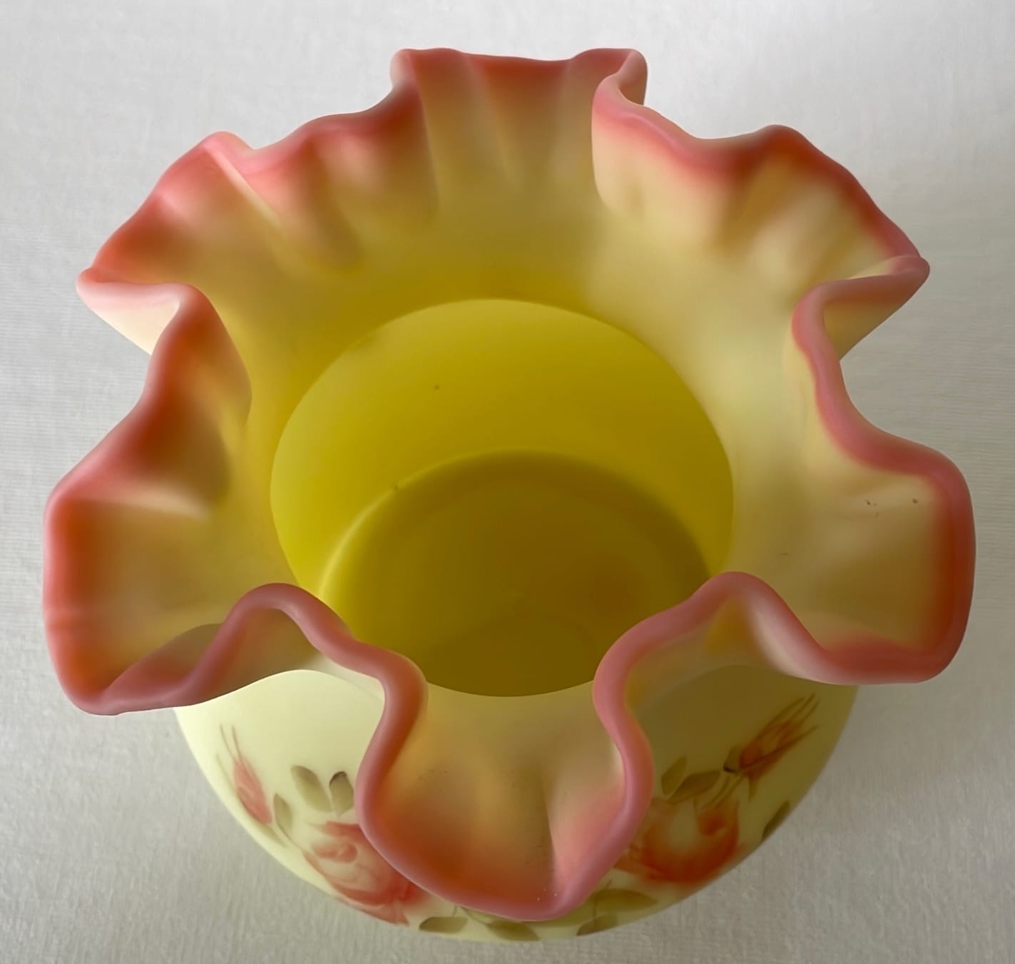 2A Fenton Glass Ruffled Decorated Rose Bowl 4 1/4”H - Hand Painted By “Jeanne Brown”