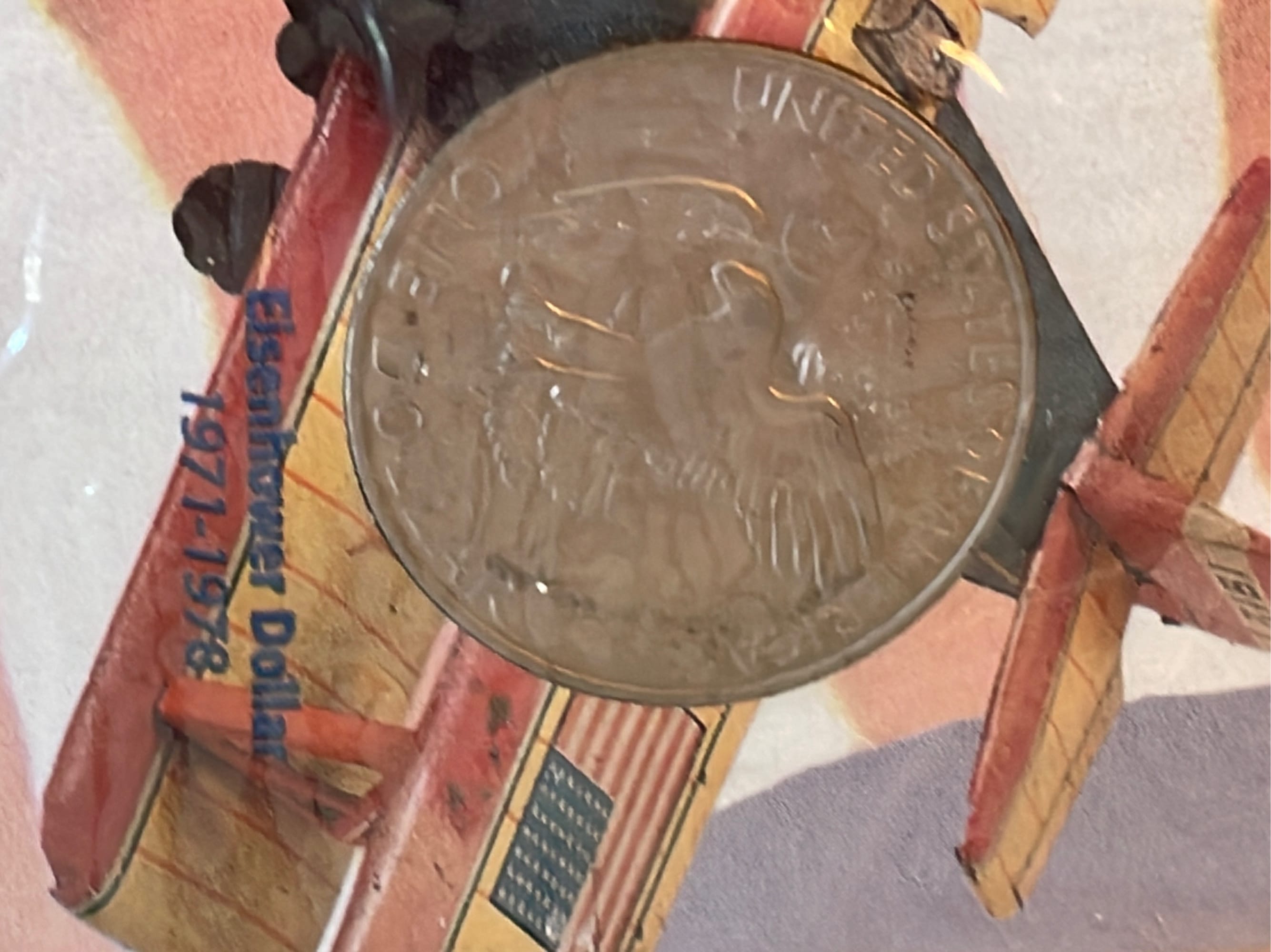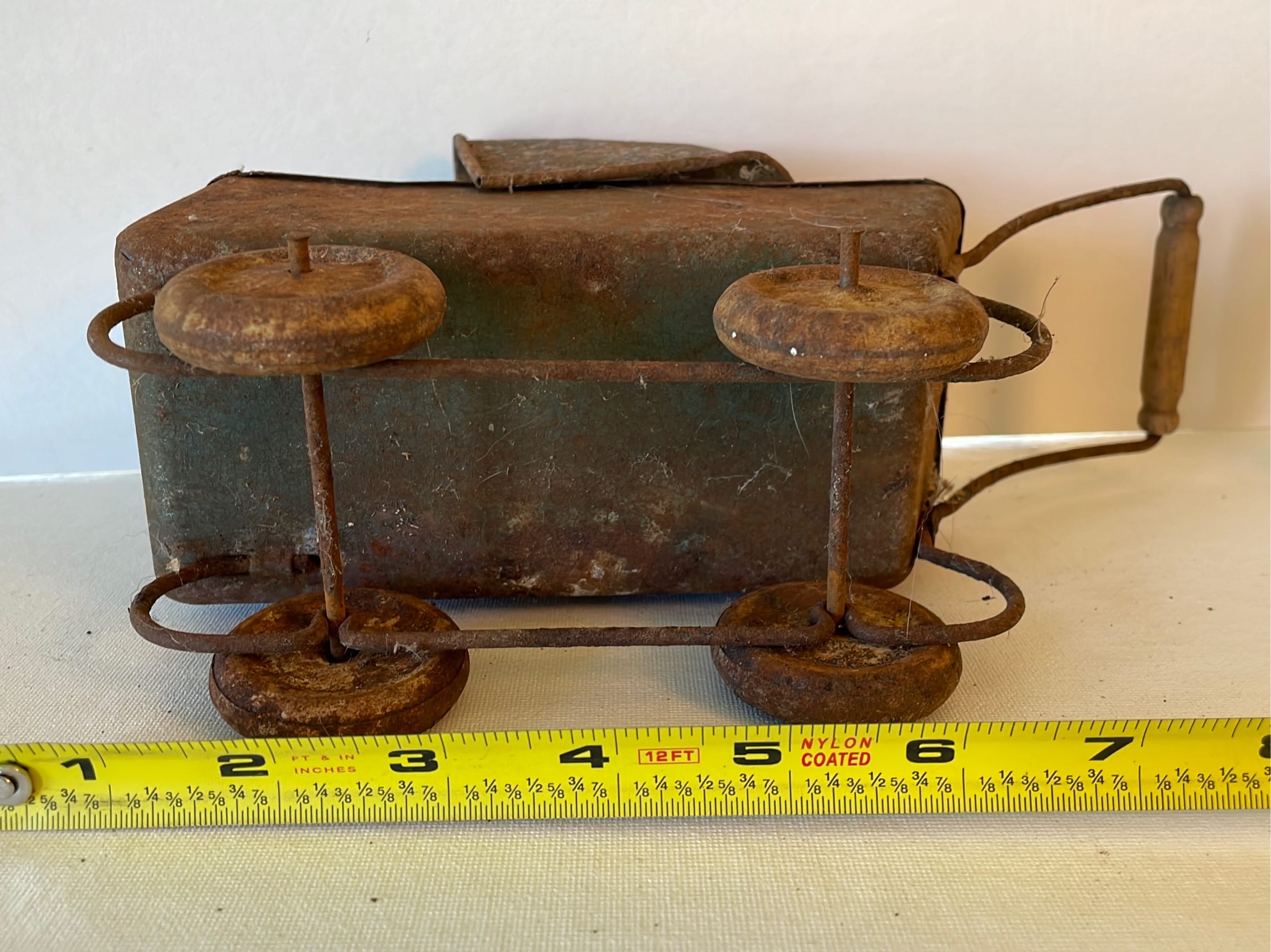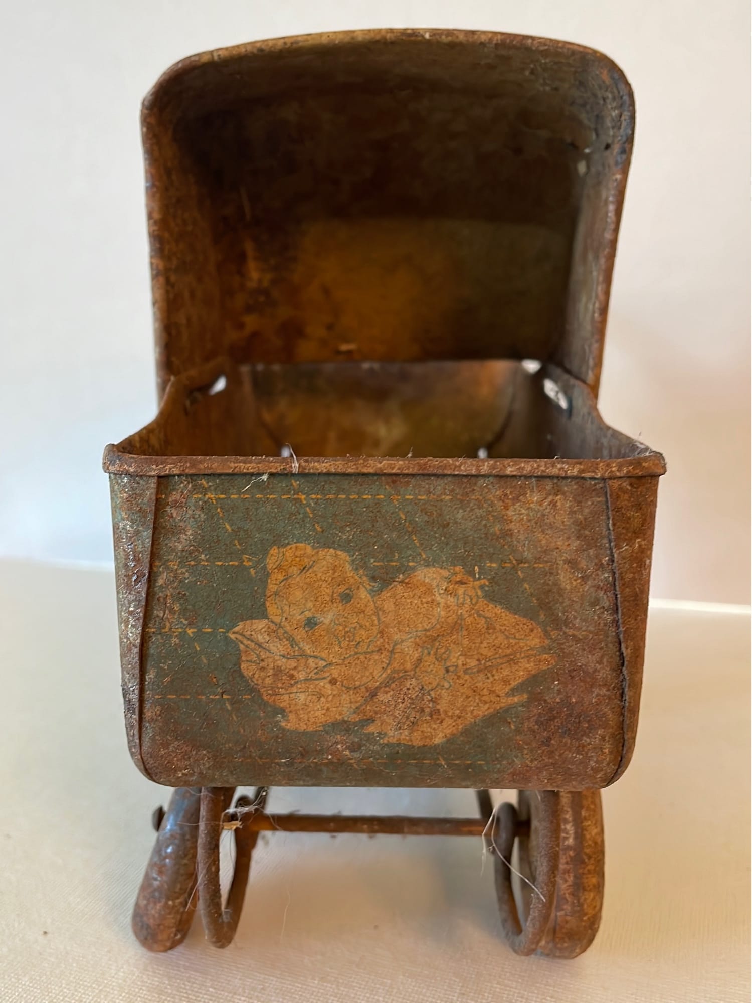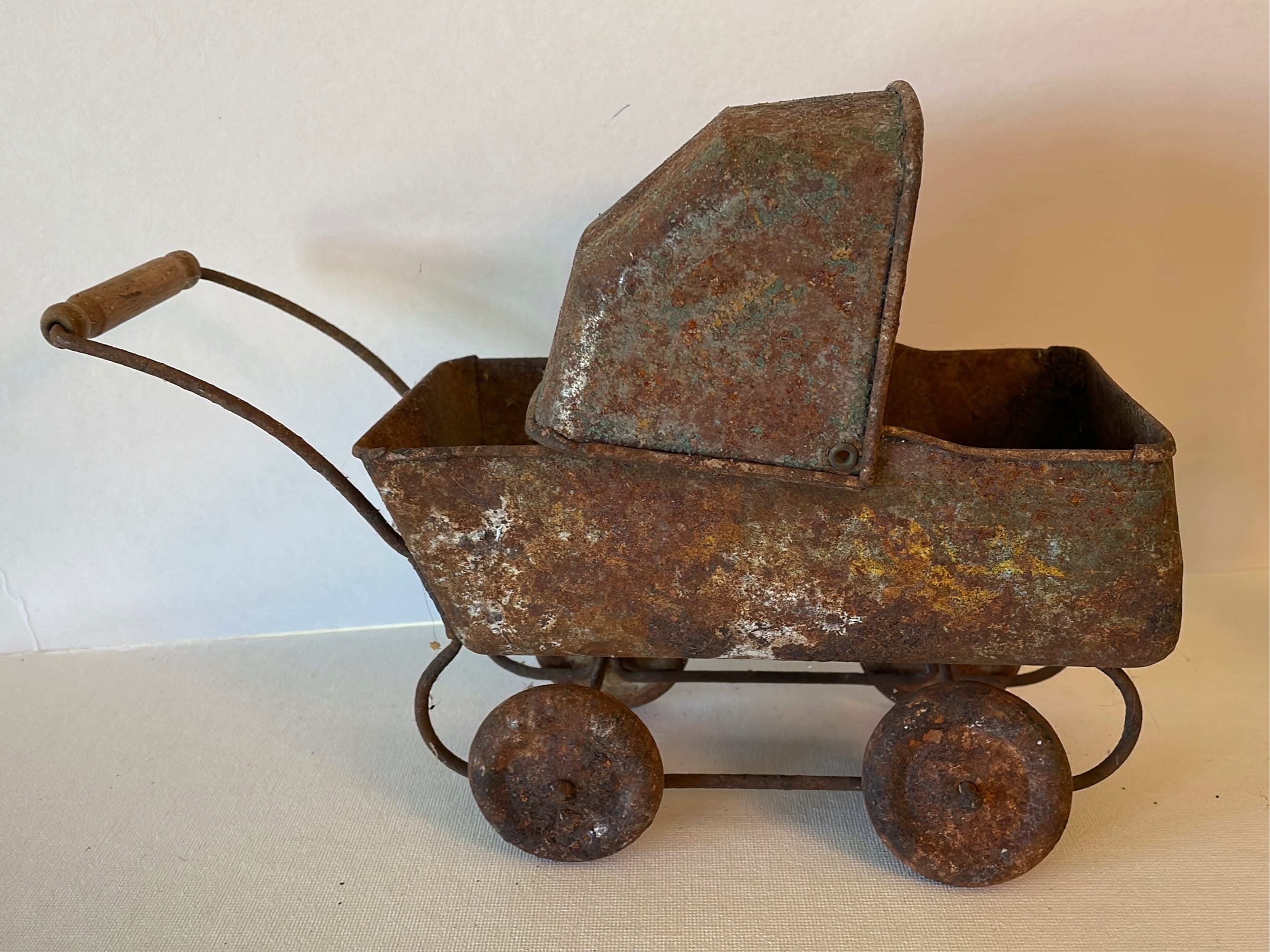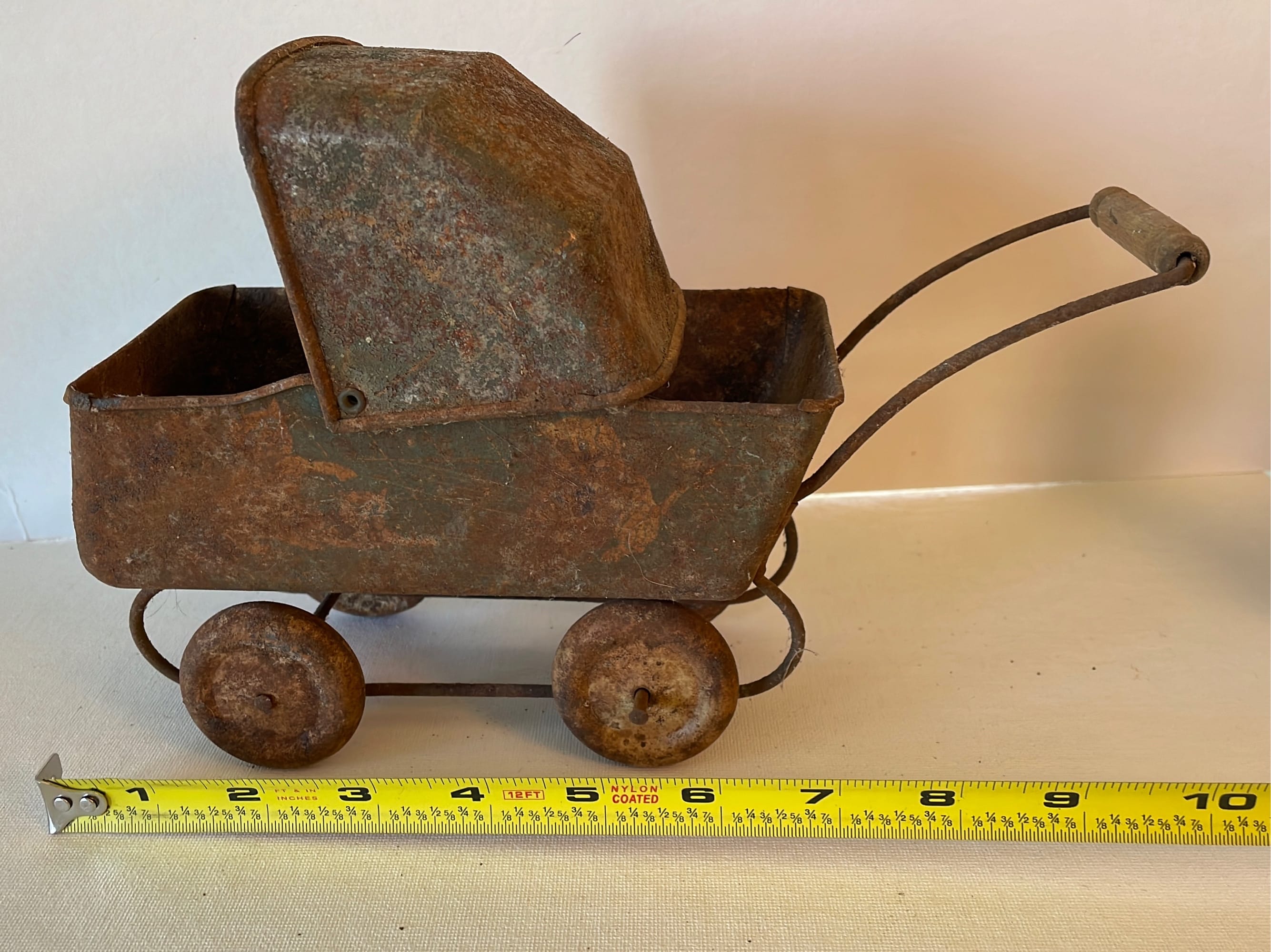 8 Copper Colored Metal Teepee Coin Bank (Circa 1960) 5 1/2 “H and Vintage Rusty Babydoll Carriage 6”H