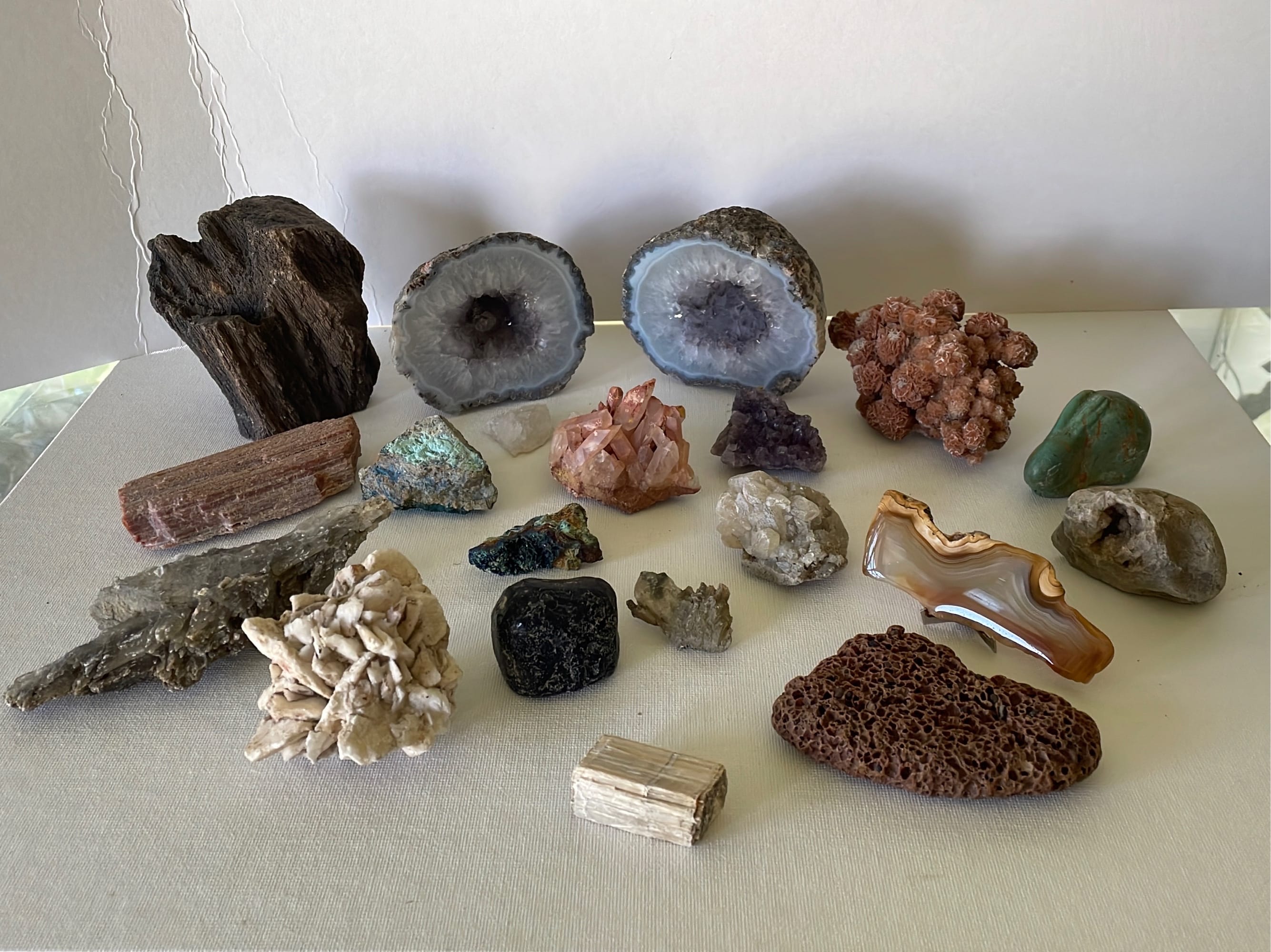 9 Rock Collection, Including: Apach Tear, Geode, Petrified Wood, And More