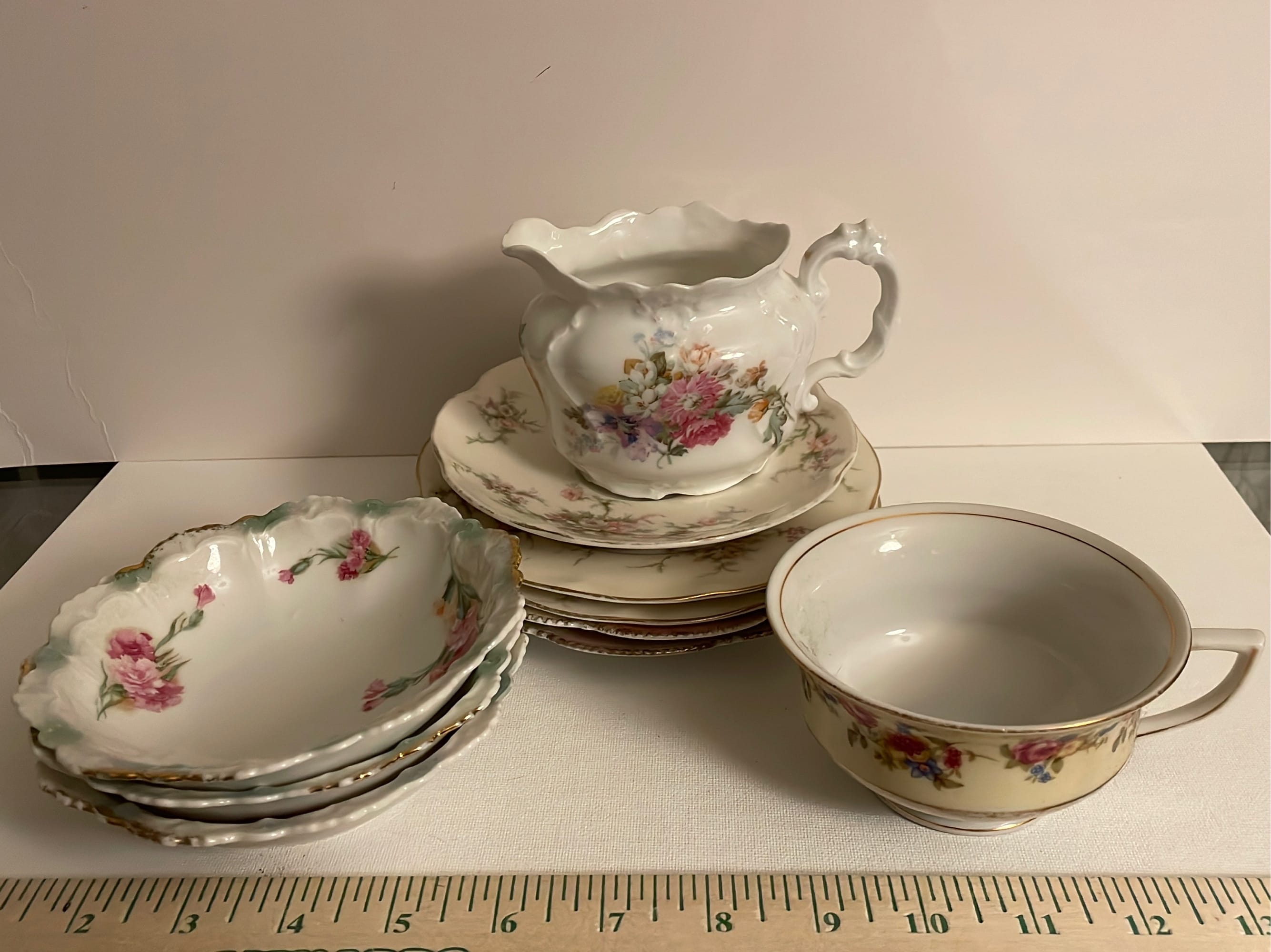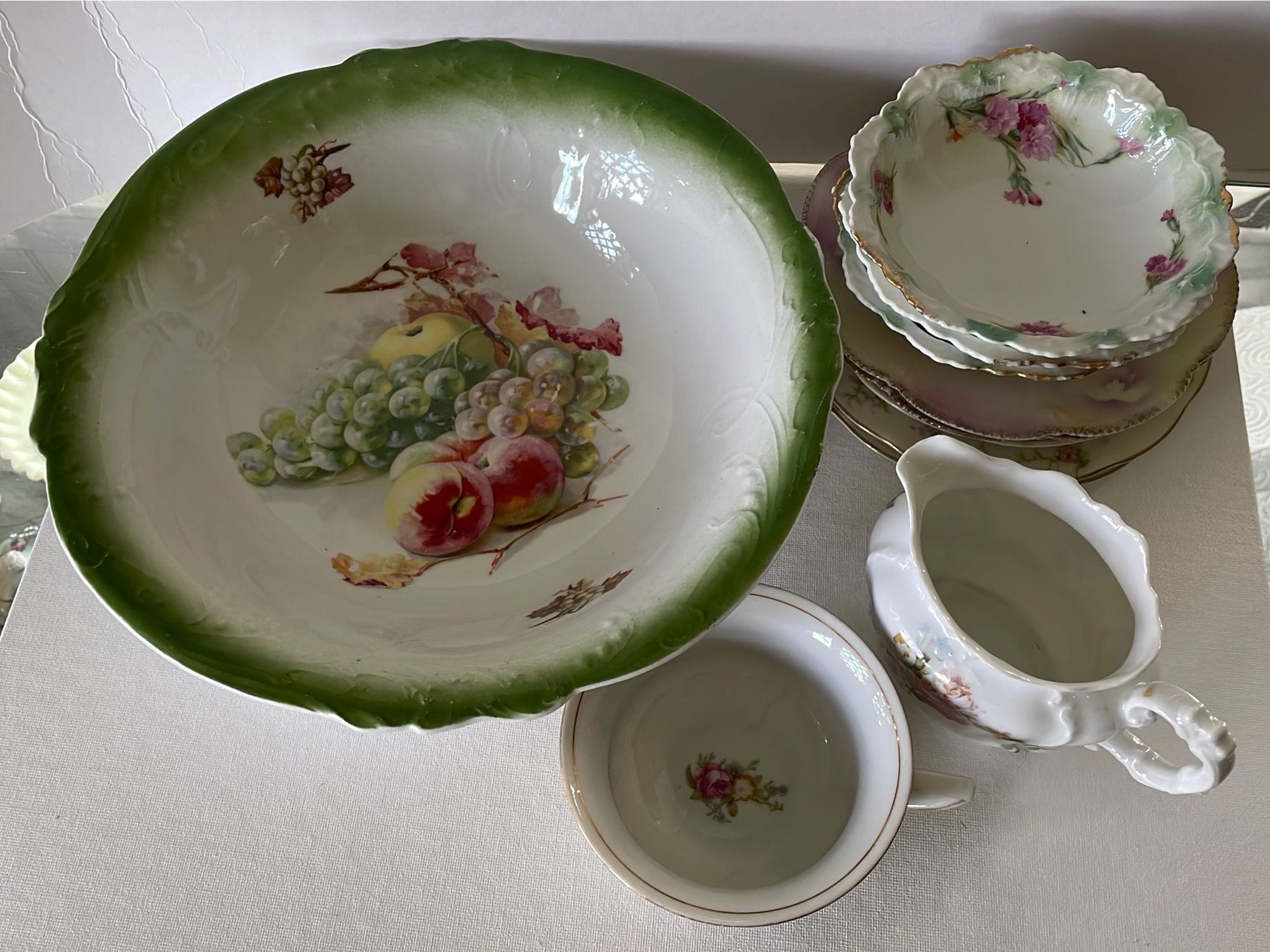 11 Bavarian china bowl 10 3/4”Dia. (paint loss), Haviland (1 piece chipped - gilding worn)