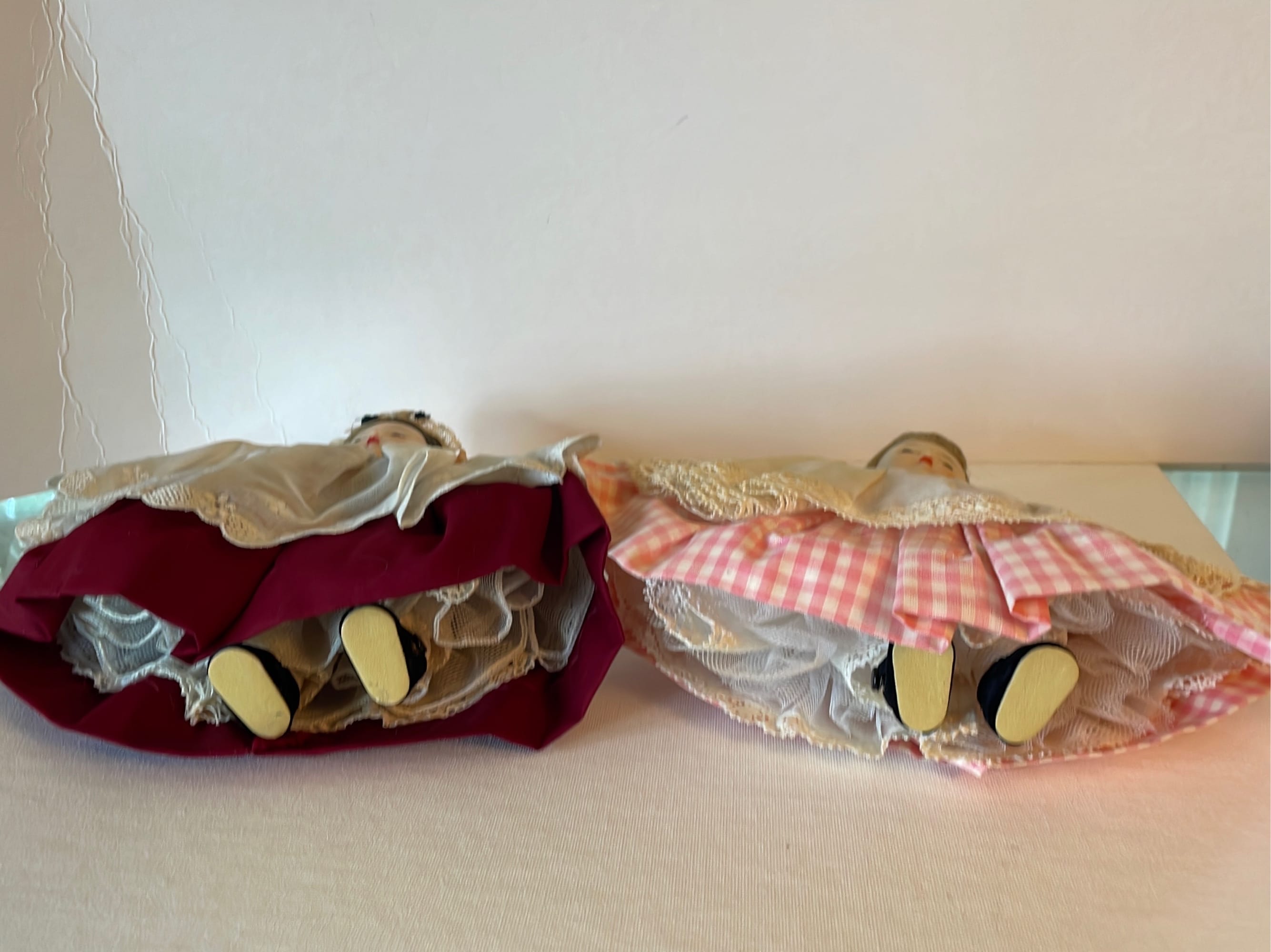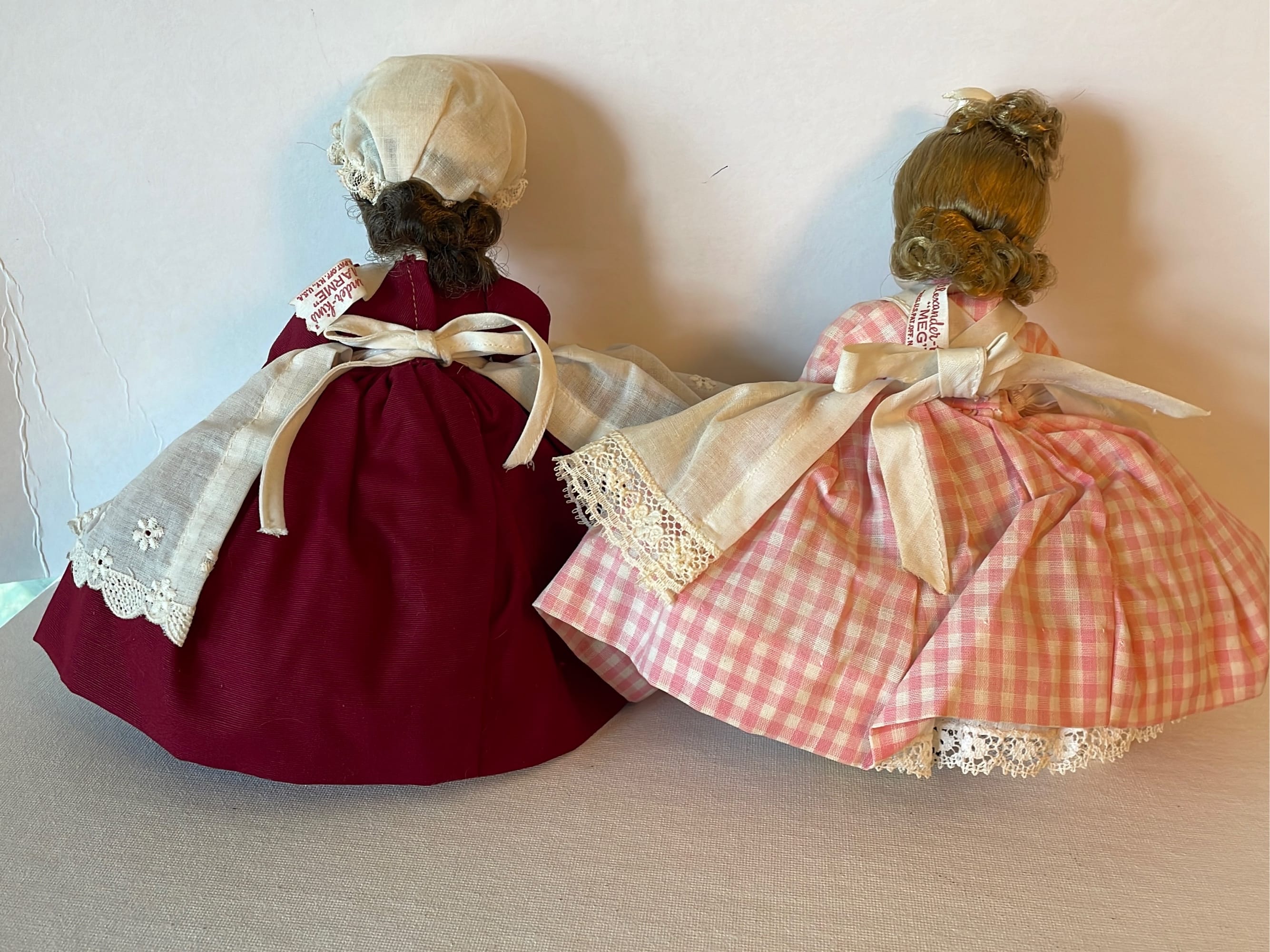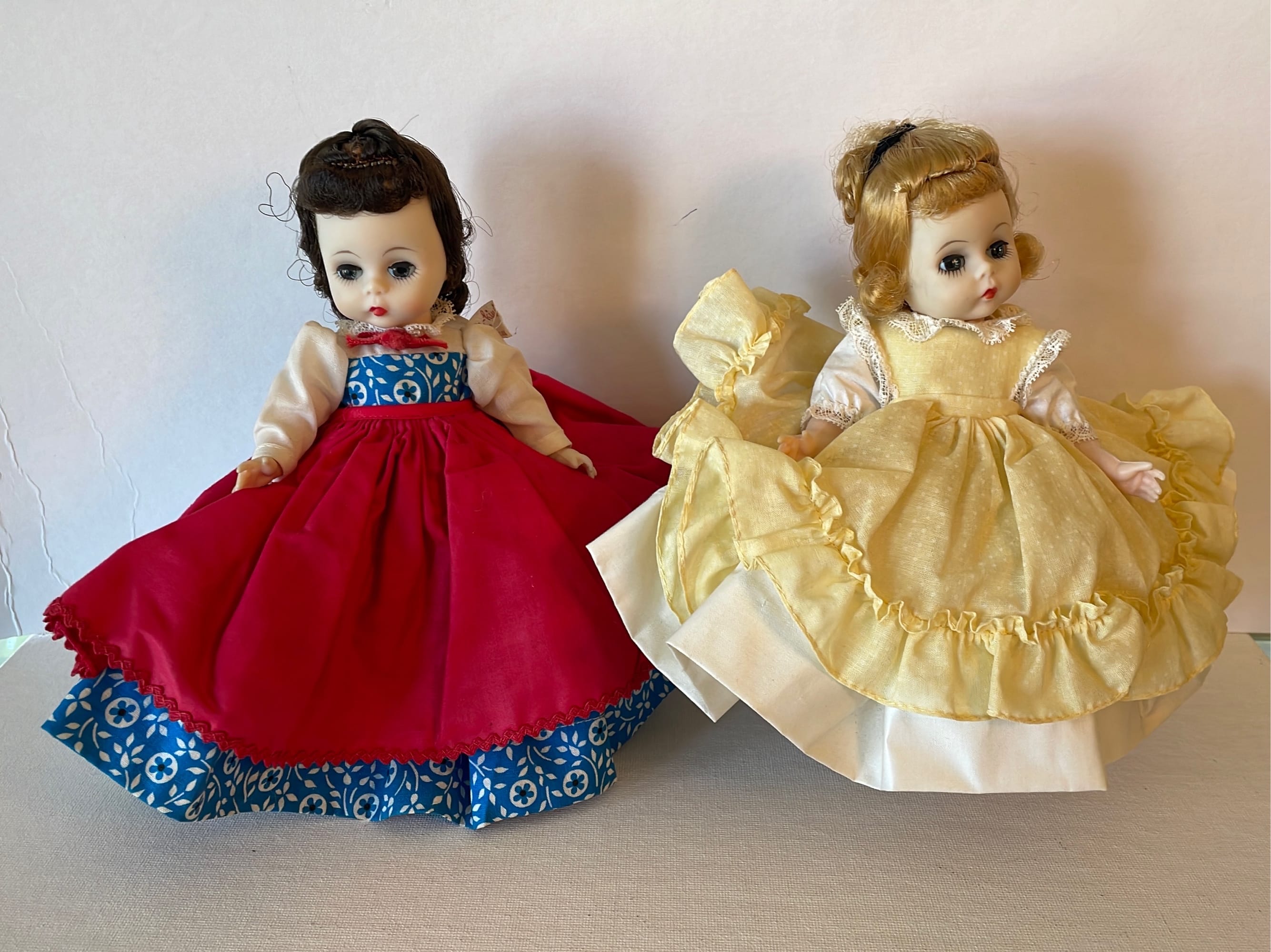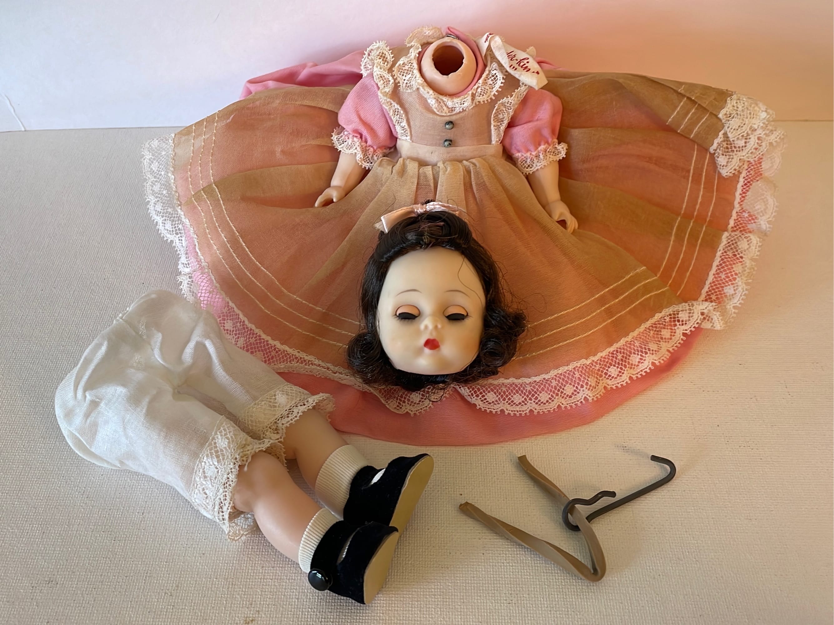 12A 5 Vintage Madame Alexander Little Women dolls from the 1960s: Marme, Meg, Beth (not in good shape), Joe and Amy - all have fabric discoloration, and were purchased during the same era as Beth (whose rubber bands have dried and broken )