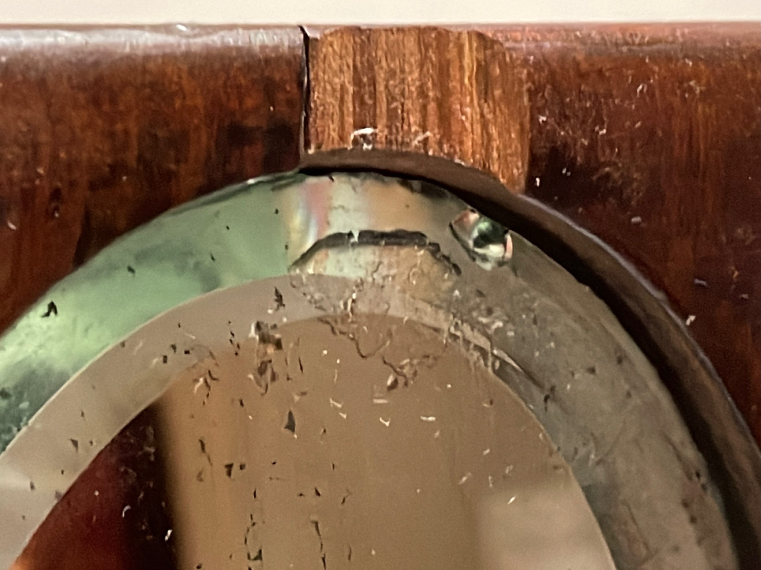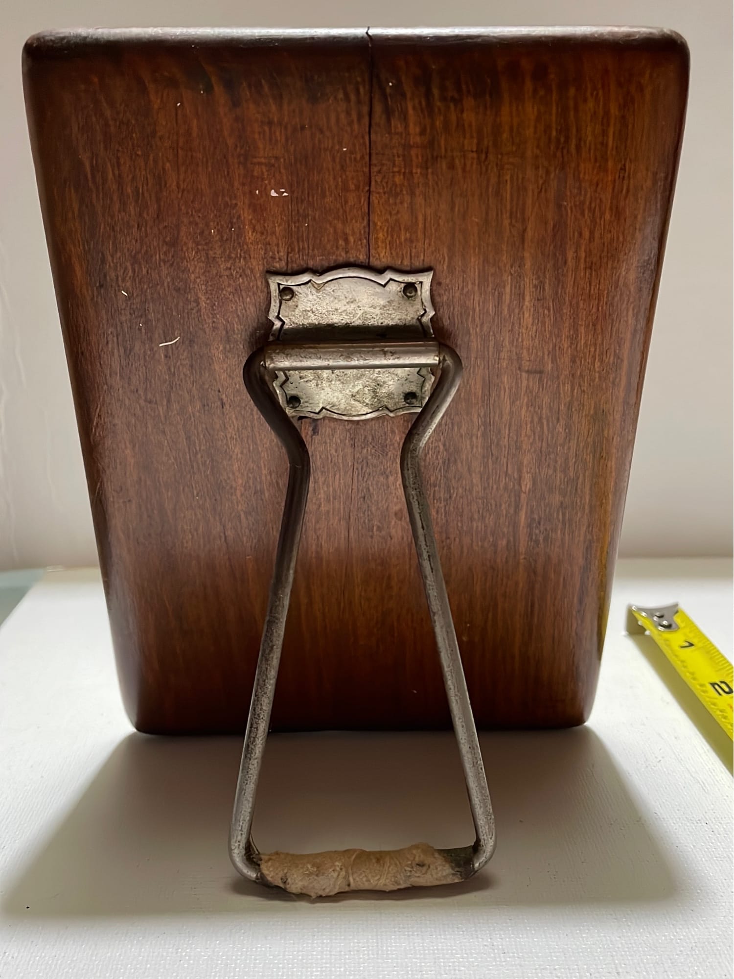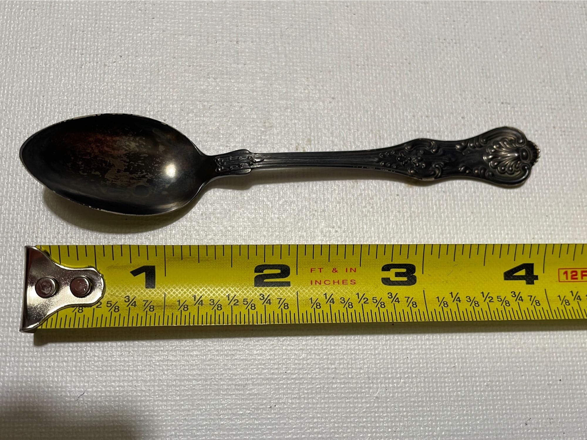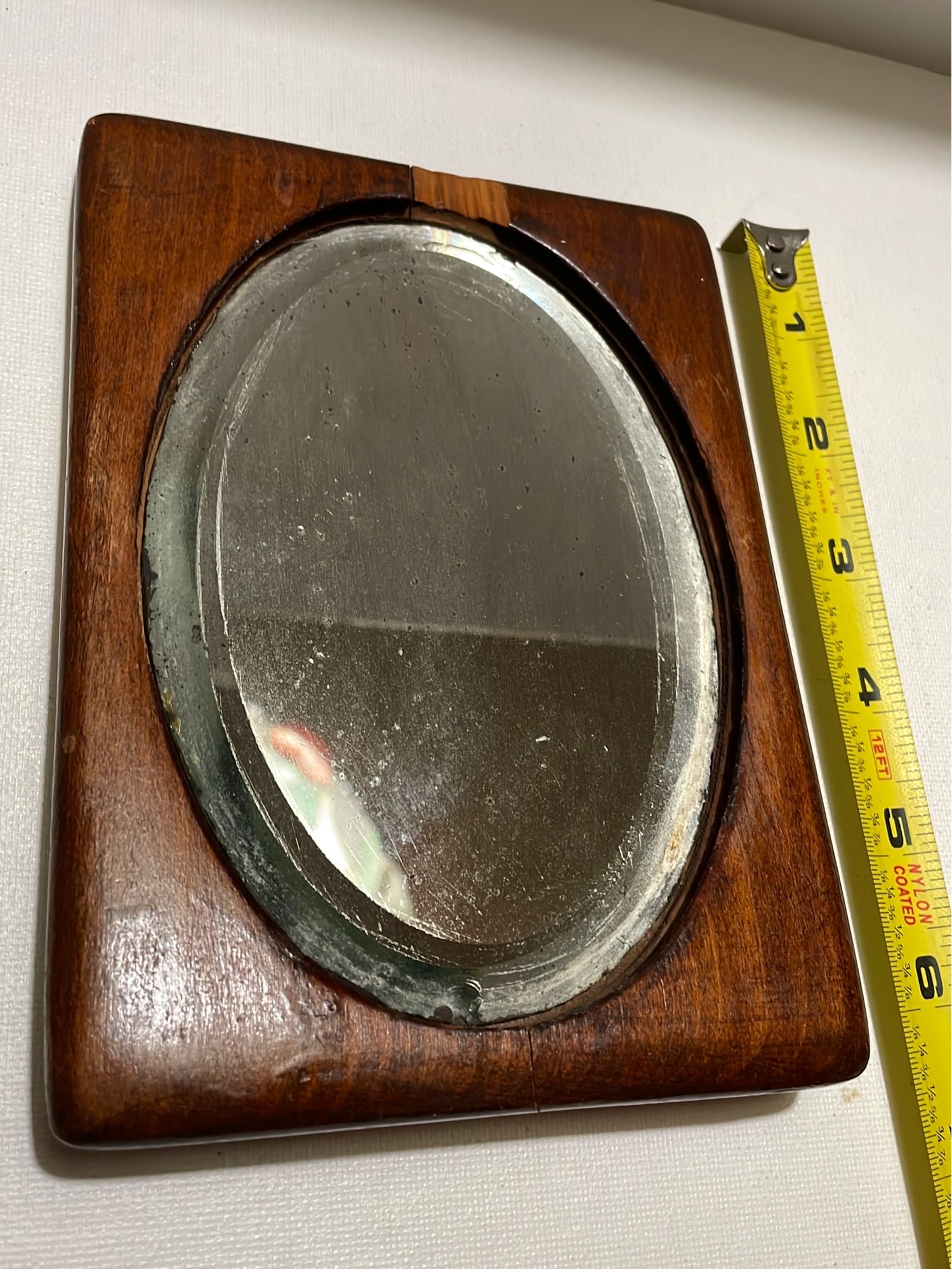 14 Iron, Armstrong glass insulator, Corkscrew, forks (1 with broken handle), small beveled mirror in chipped wooden frame, spoon marked “Sterling”