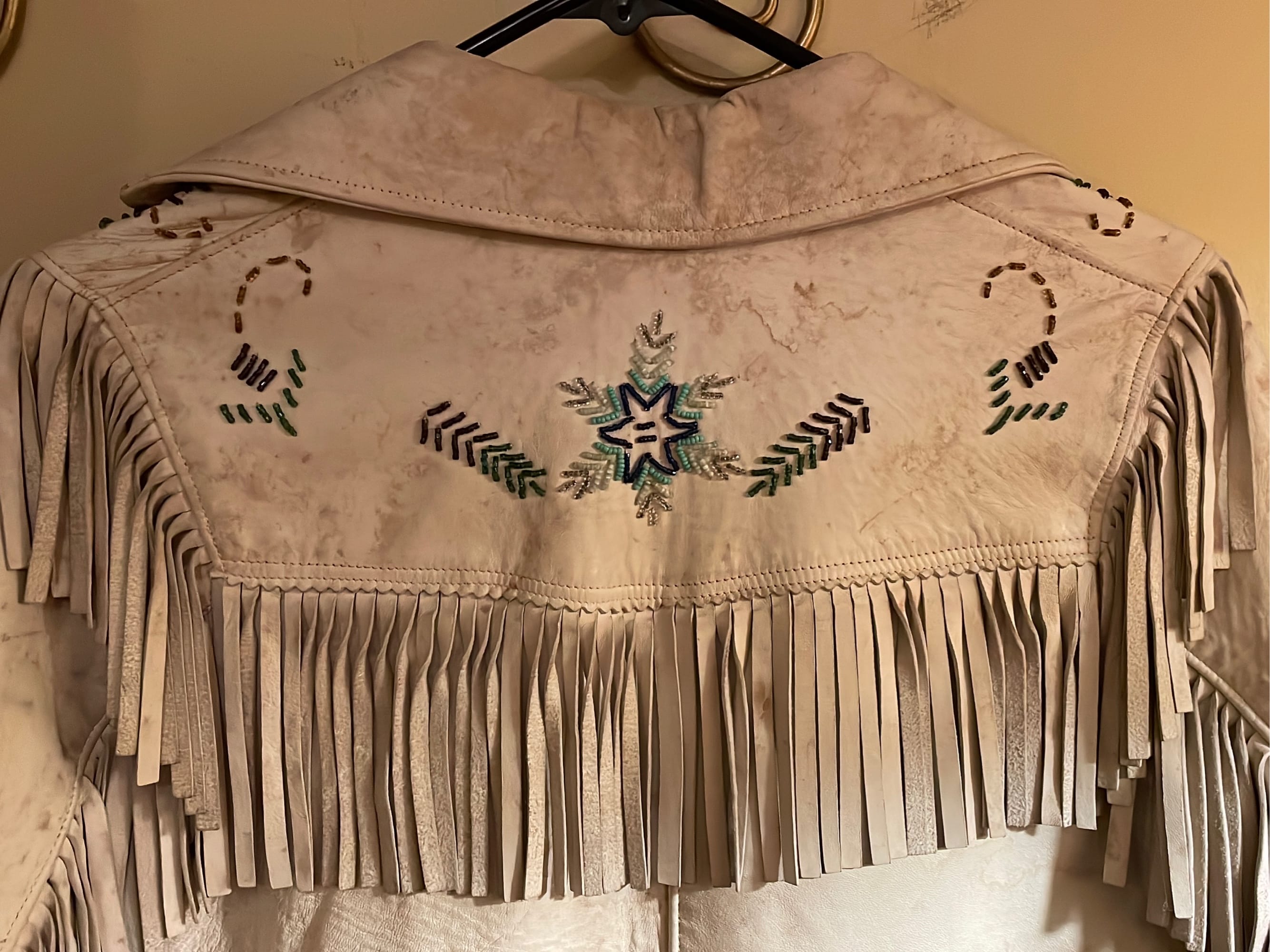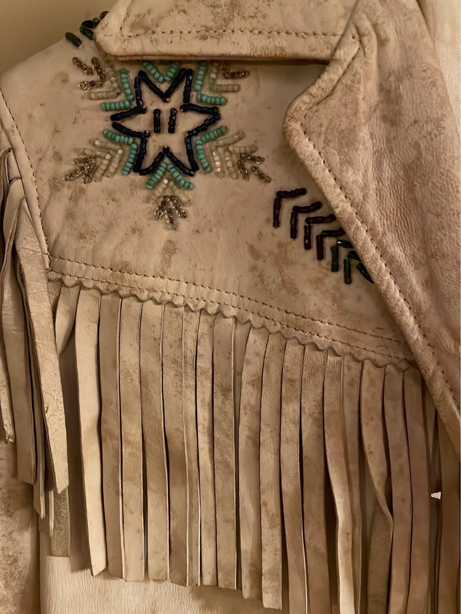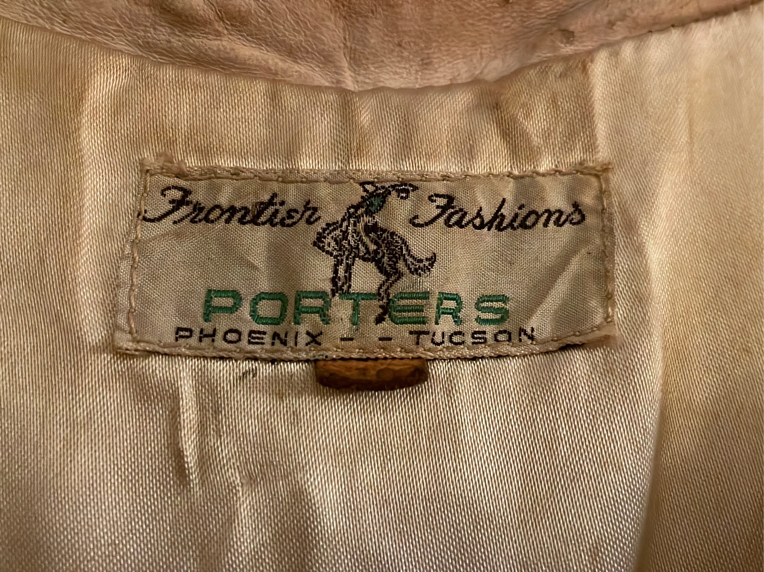 19 1960s Fringed and Beaded Leather Jacket (Adult Very Small) By Porter’s Frontier Fashions Of Phoenix/Tucson - (fragile condition, missing button, staining)