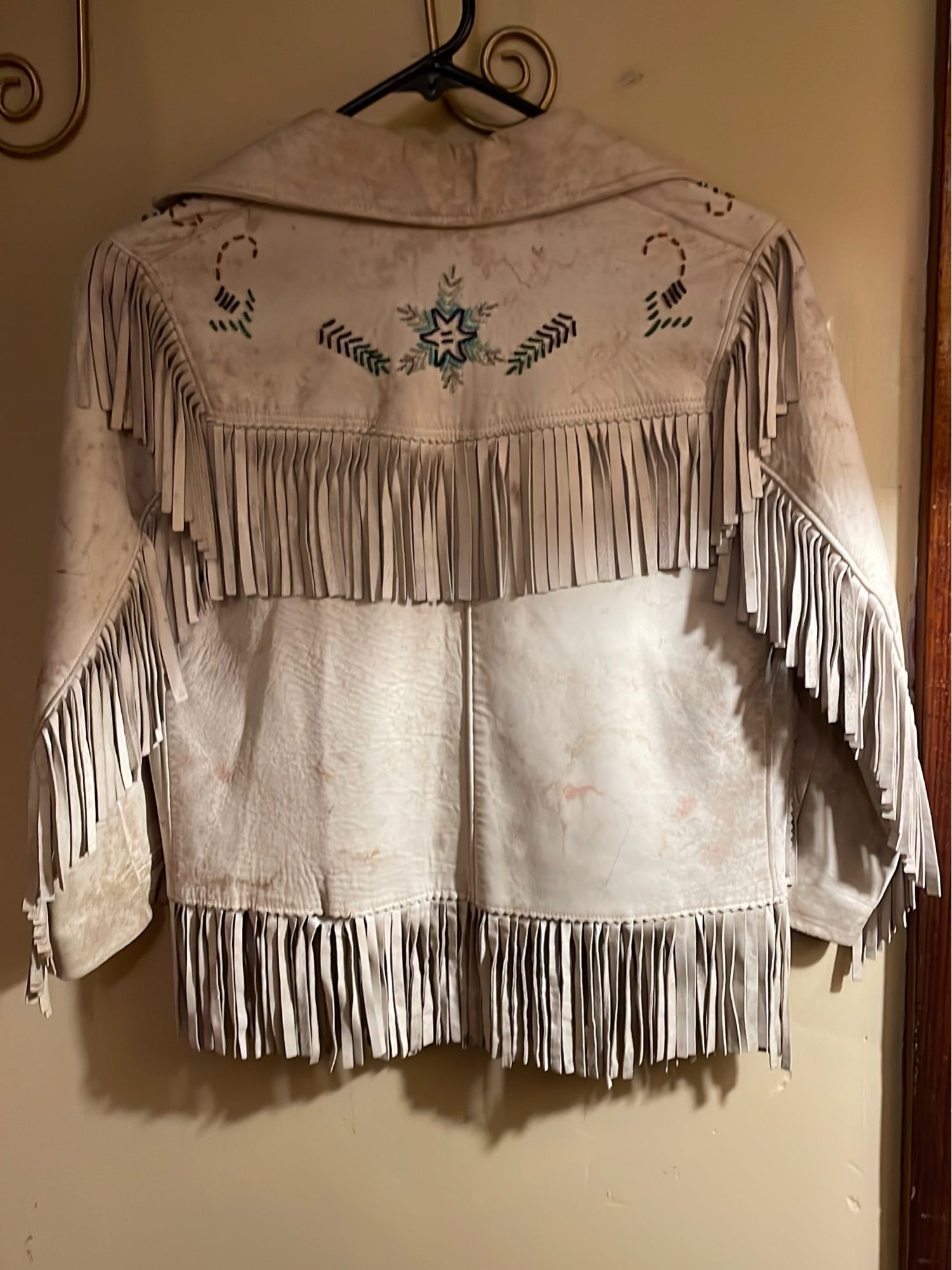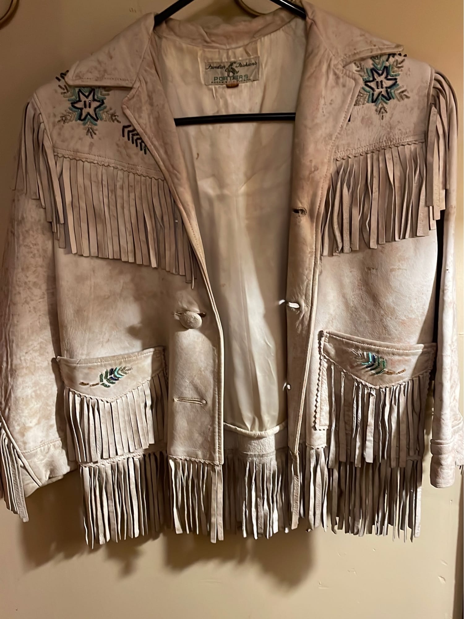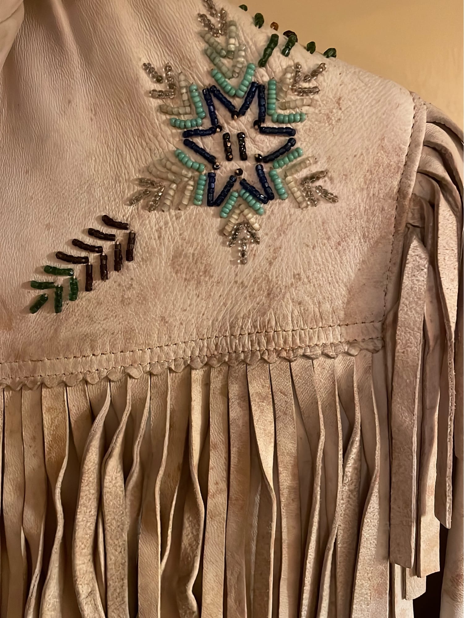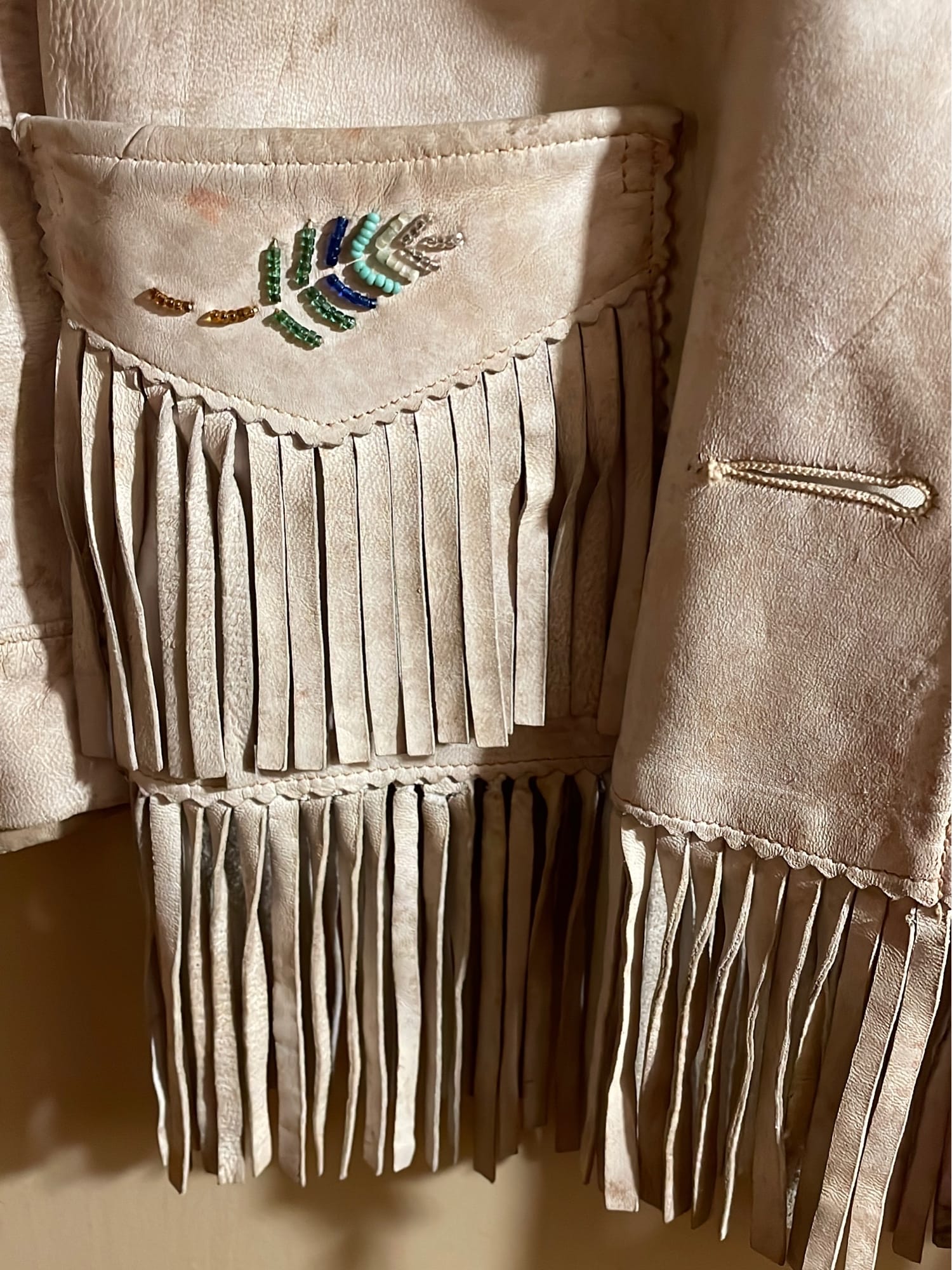 19 1960s Fringed and Beaded Leather Jacket (Adult Very Small) By Porter’s Frontier Fashions Of Phoenix/Tucson - (fragile condition, missing button, staining)