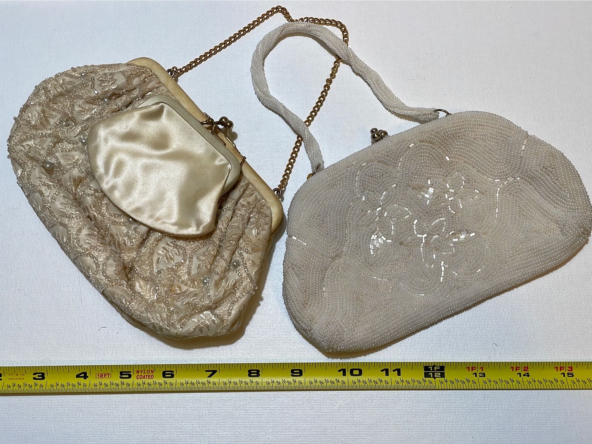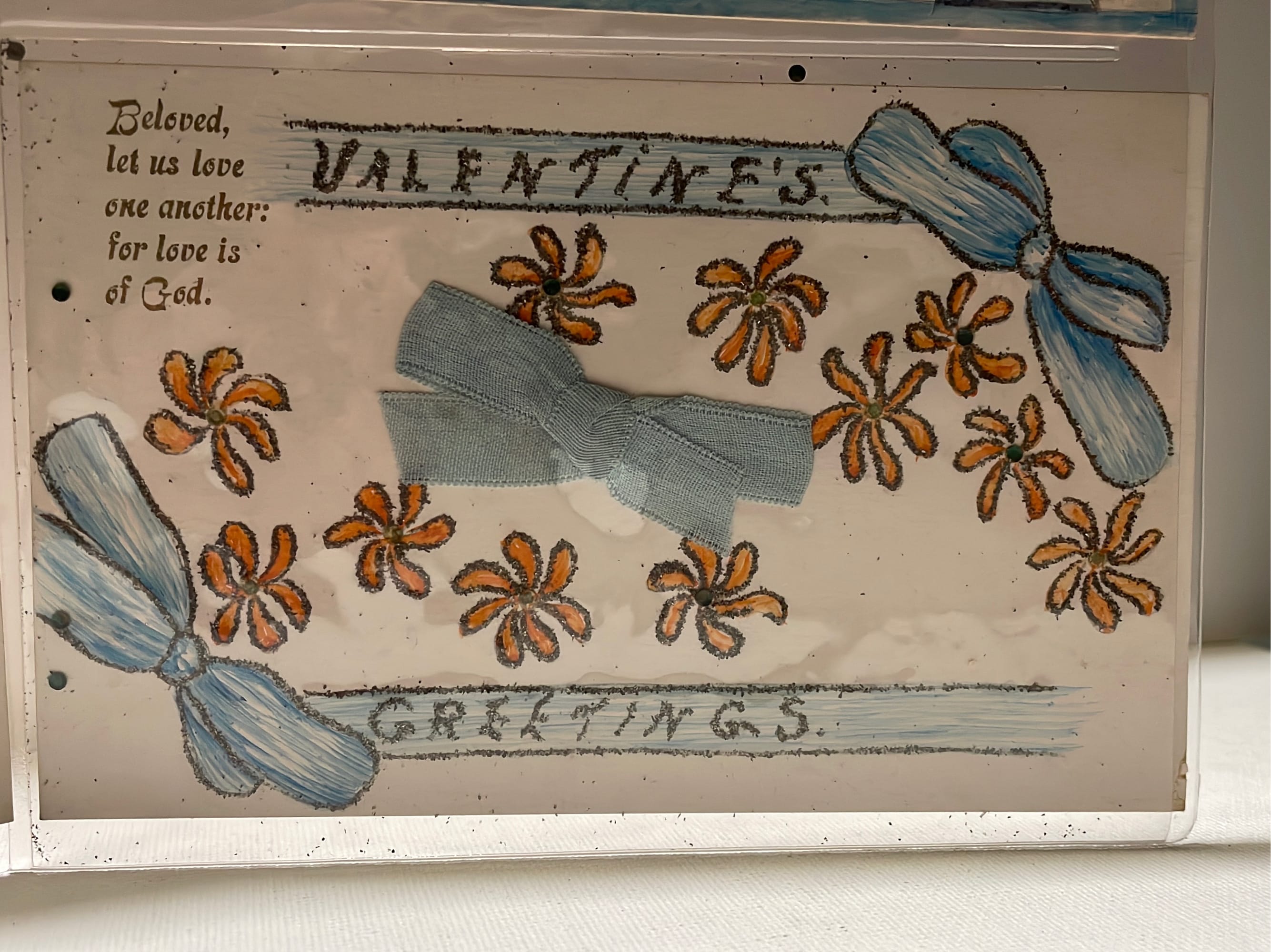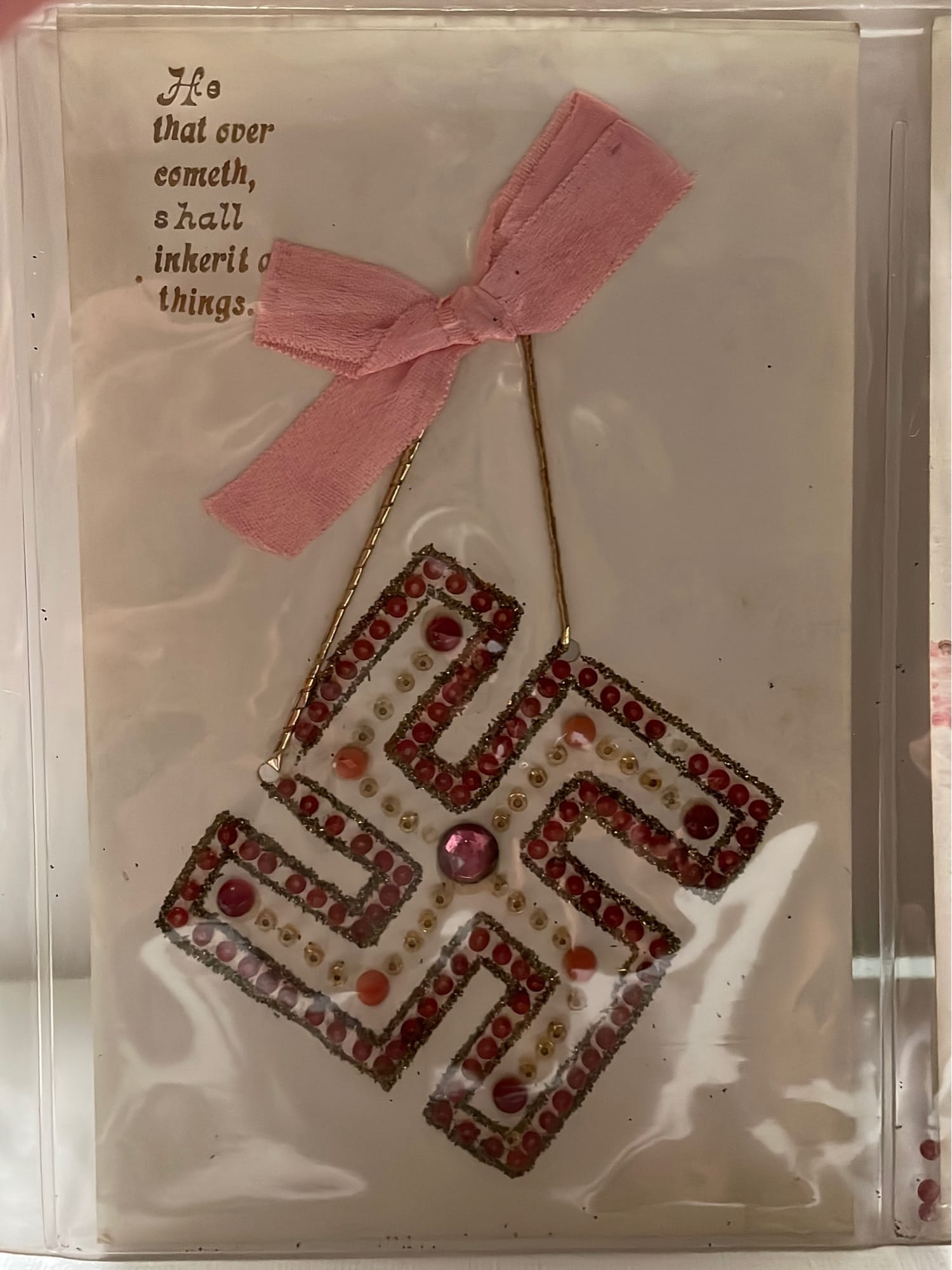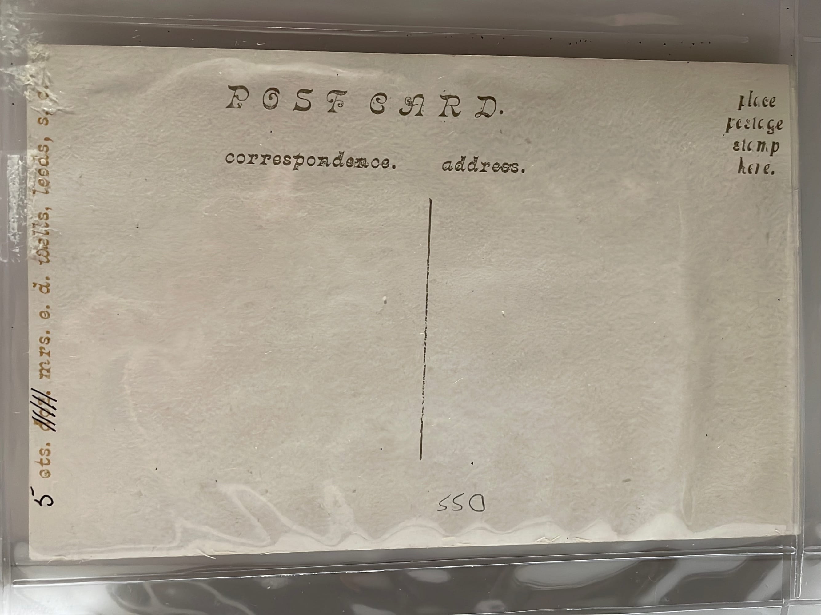 26 5 Vintage postcards: Seemingly handmade, 4 with the name of Mrs. E. D. Wells, Leads, S. C. (some beads losing adhesion and popping off)