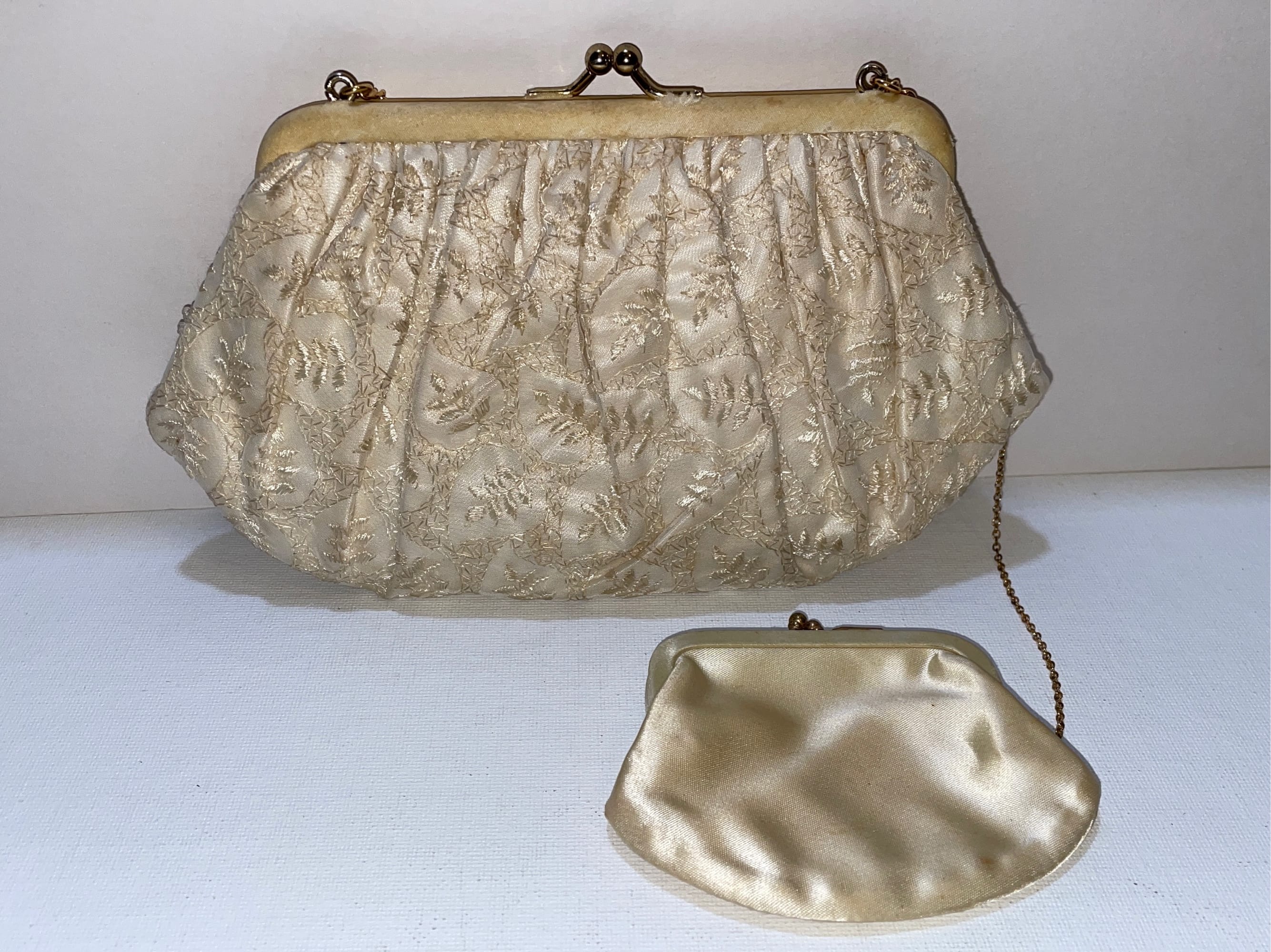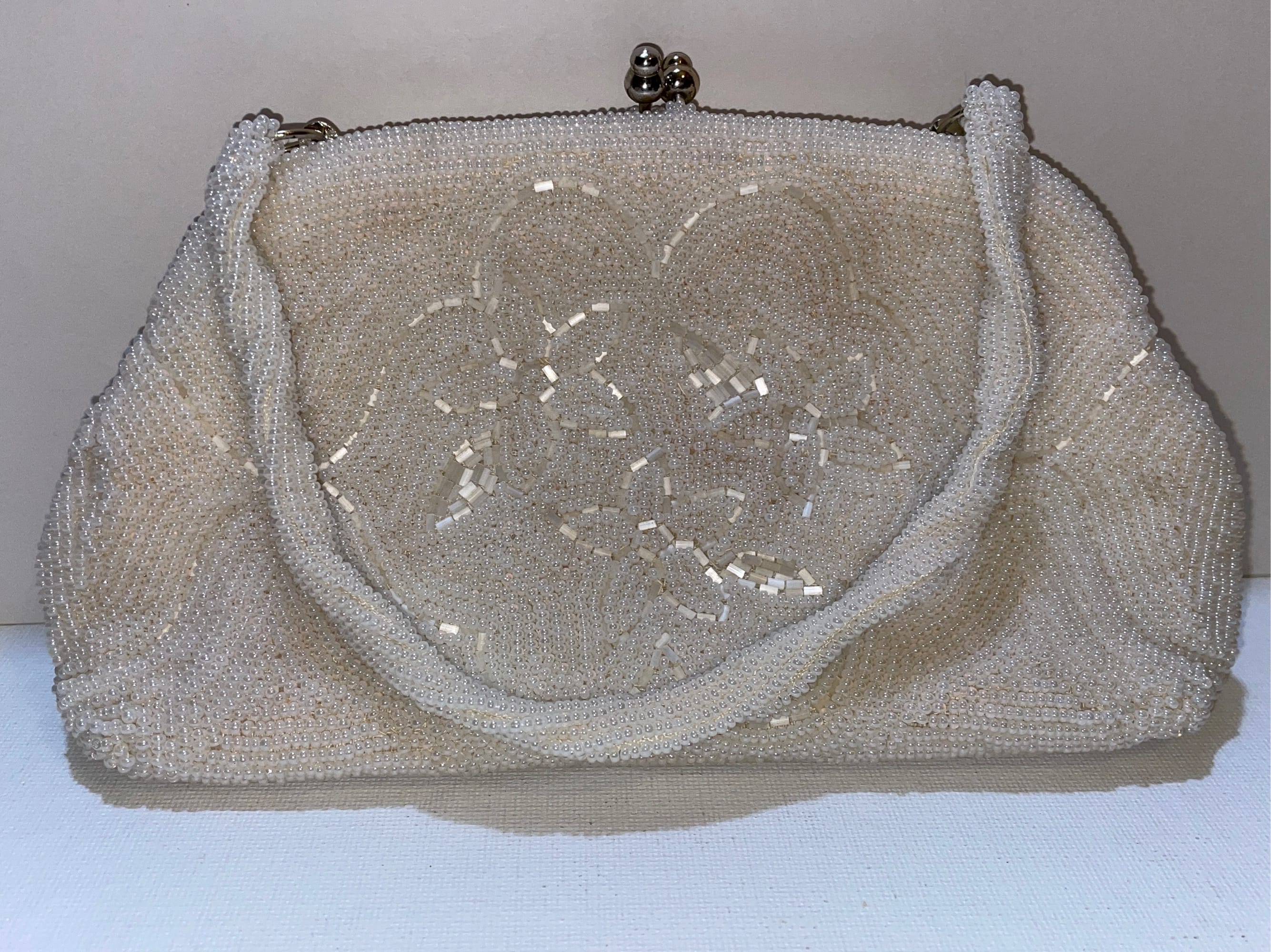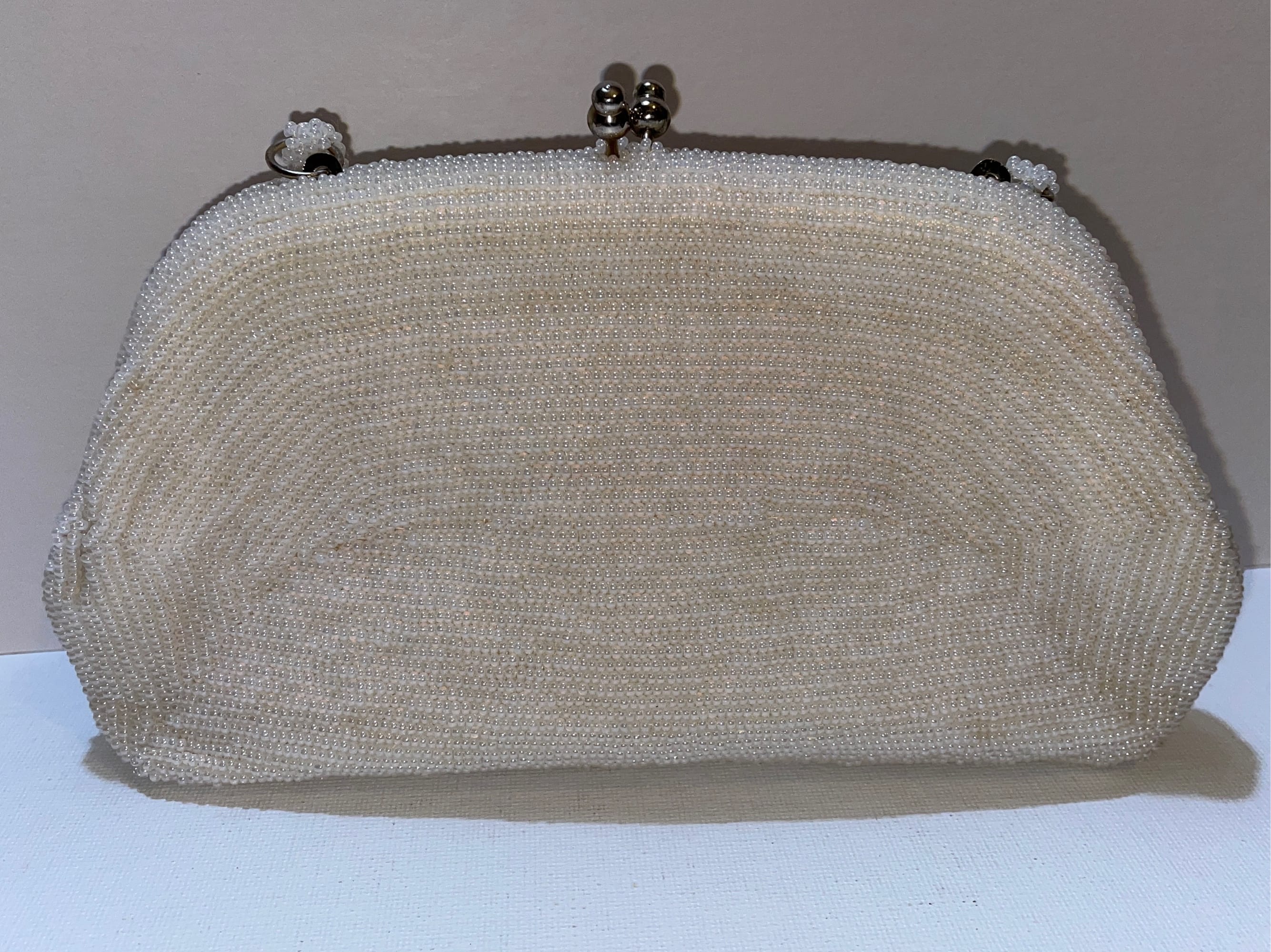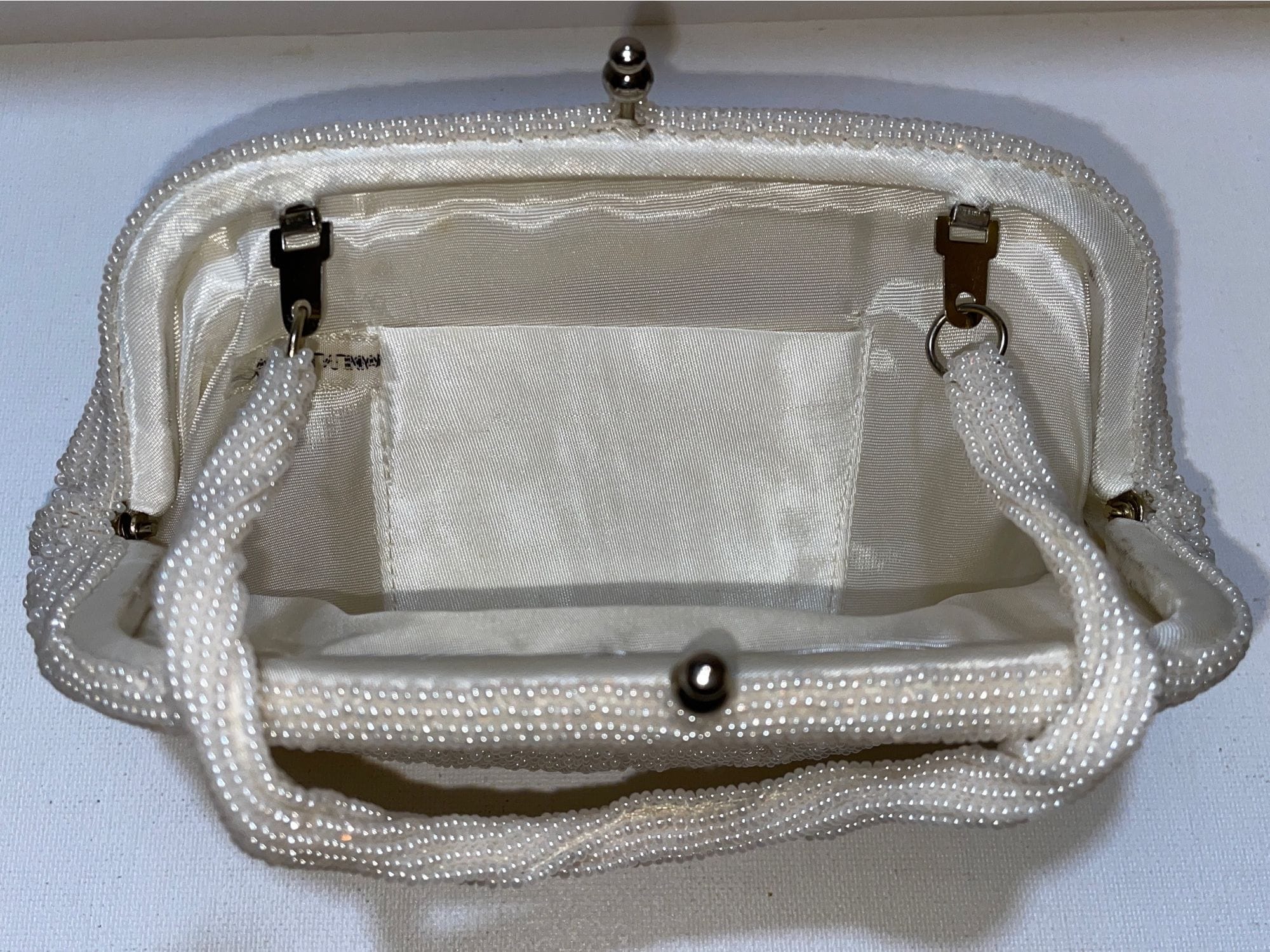 26 5 Vintage postcards: Seemingly handmade, 4 with the name of Mrs. E. D. Wells, Leads, S. C. (some beads losing adhesion and popping off)