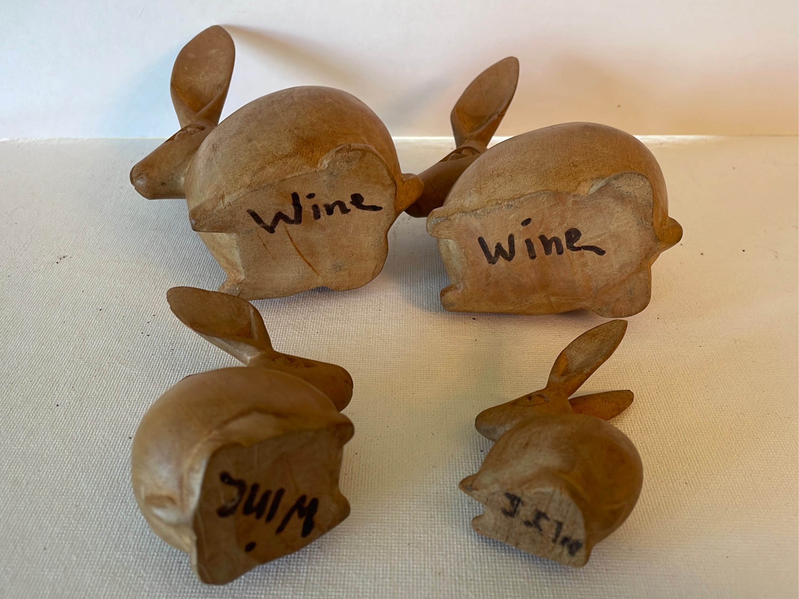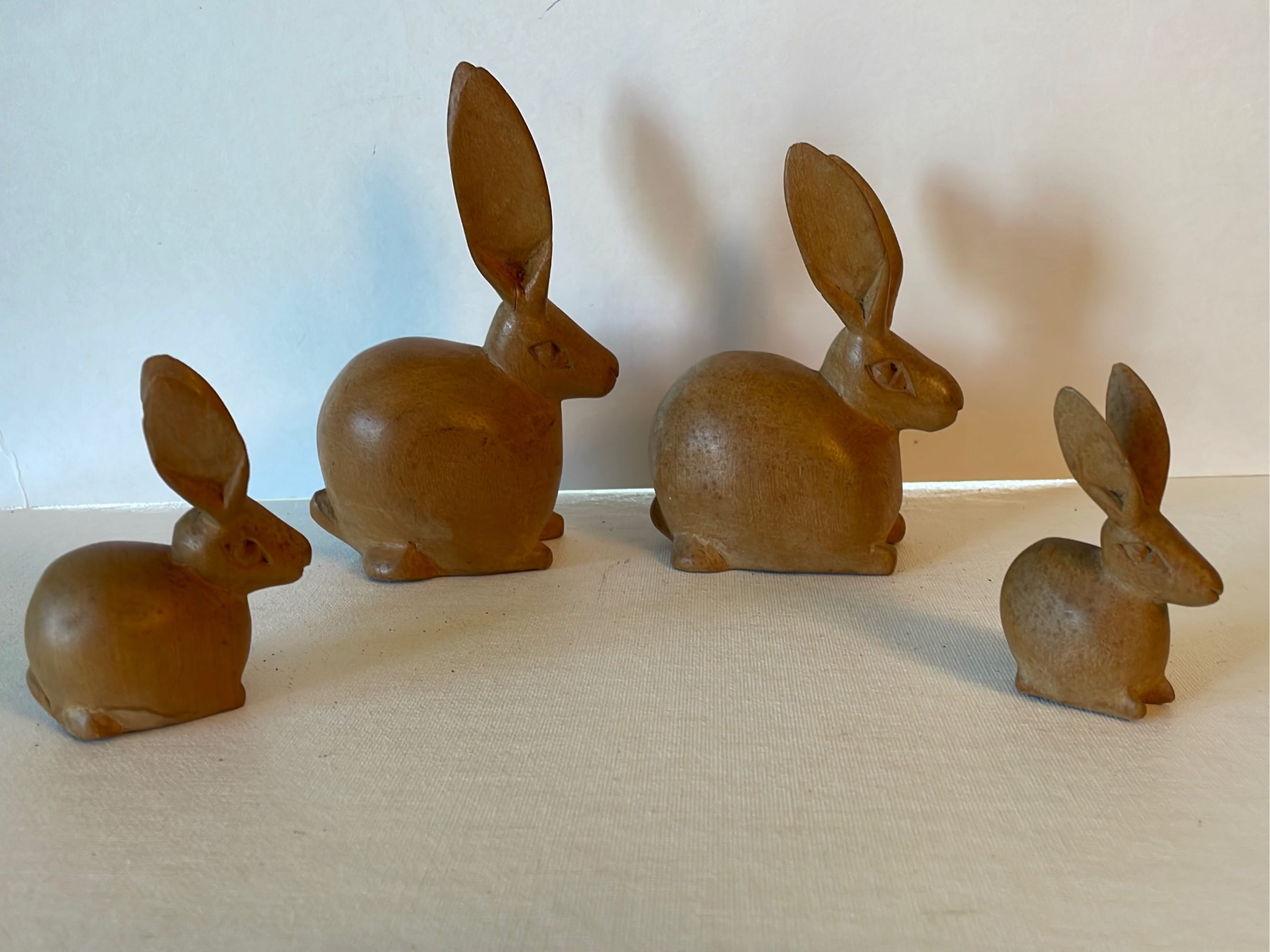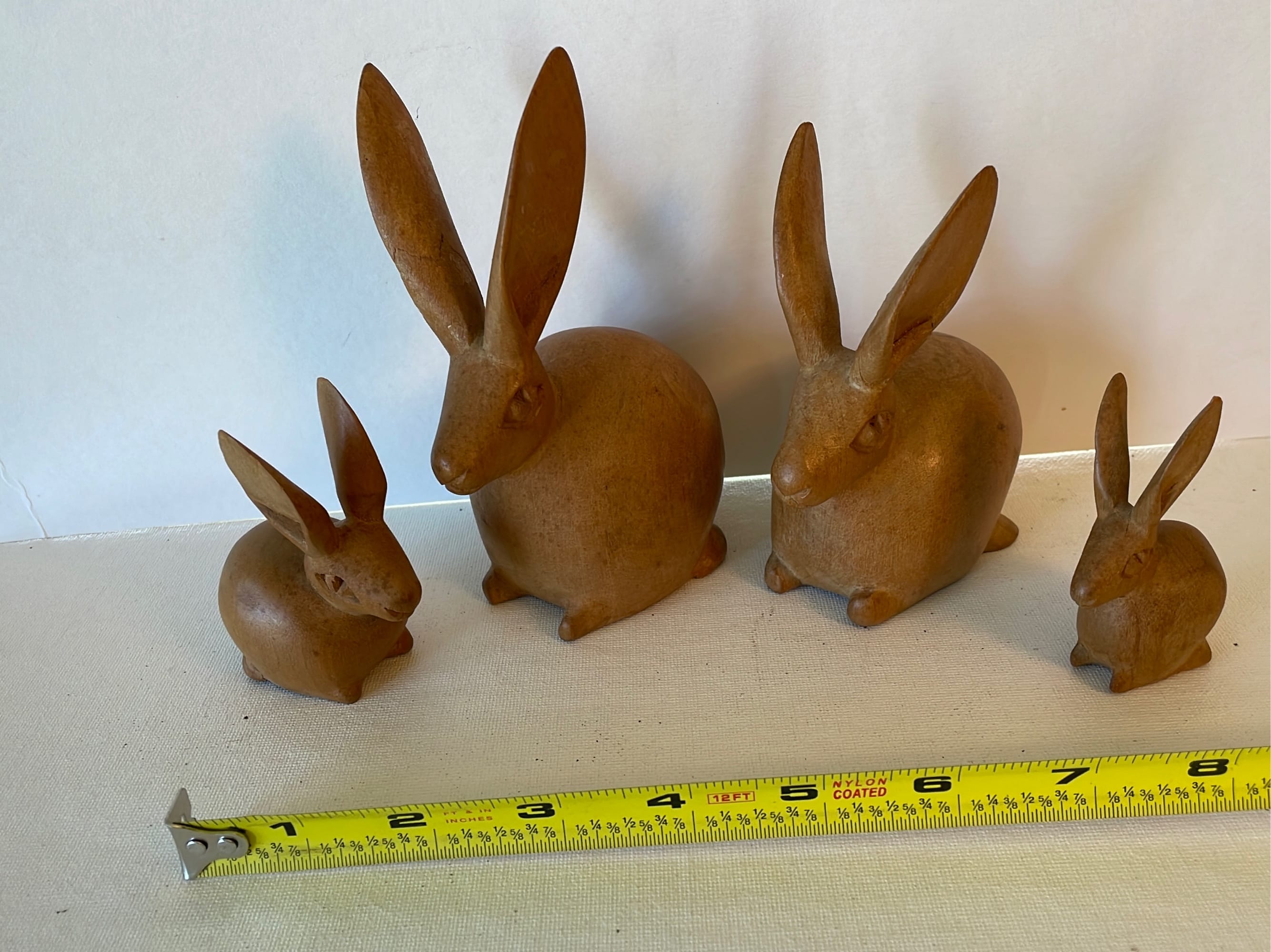 22 Handcrafted wooden rabbit family (probably circa 1950)