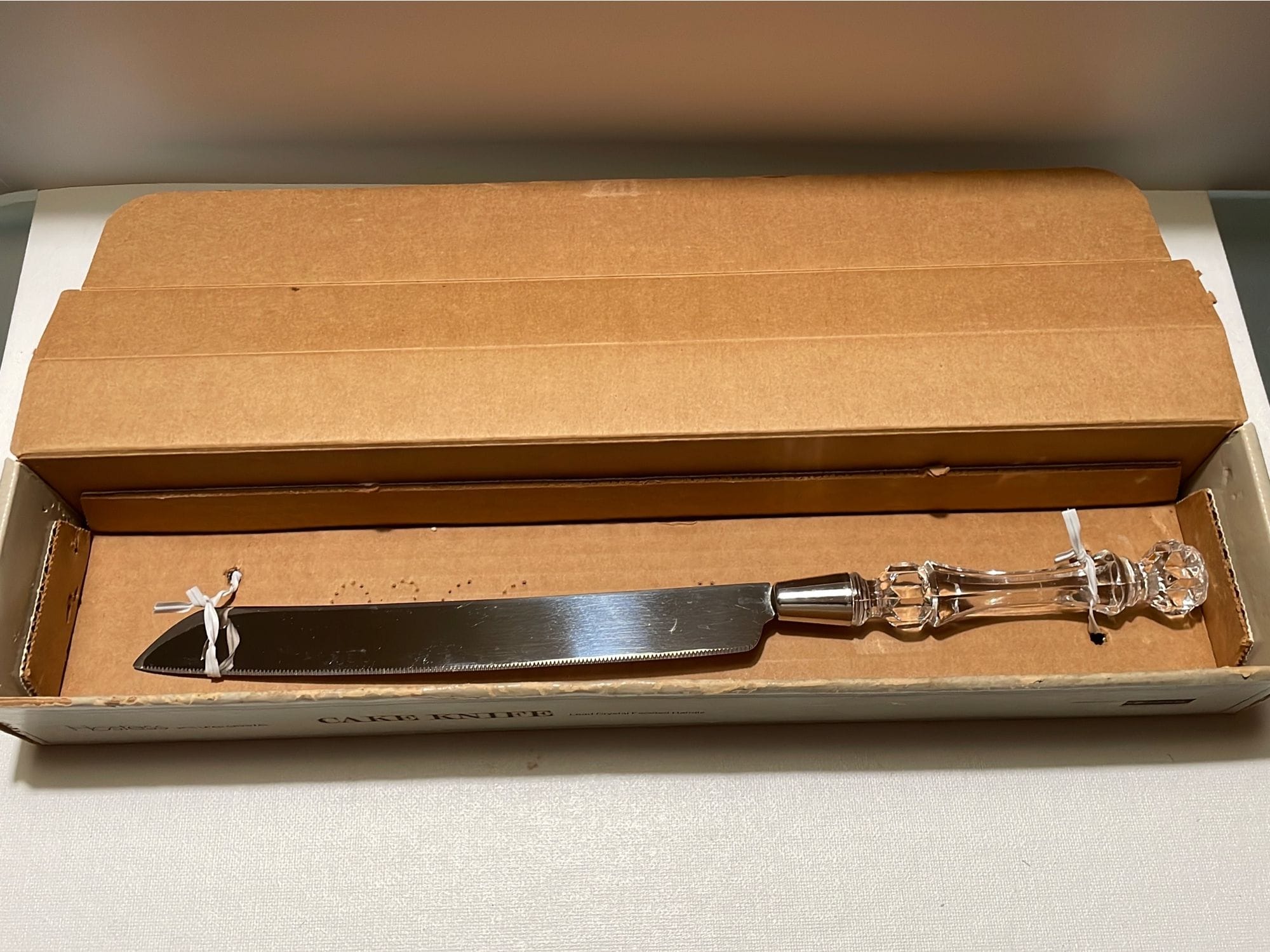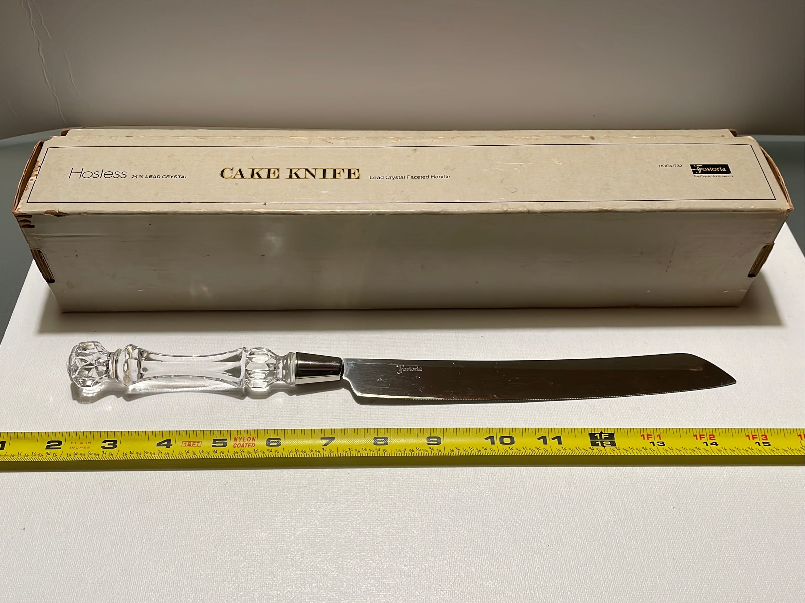 24 Fostoria cake knife with 24% lead crystal faceted handle