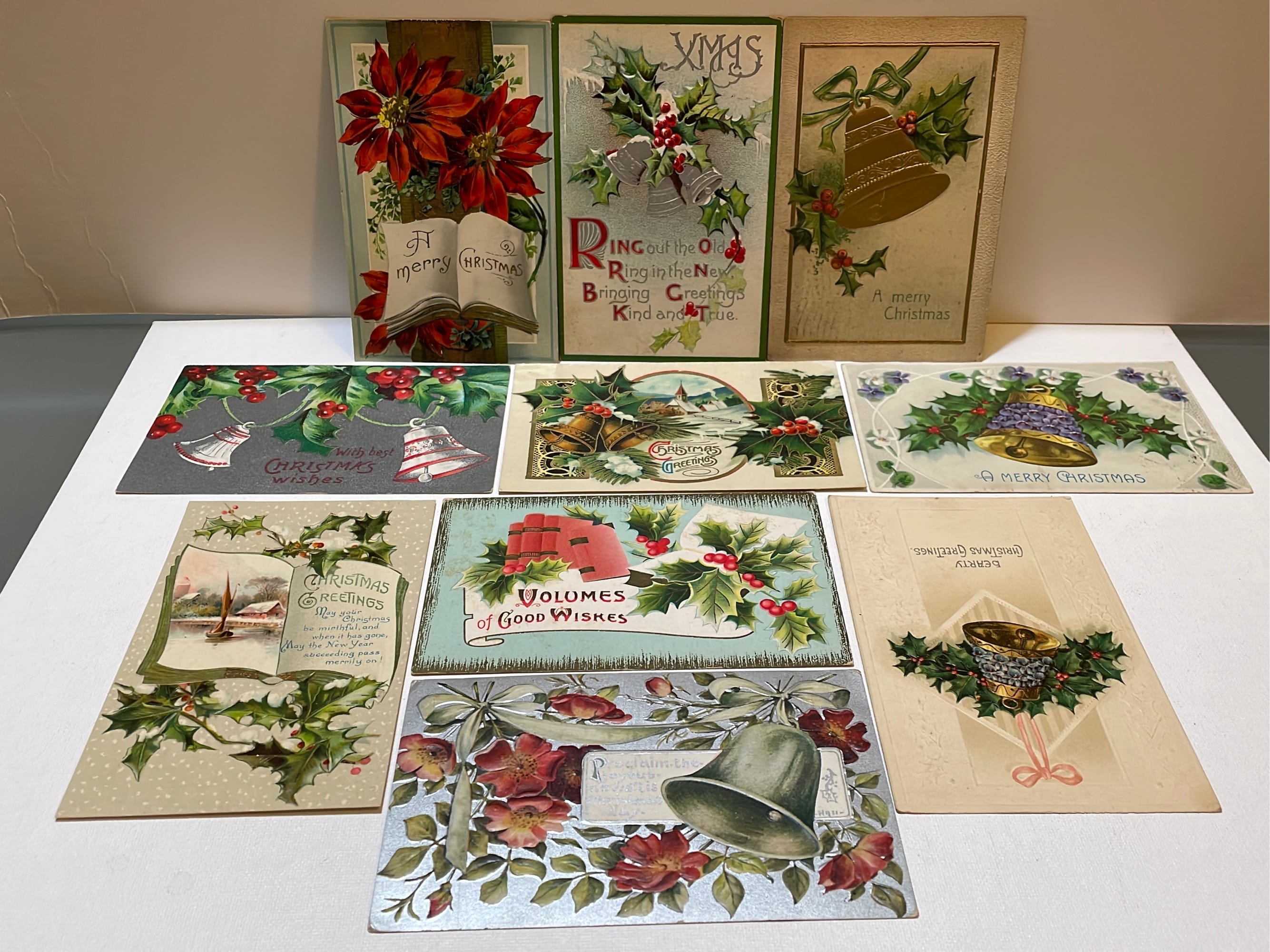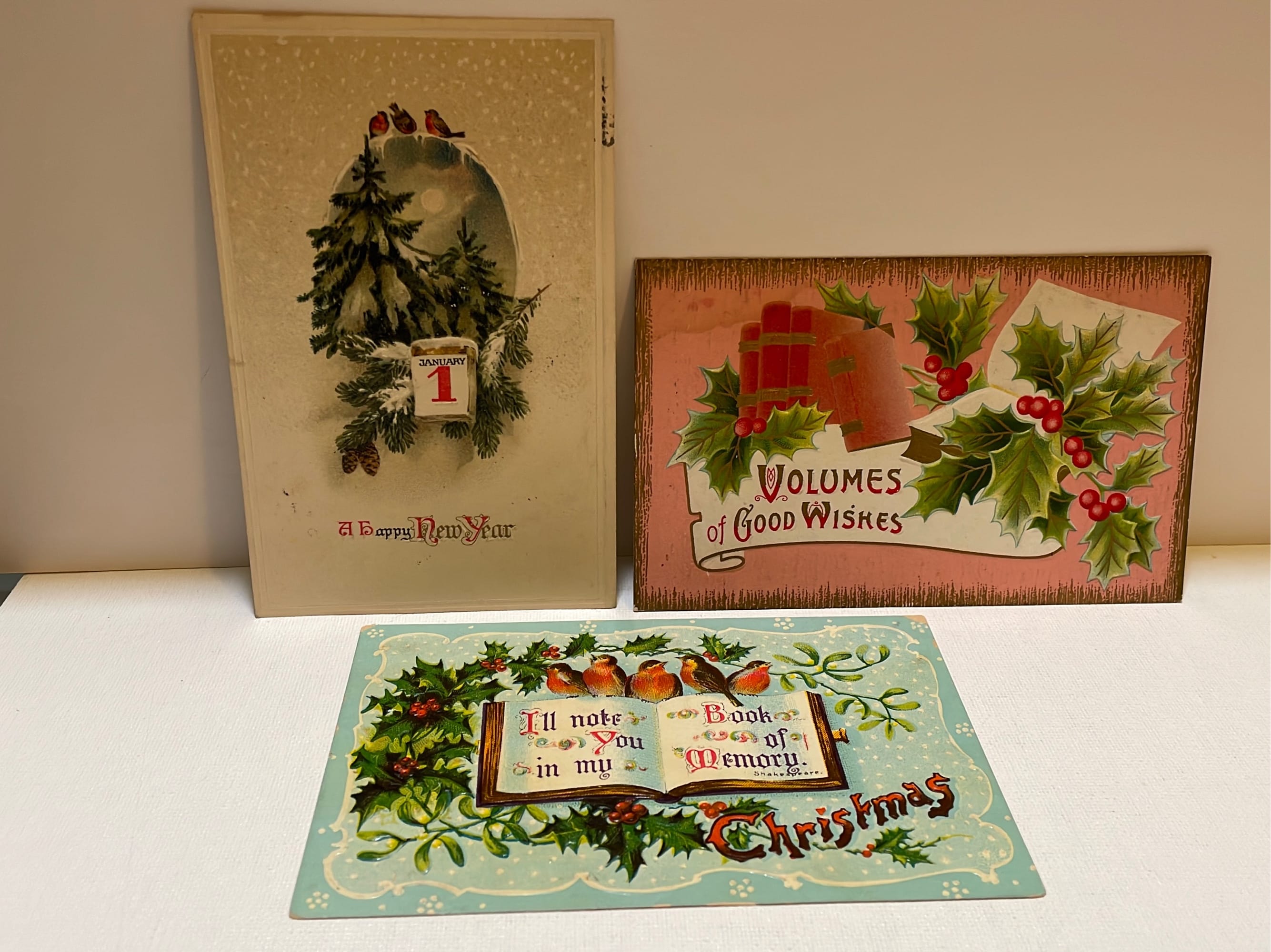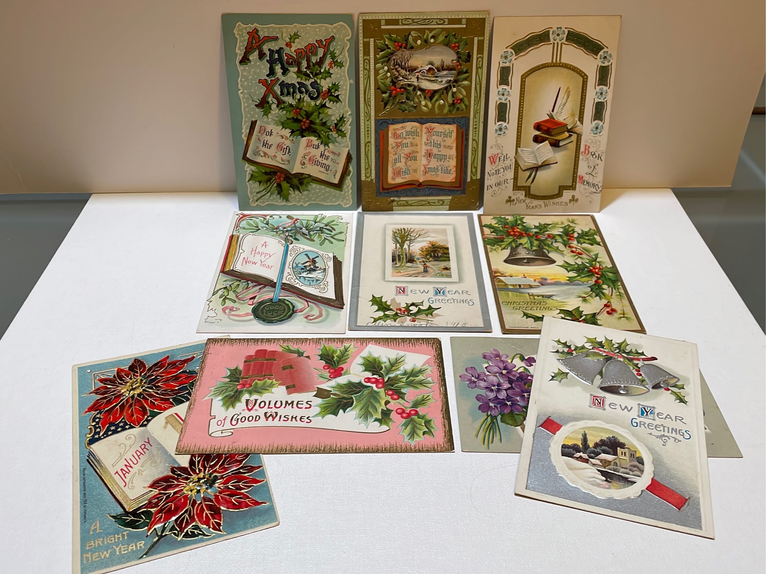 29 10 Vintage Christmas cards with messages including years: 1908, 1909, 1910, 1914,