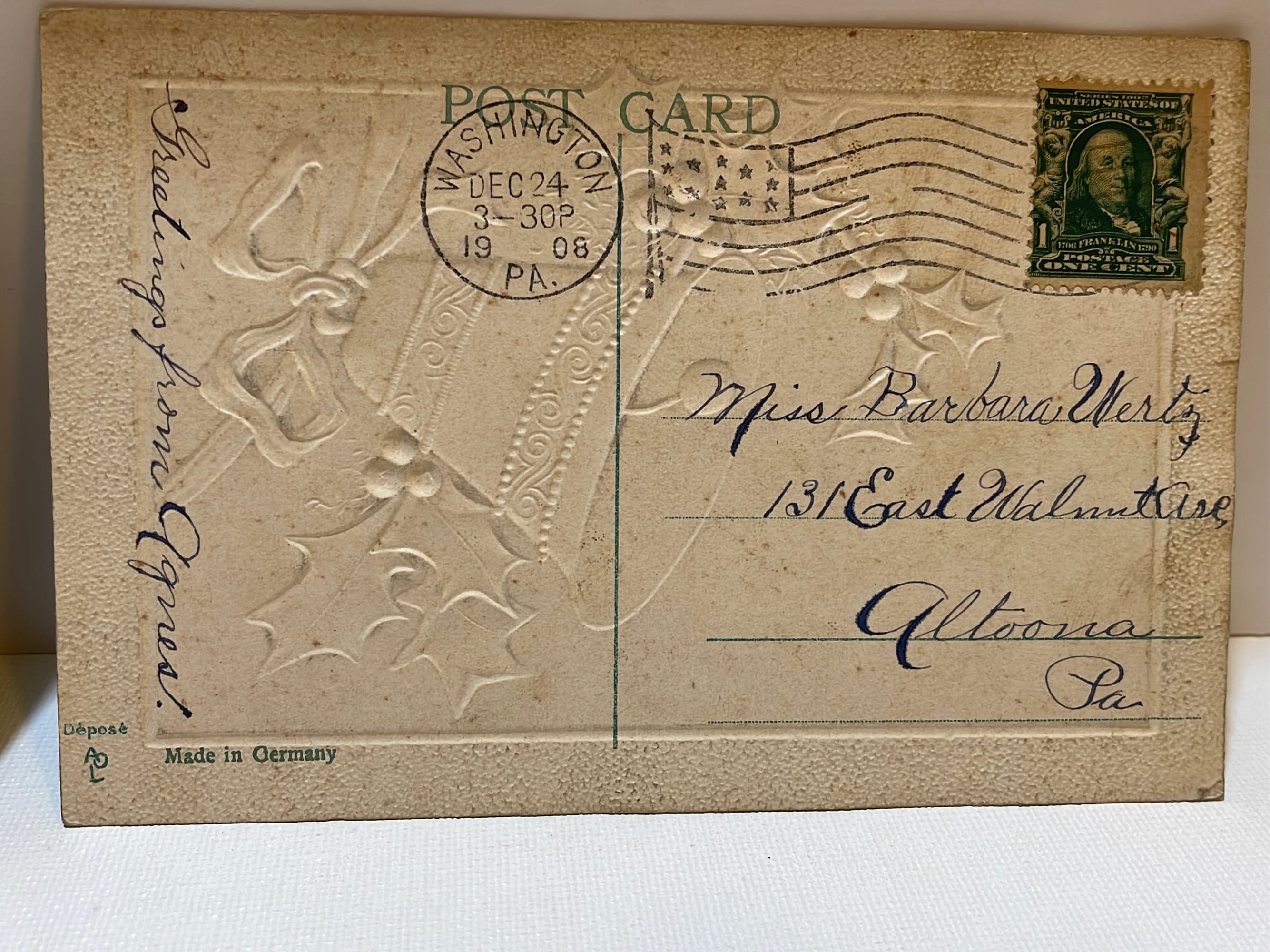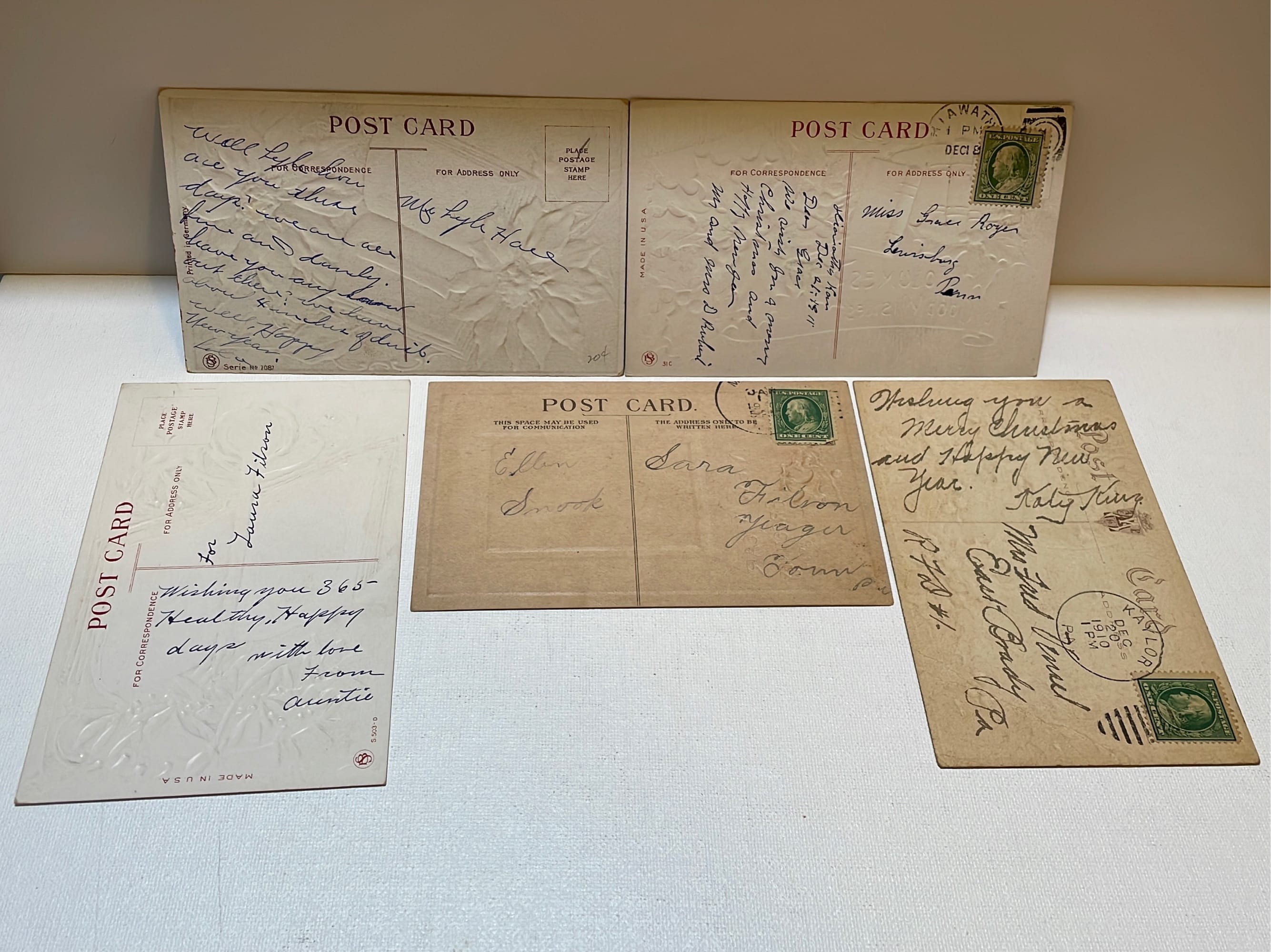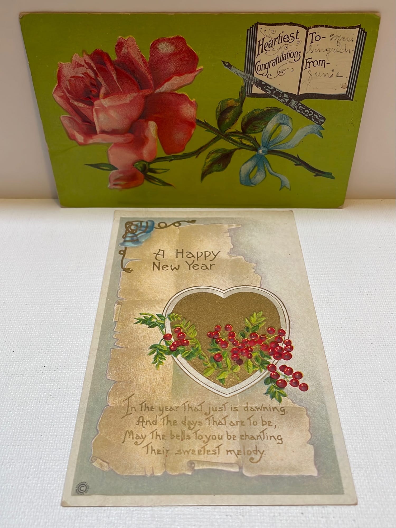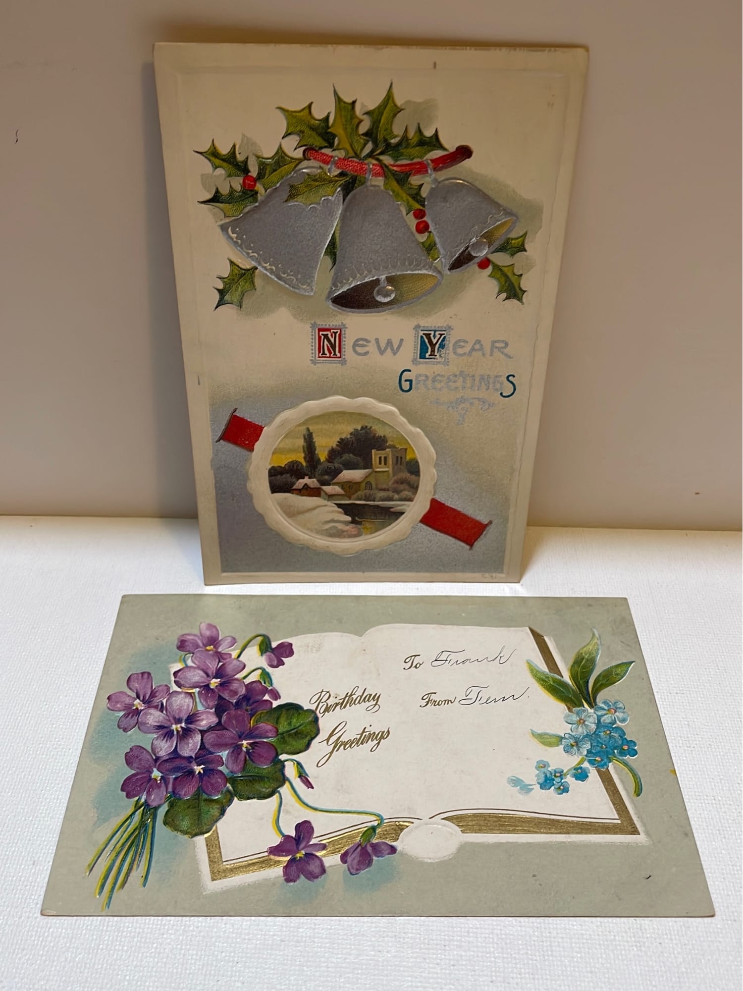 29 10 Vintage Christmas cards with messages including years: 1908, 1909, 1910, 1914,