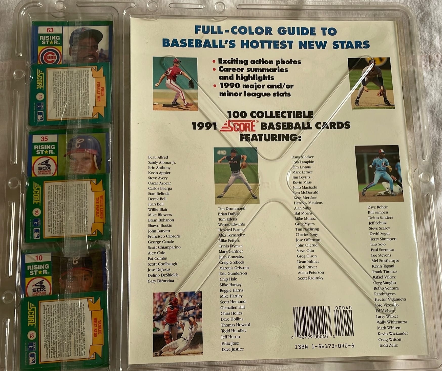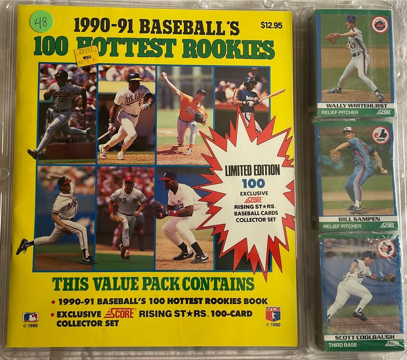 48 New in Box Factory Sealed MLB Limited Edition Value Pack containing 1990-91 Baseball’s 100 Hottest Rookies Book and Exclusive SCORE Rising Stars 109-Card Collector Set - Rookies include Sampen, Coolbaugh, Ventura, DiSarcina