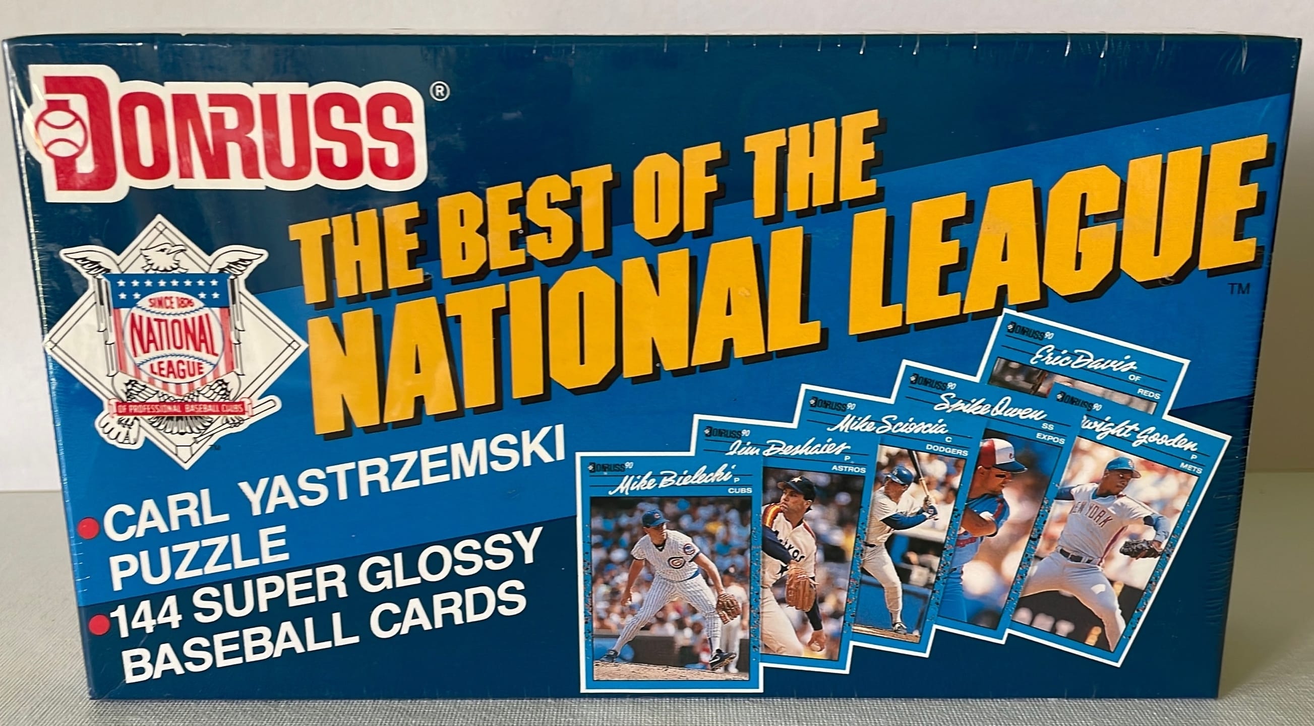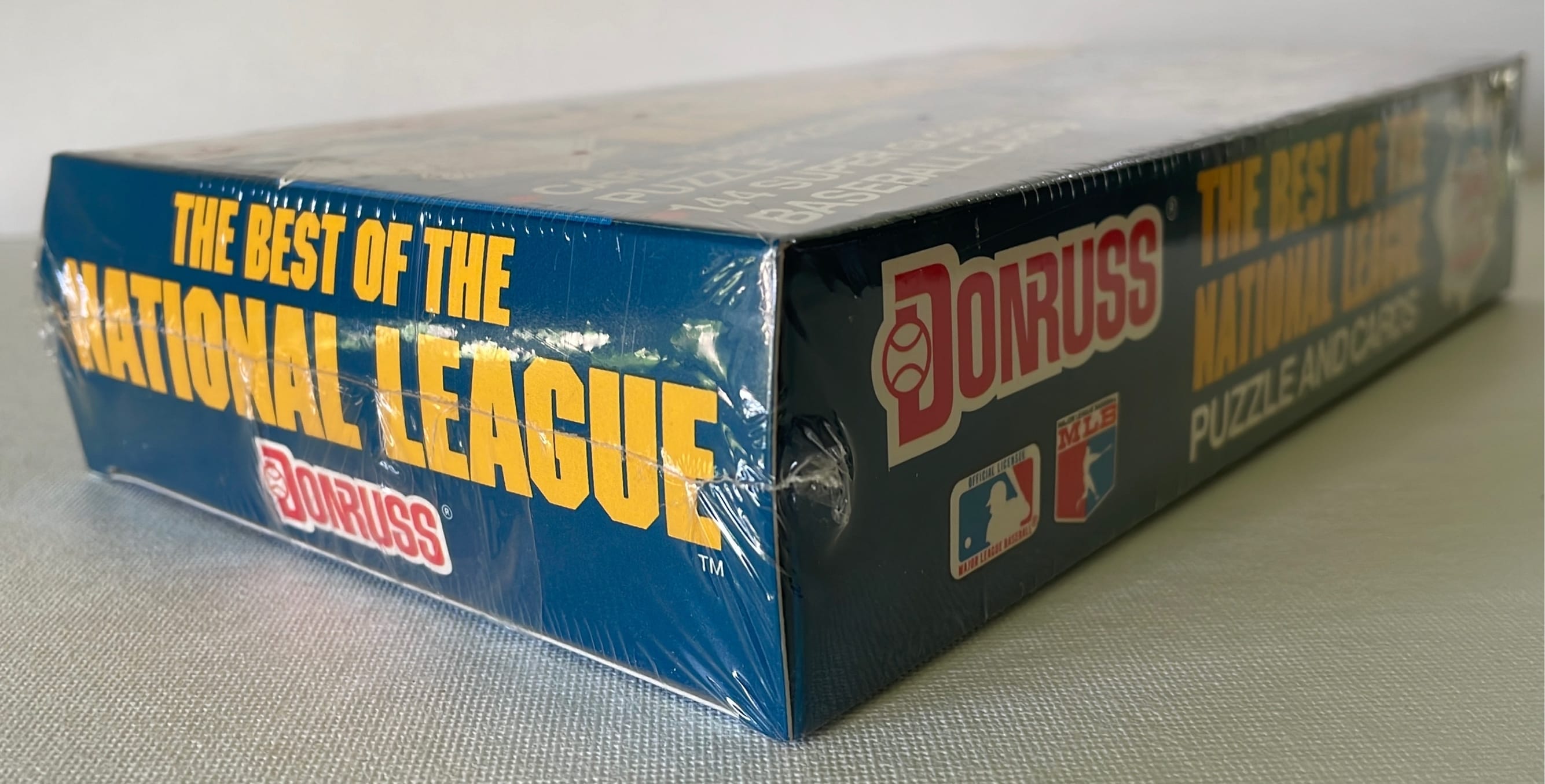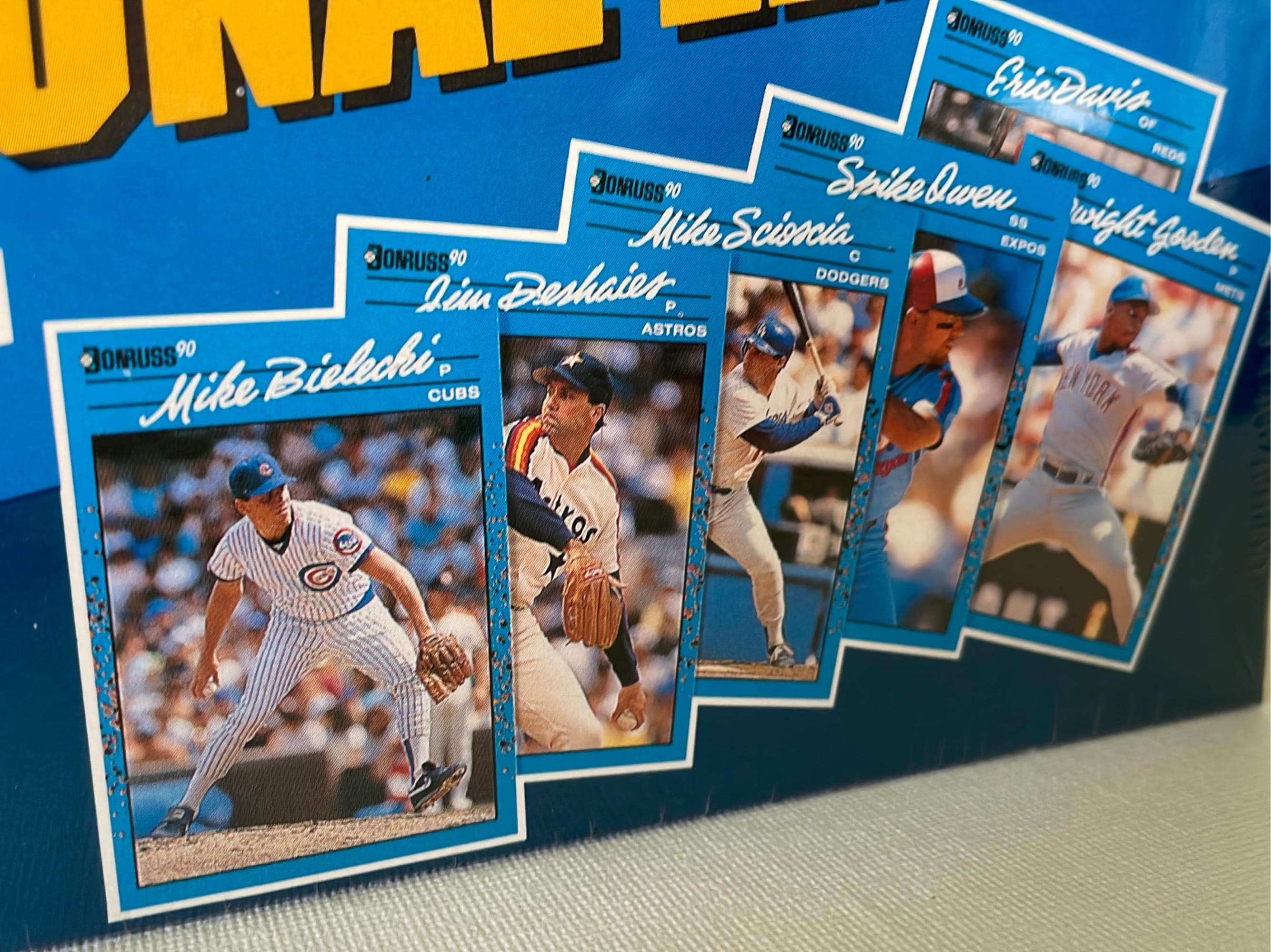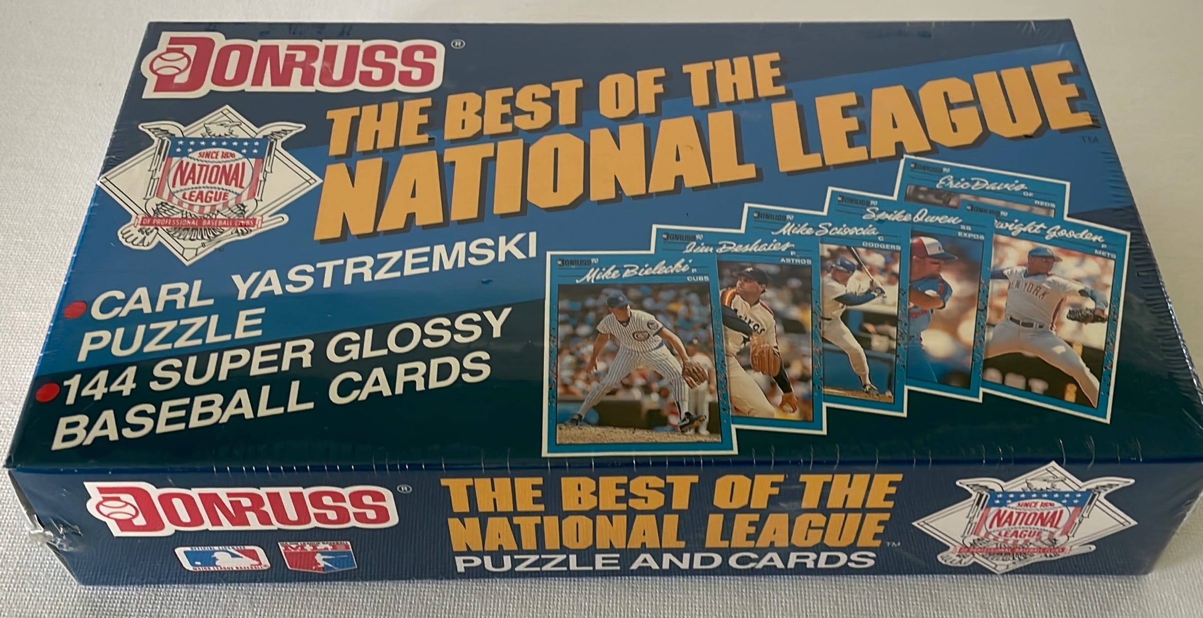 53 New in Box Factory Sealed 1990 DONRUSS The Best of the National League - 144 Super glossy Baseball Cards and Carl Yastrzemski Puzzle, including players like Mike Bielecki, Spike Owen, and Dwight Gooden