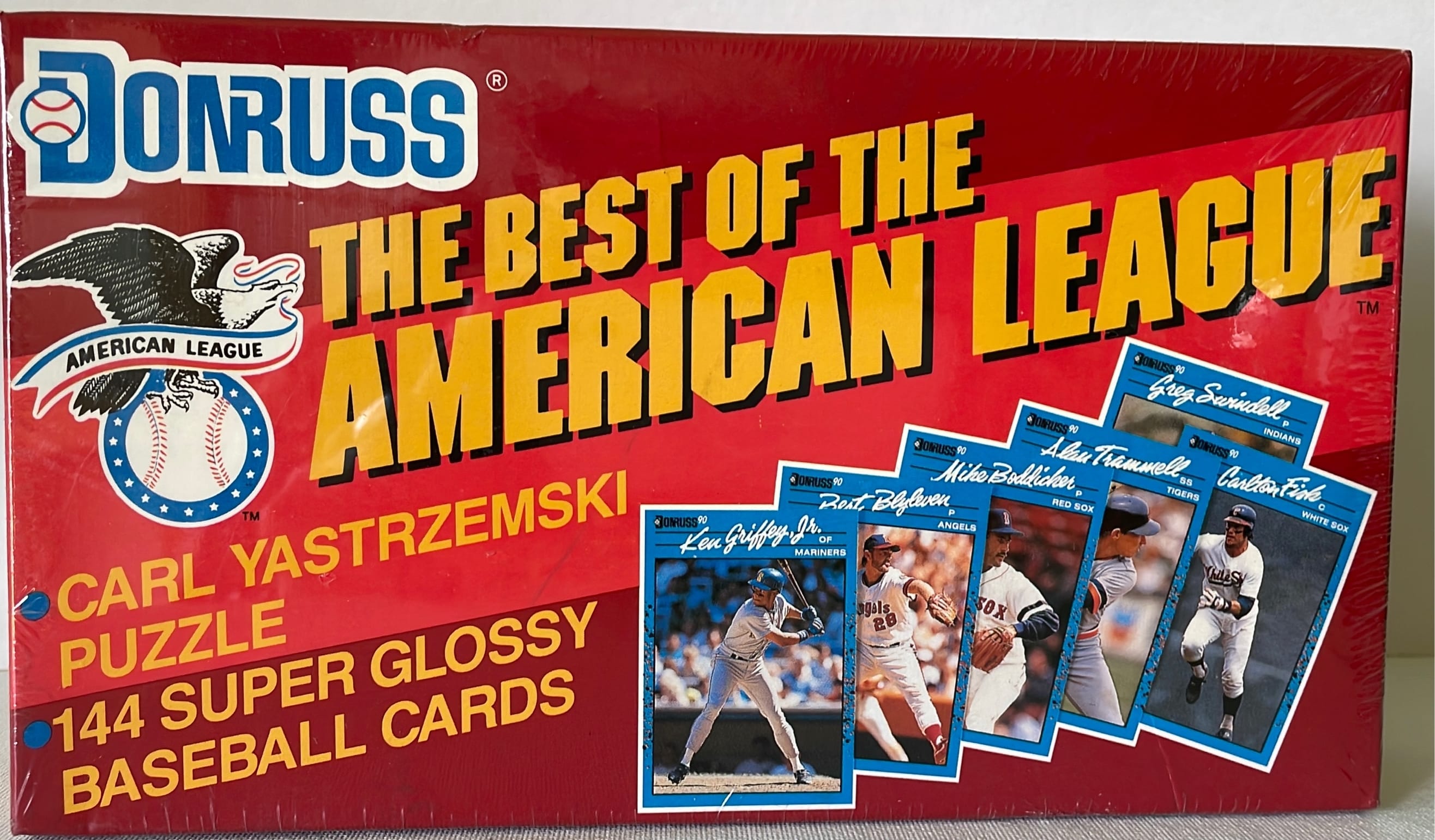 54 New in Box Factory Sealed 1990 DONRUSS The Best of the American League - 144 Super Glossy Baseball Cards and Carl Yastrzemski Puzzle - Players include Ken Griffey, Jr., Alan Trammell, and Greg Swindell