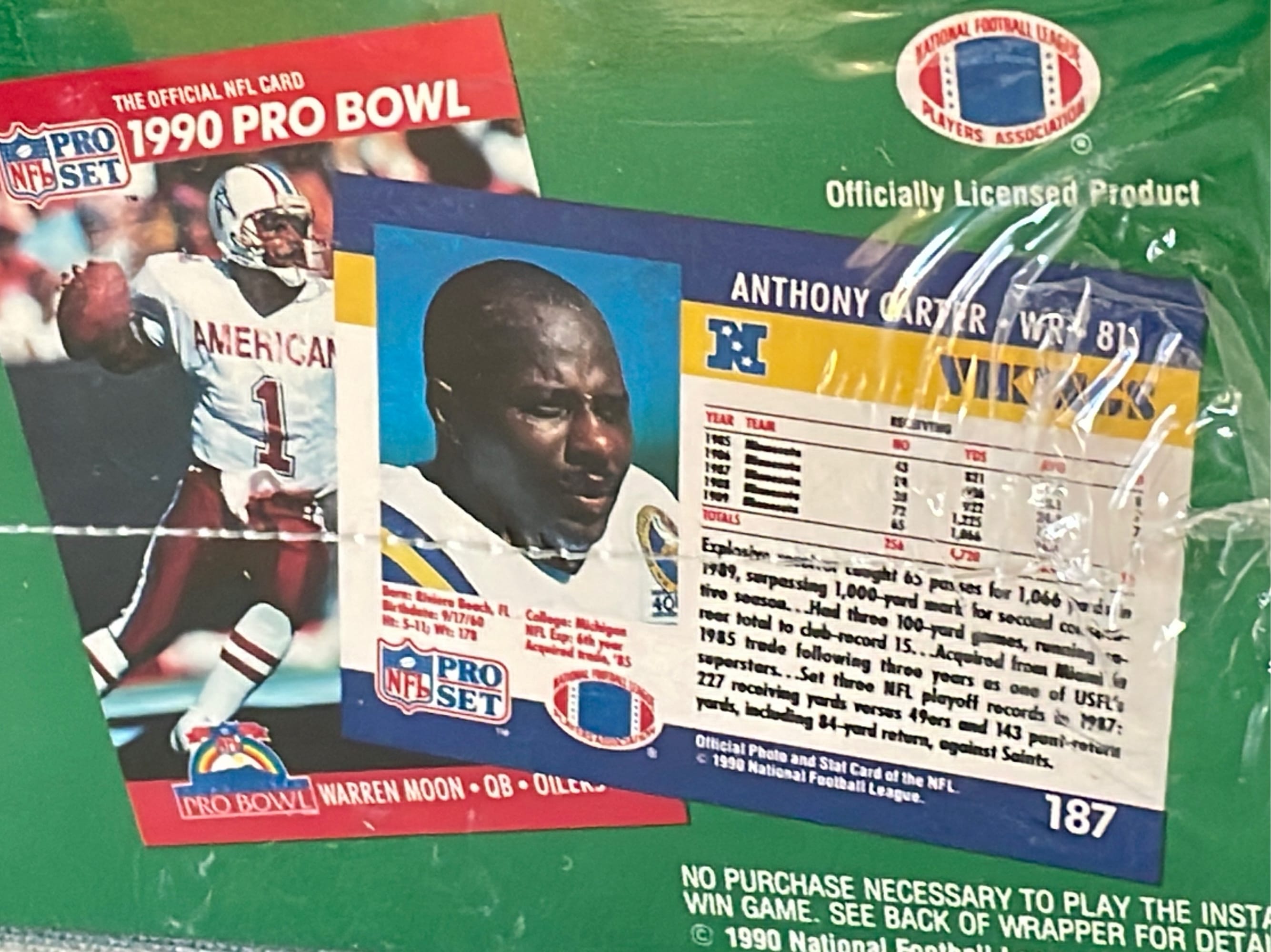 62 New in Box Factory Sealed 1990 Official NFL Pro Set With 14 Photo and Stat Cards, 1 NFL Collectible, 1 NFL Pro Set Playbook, Including Anthony Carter