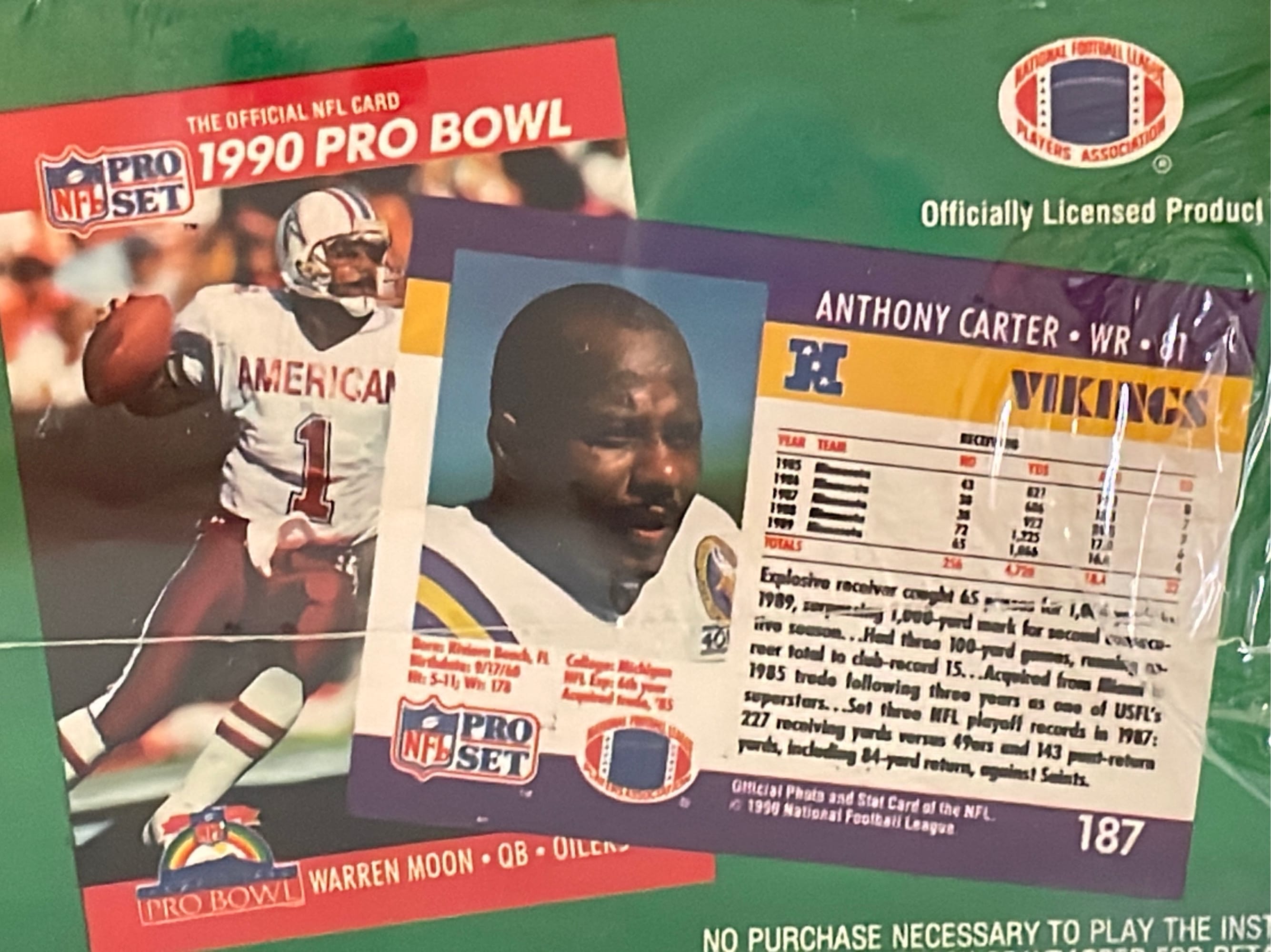 61 New in Box Factory Sealed 1990 Official NFL Pro Set With 14 Photo and Stat Cards, 1 NFL Collectible, 1 NFL Pro Set Playbook, Including Anthony Carter
