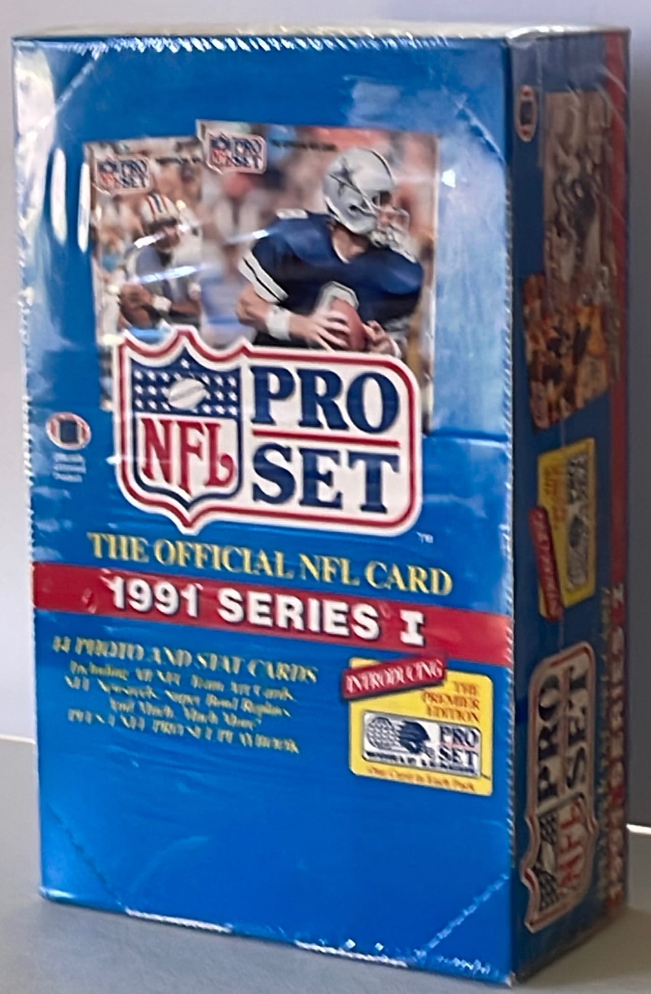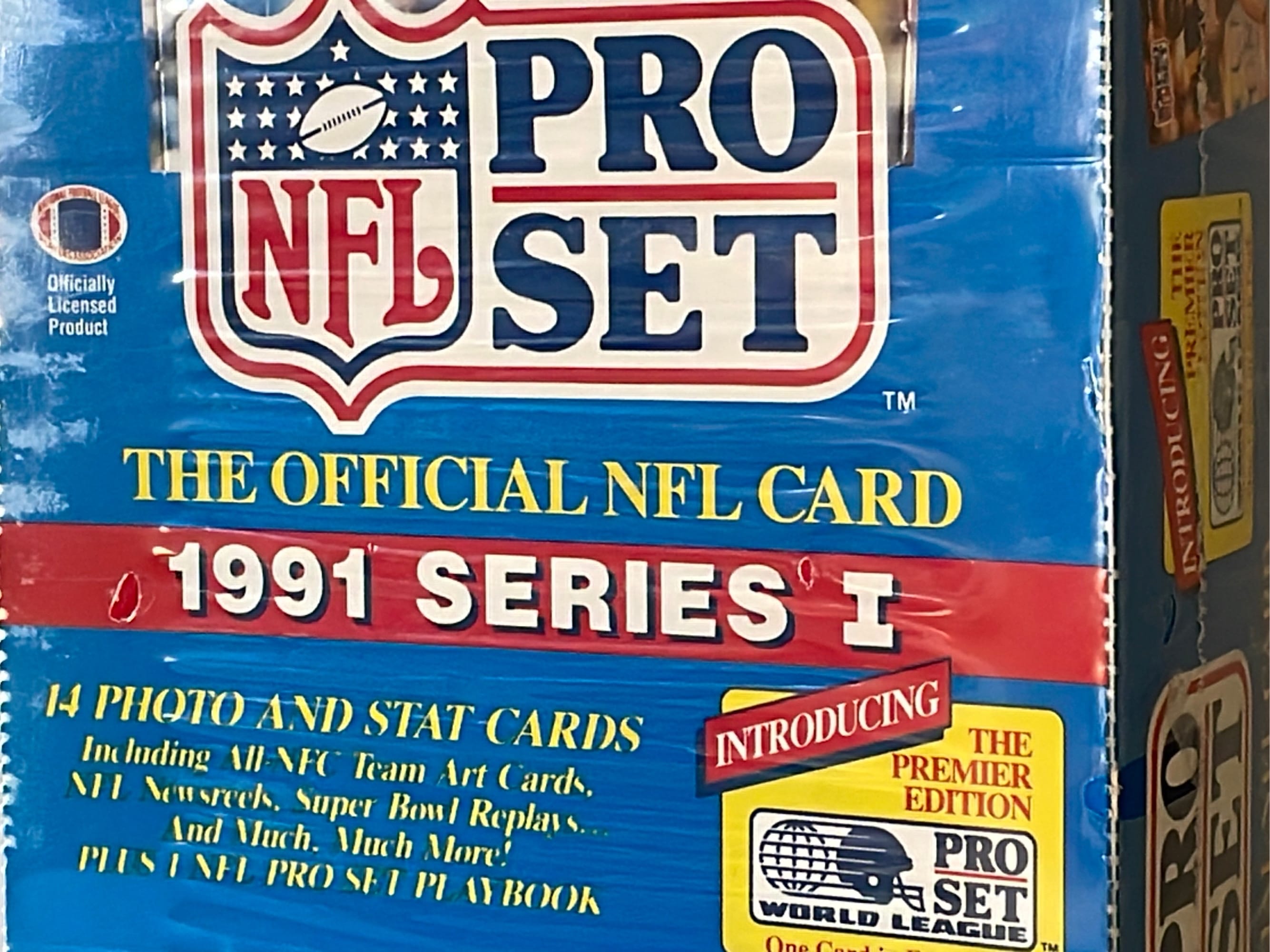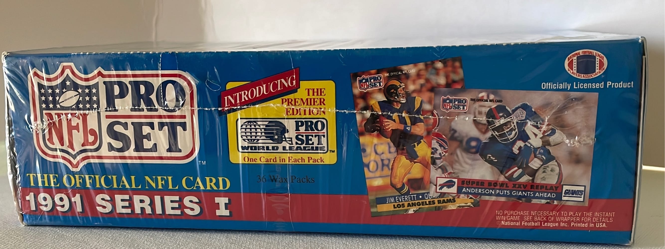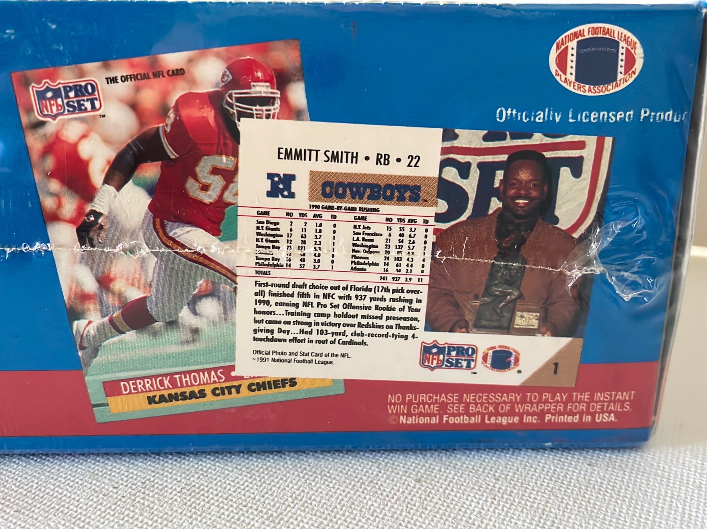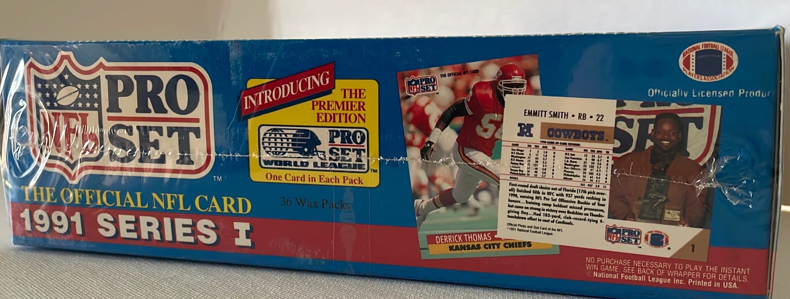 64 New in Box Factory Sealed 1991 Series I NFL Pro Set Including 14 Photo And Stat Cards, All NFC Team Art Cards, Pro Set Playbook And Much More - Introducing The Premier Edition Pro Ser World League (1 card/pack) - And - Players Include Emmitt Smith And Derrick Thomas
