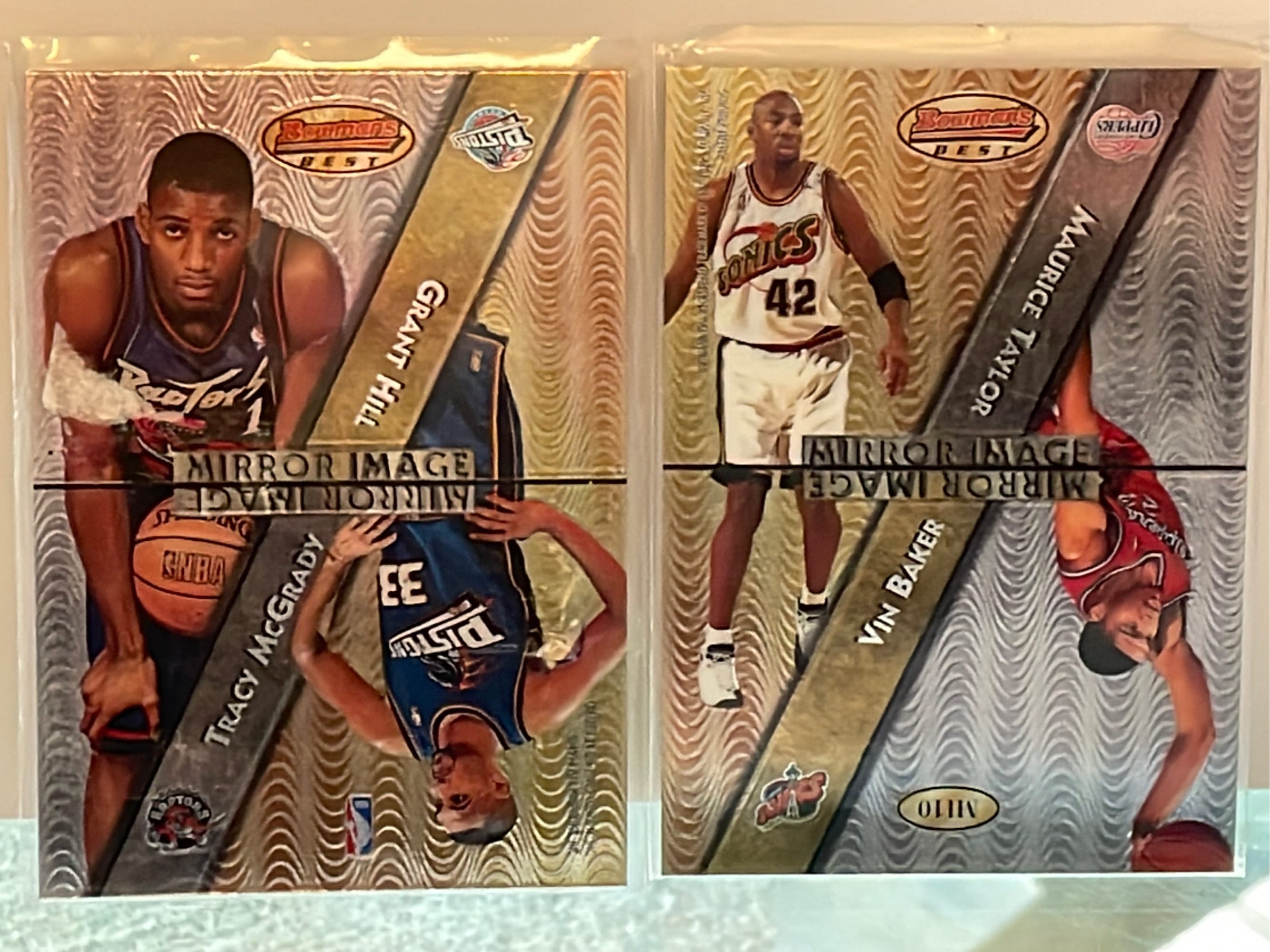 100 (2) 1998-99 Bowman’s Best Mirror Image Basketball Cards Featuring: Maurice Taylor/Vin Baker and Larry Johnson/Antoine Walker - Tracy McGrady/Grant Hill and Shareef Abdur-Rahim/Kevin Garnett